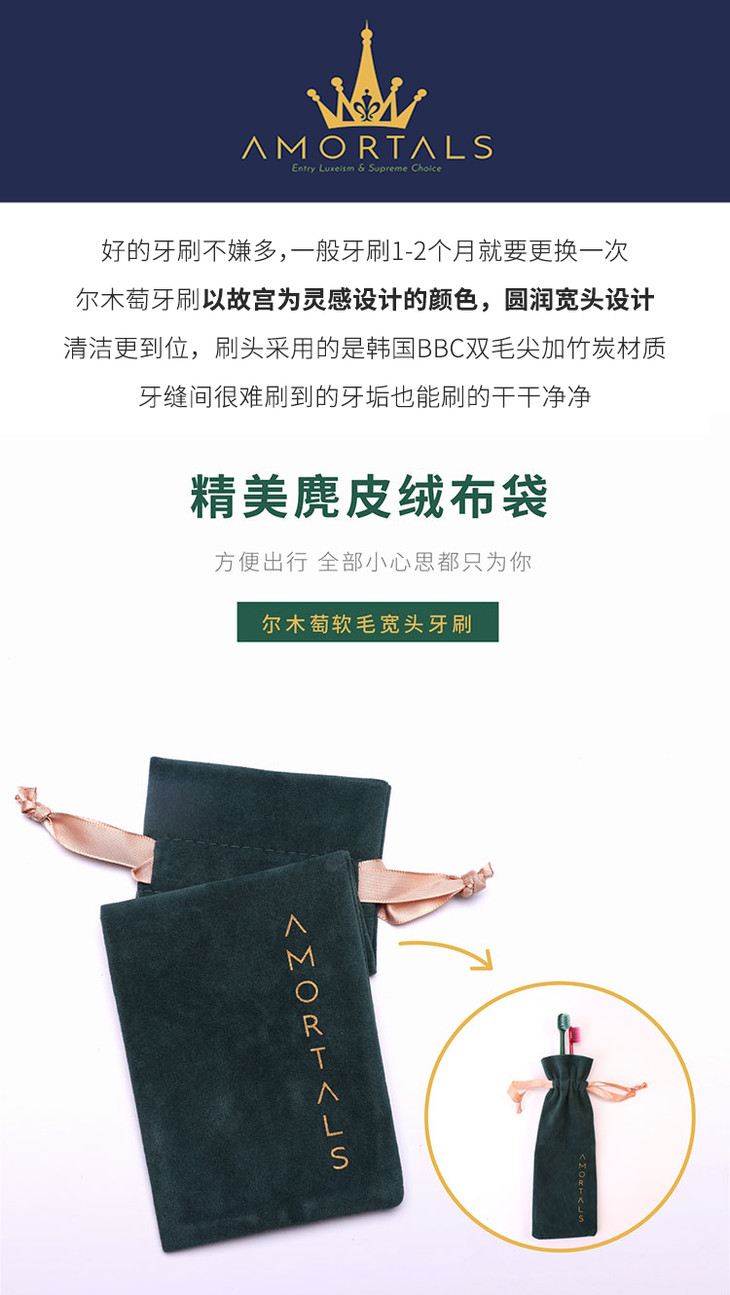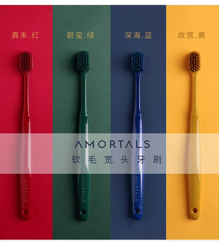 【买2包邮】韩国AMORTALS尔木萄情侣牙刷软毛细宽头成人家用牙缝刷竹炭两只装