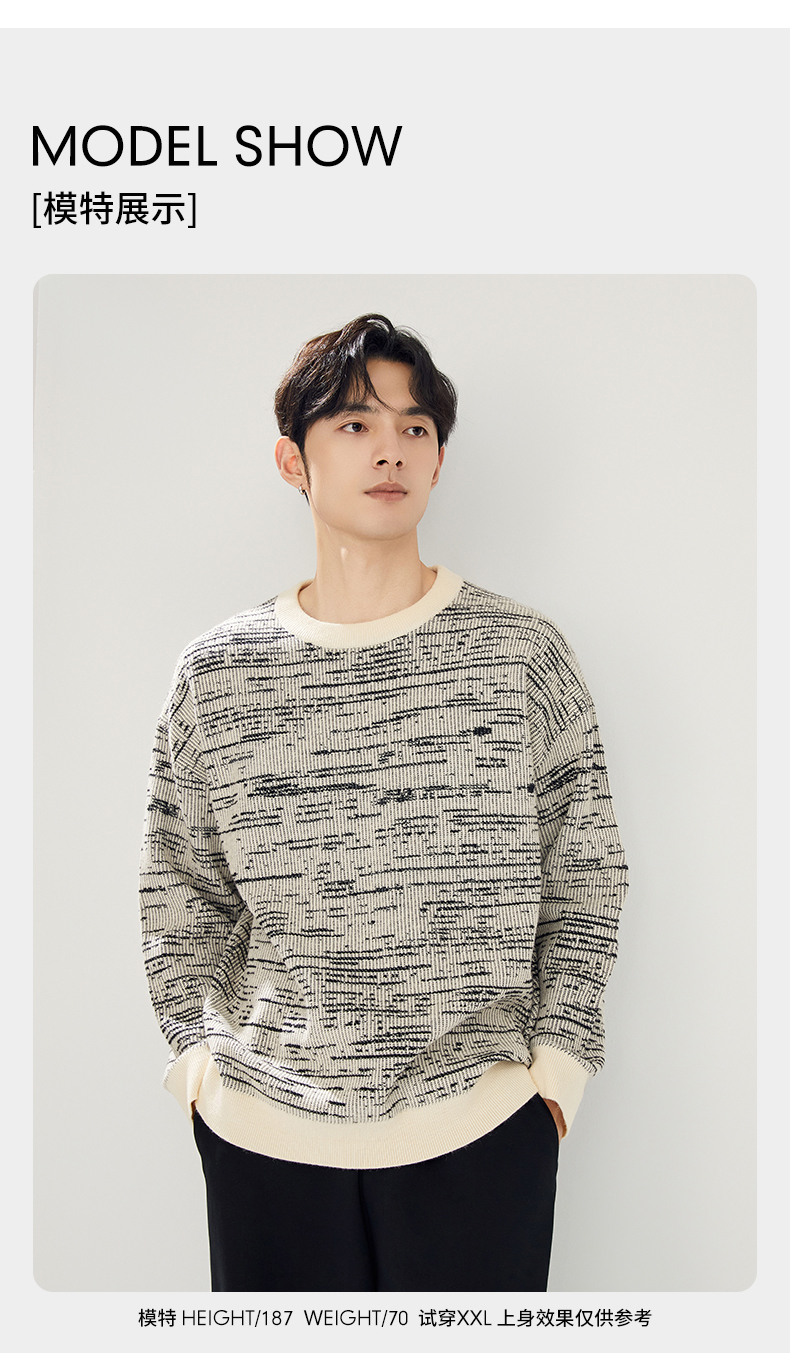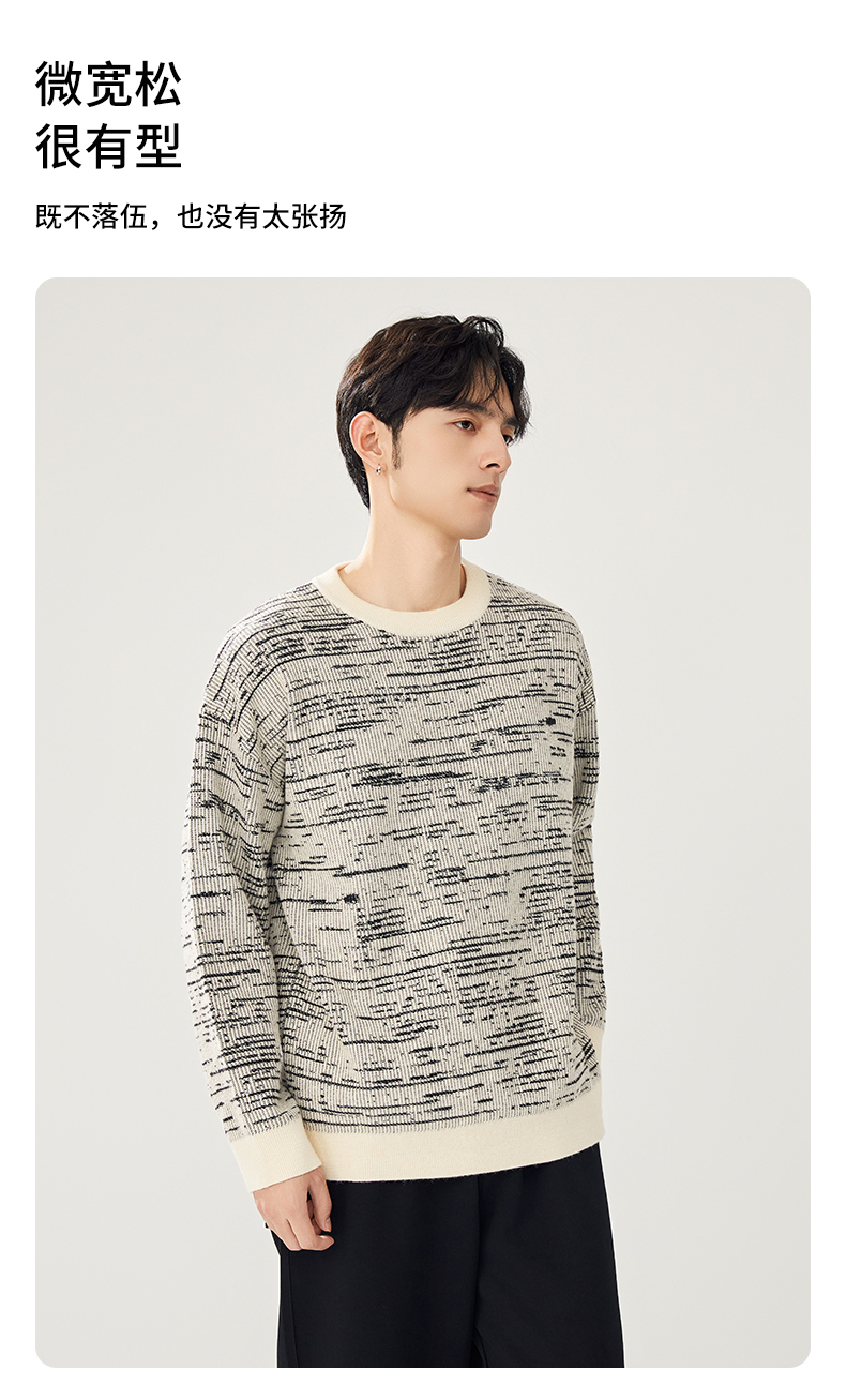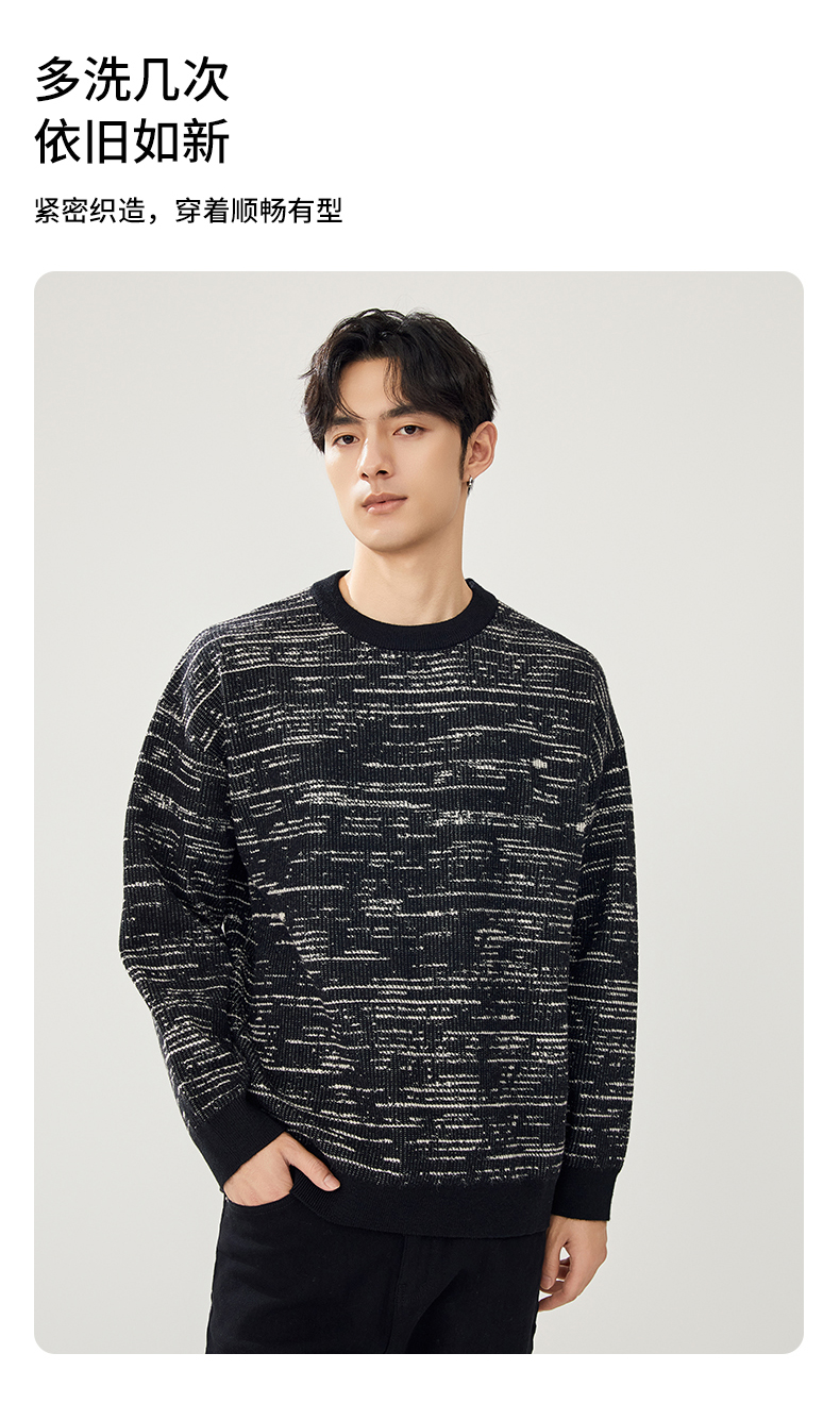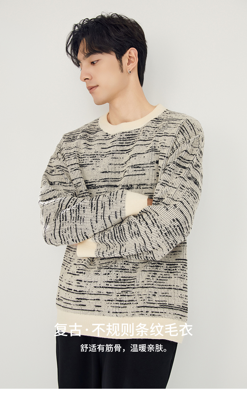 贝纳川圆领撞色提花毛衣ECT316003