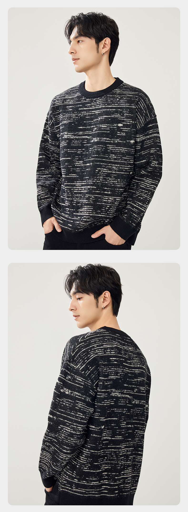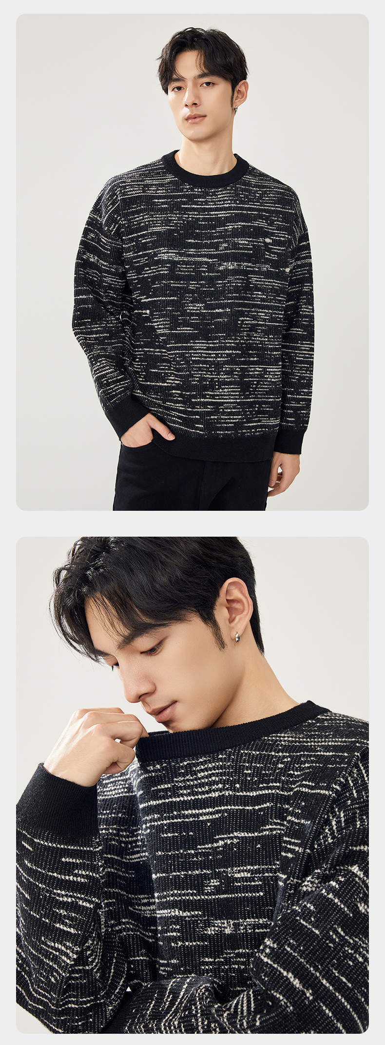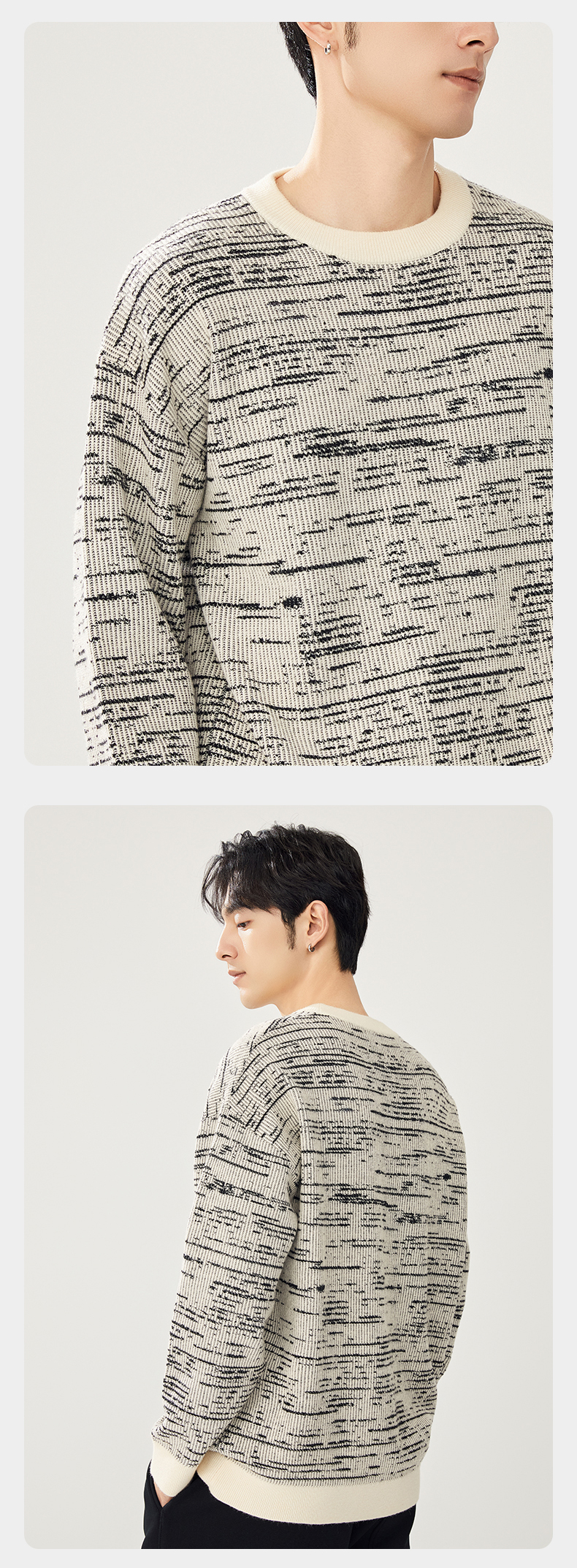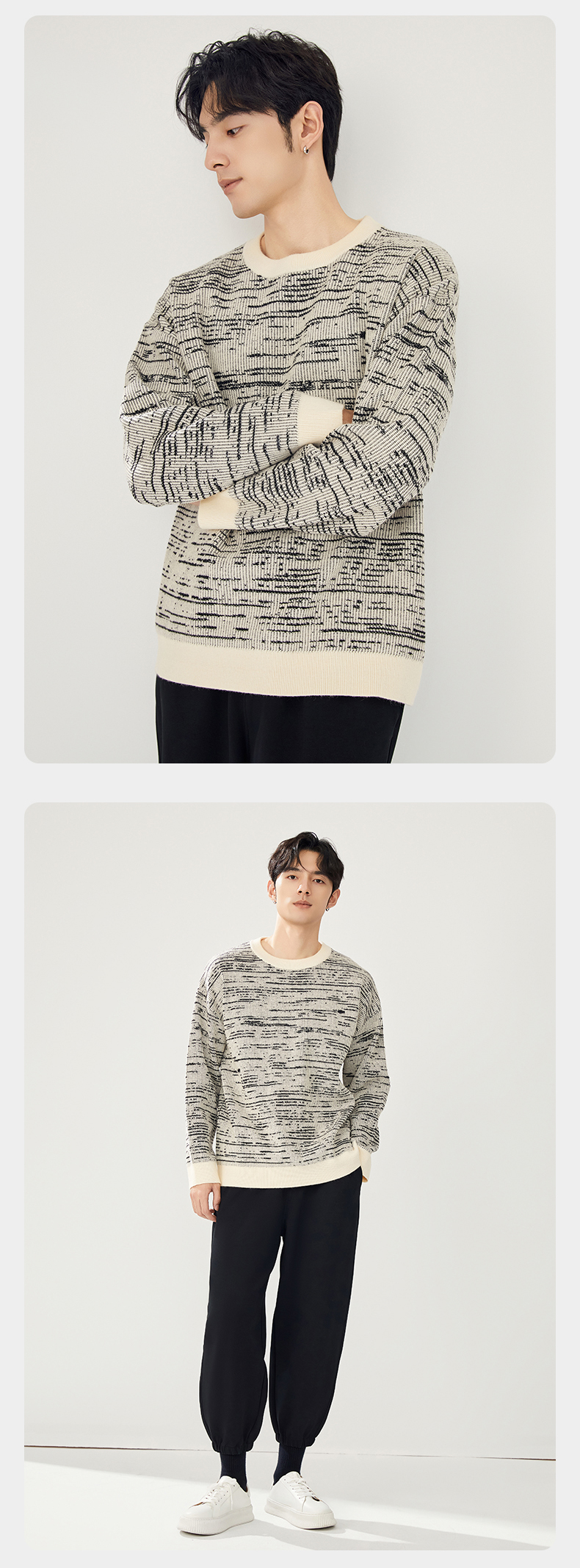 贝纳川圆领撞色提花毛衣ECT316003