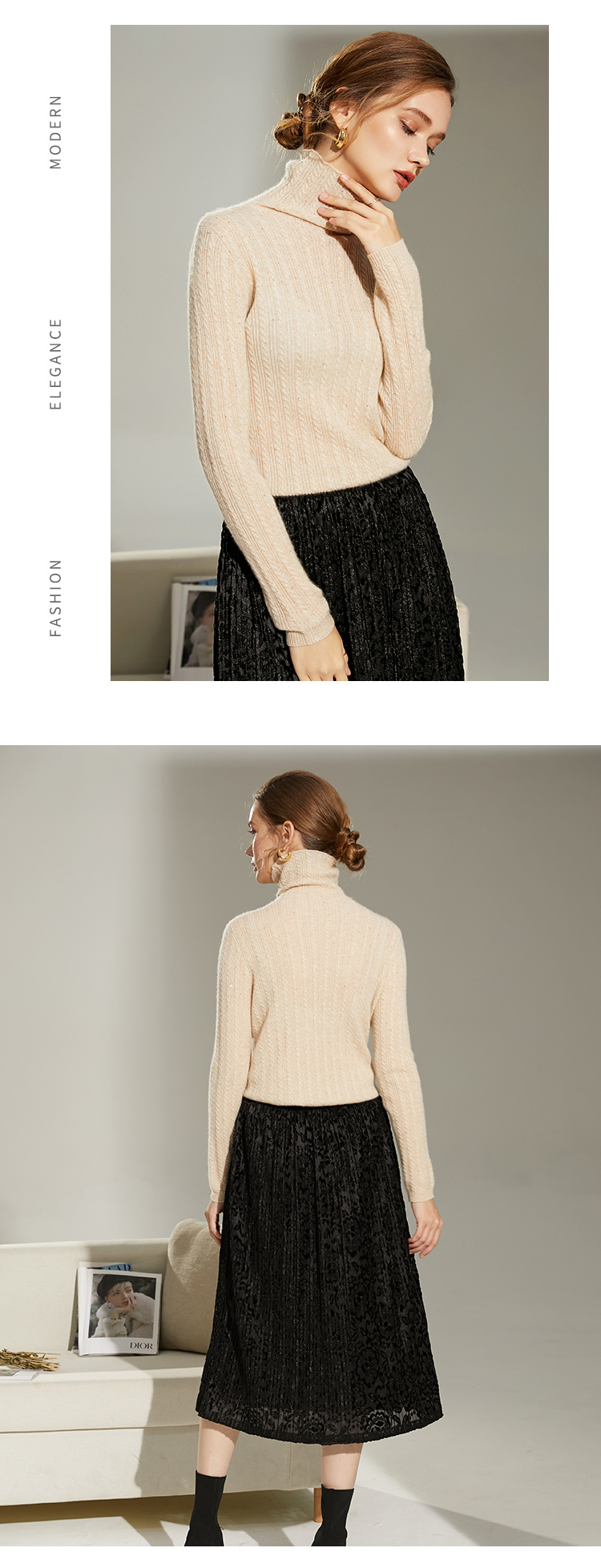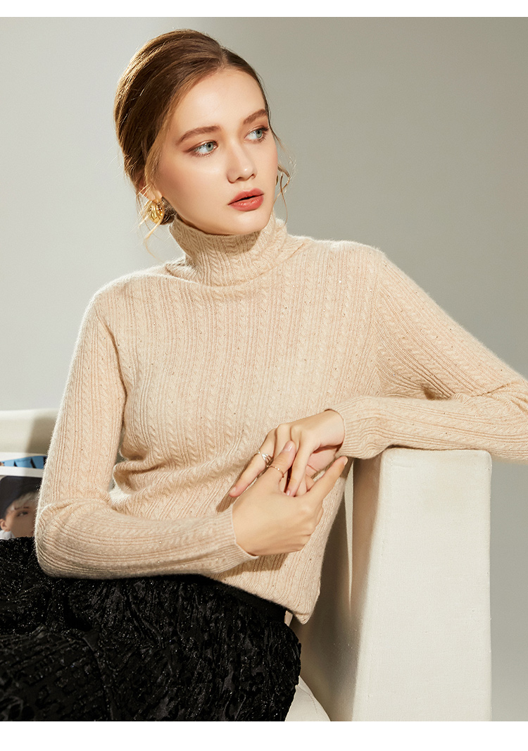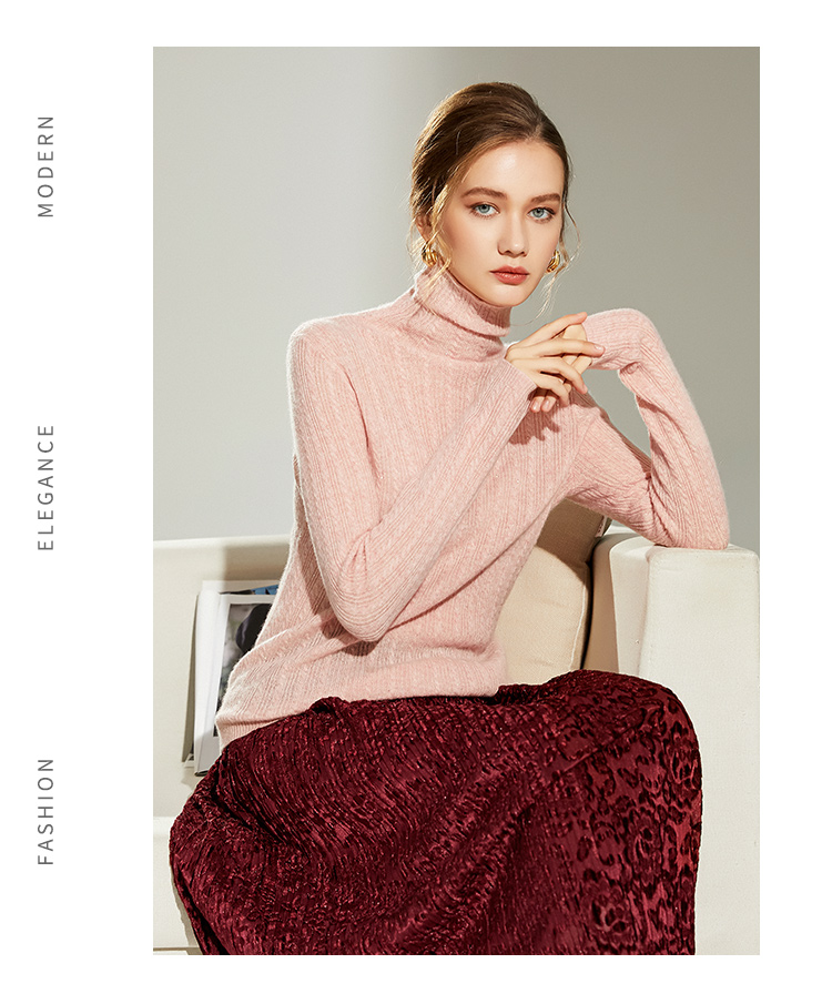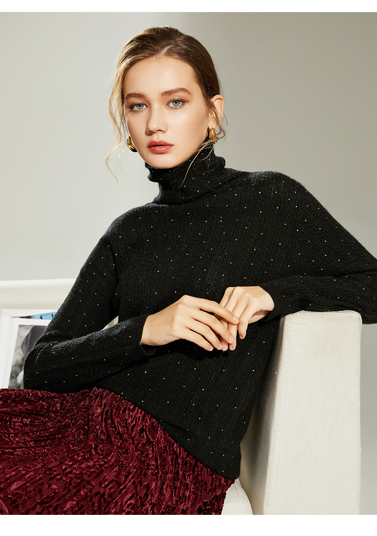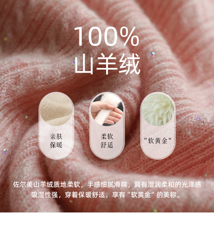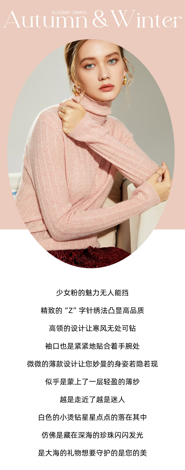 佐尔美2021冬季新款 100%山羊绒高领Z字针绣法羊绒衫女E14MS08