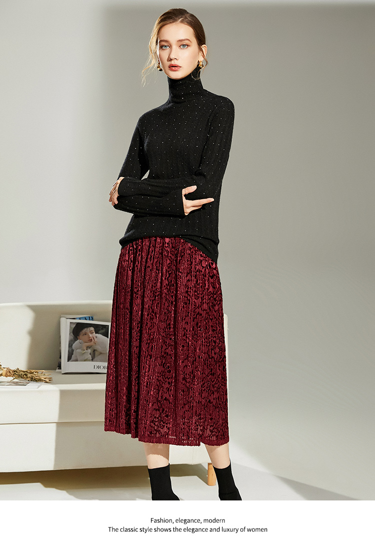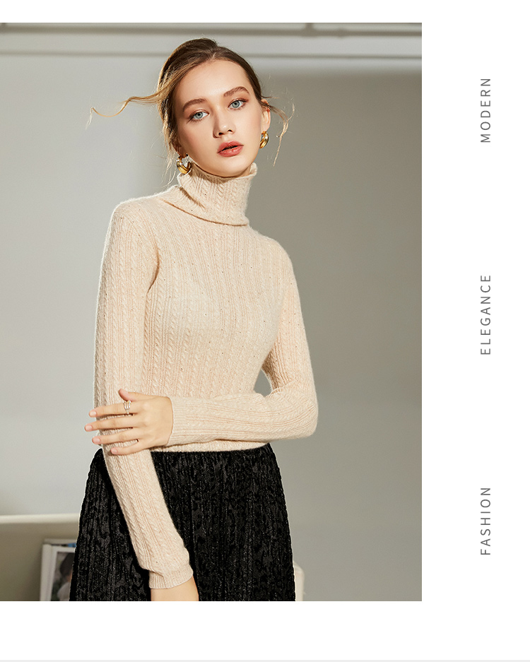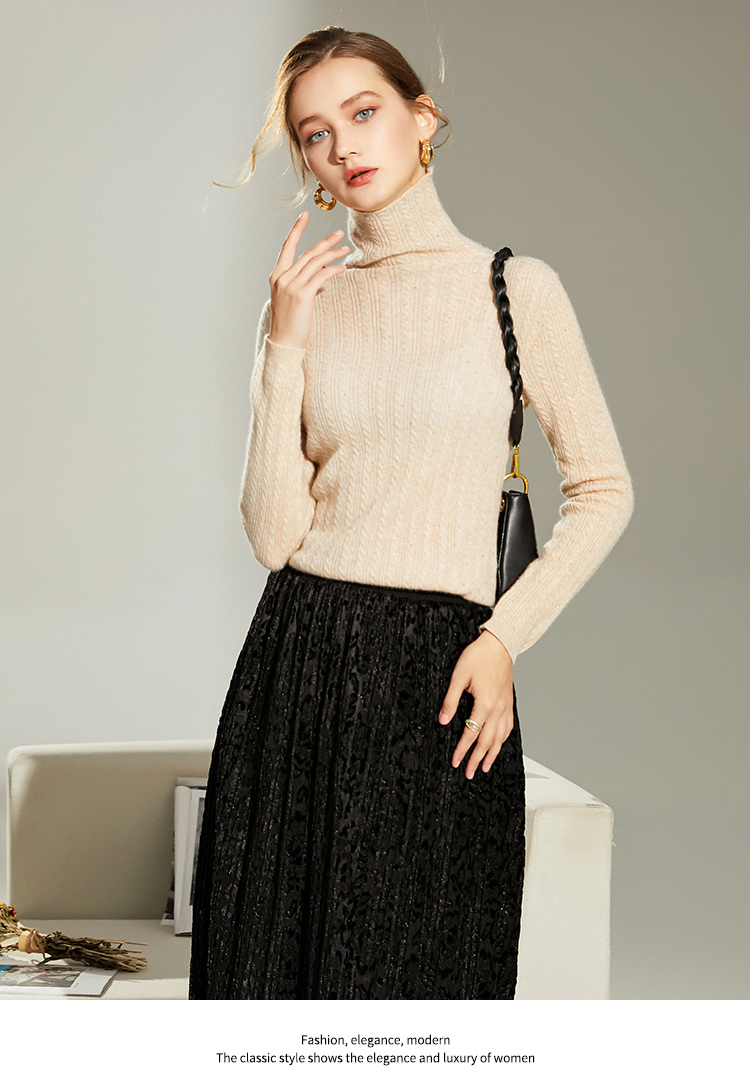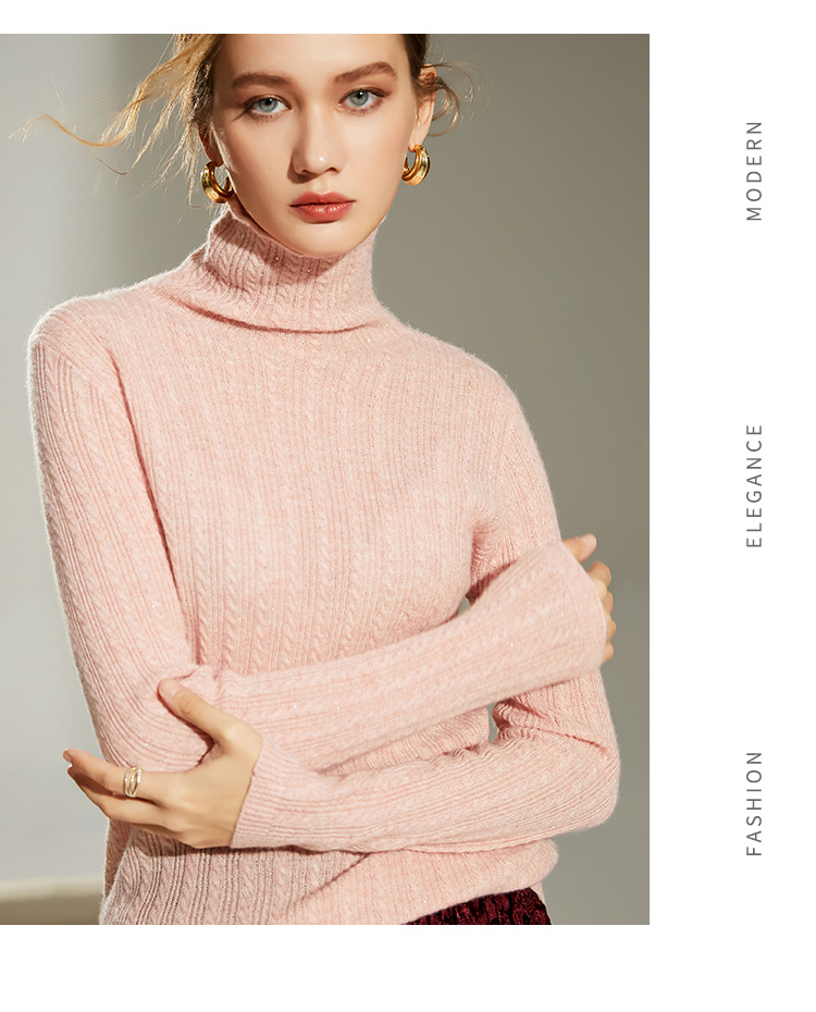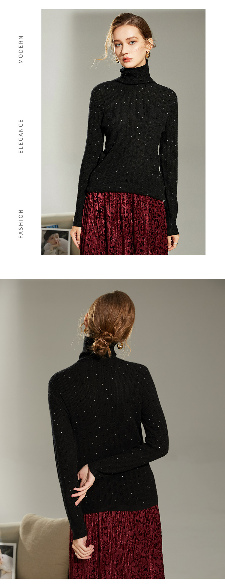 佐尔美2021冬季新款 100%山羊绒高领Z字针绣法羊绒衫女E14MS08