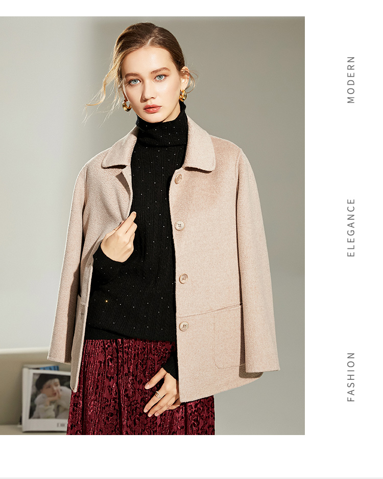 佐尔美冬季女装纯色百搭针织羊毛呢子大衣外套双面呢E64SR03