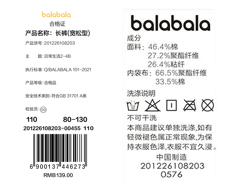 【商场同款】巴拉巴拉童装儿童长裤男女童2026新款夏季灯笼束口裤