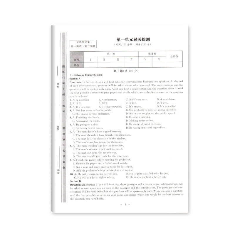 钟书金牌 金典导学案 英语 高一第二学期/高1下 同步导学案+课后作业+单元测评 适合参加新高考的学生使用