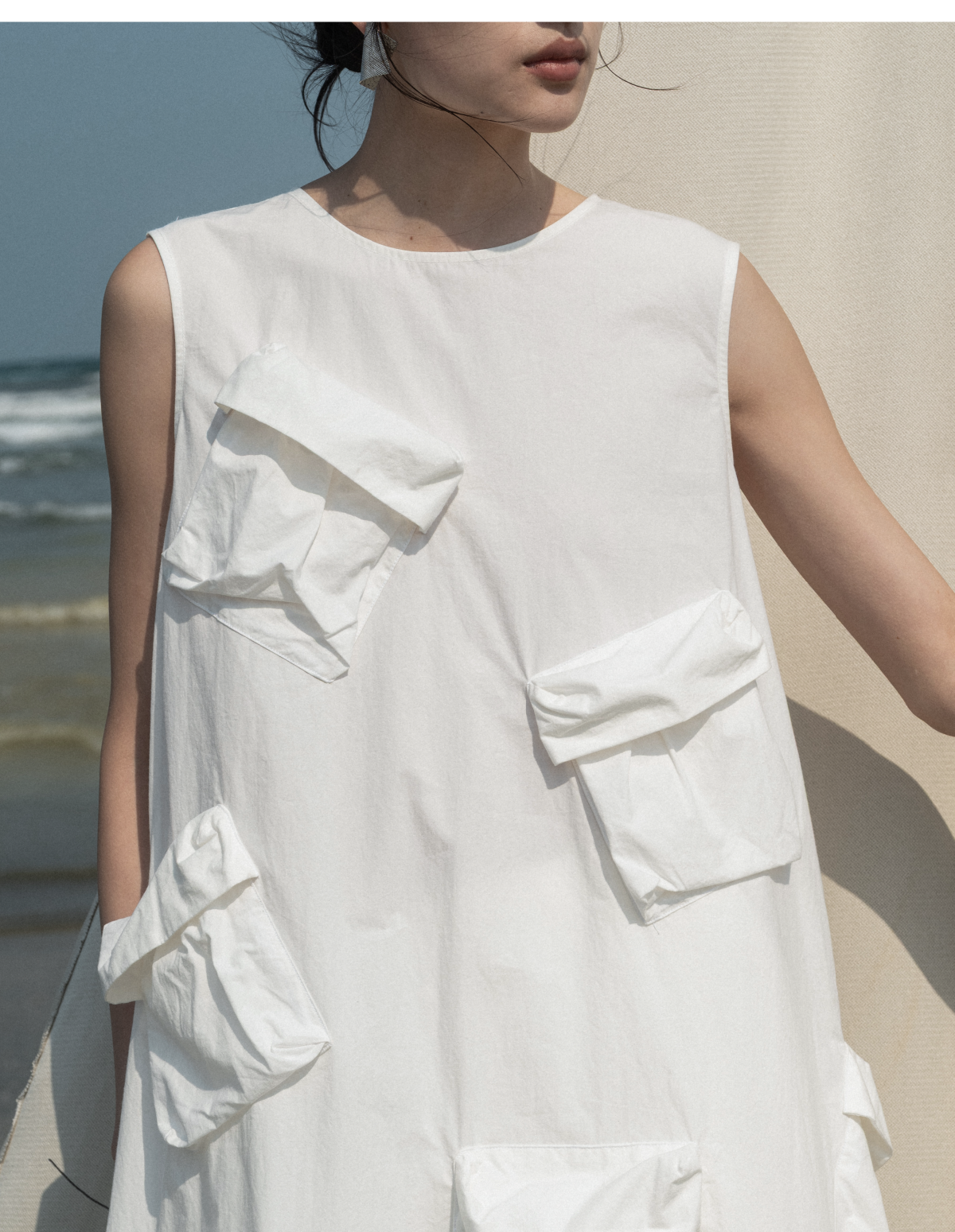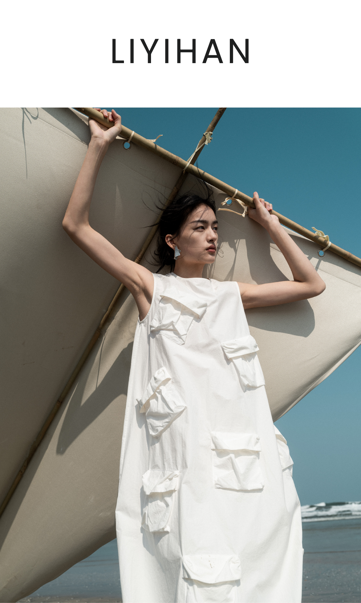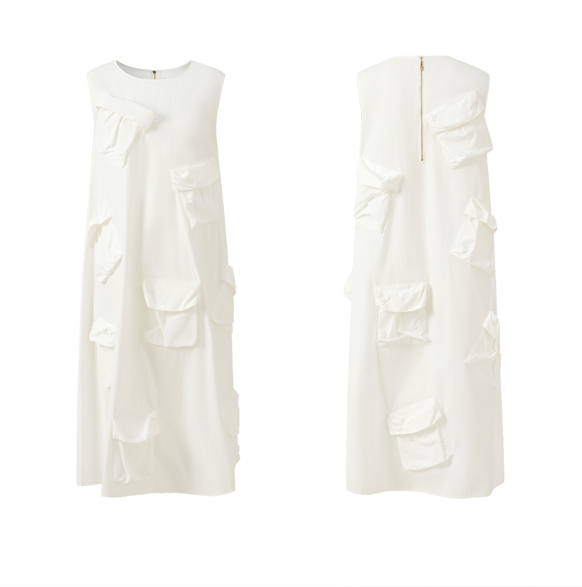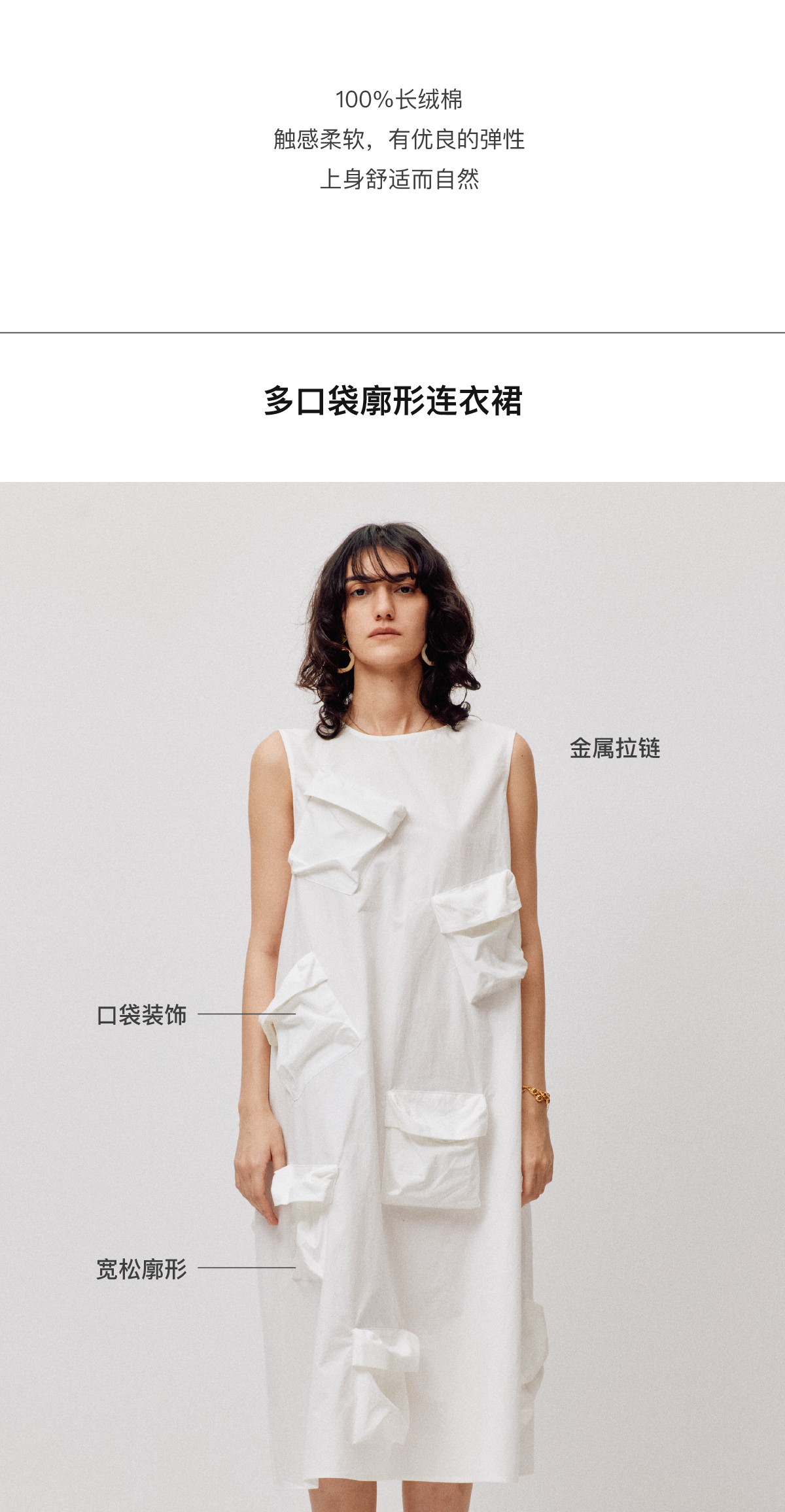 LIYIHAN清月鹊 高密长绒棉设计感多口袋廓形连衣裙立体层次感