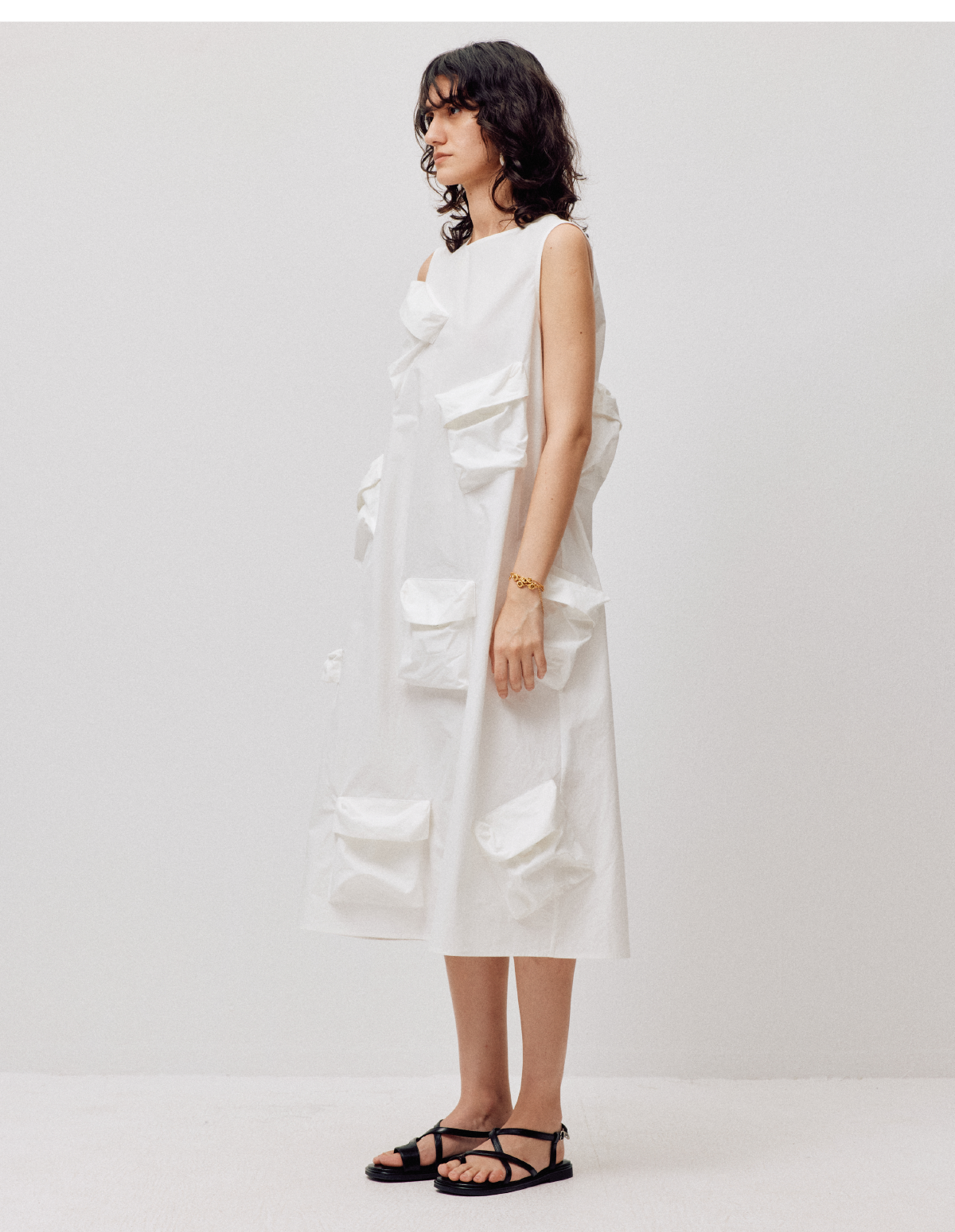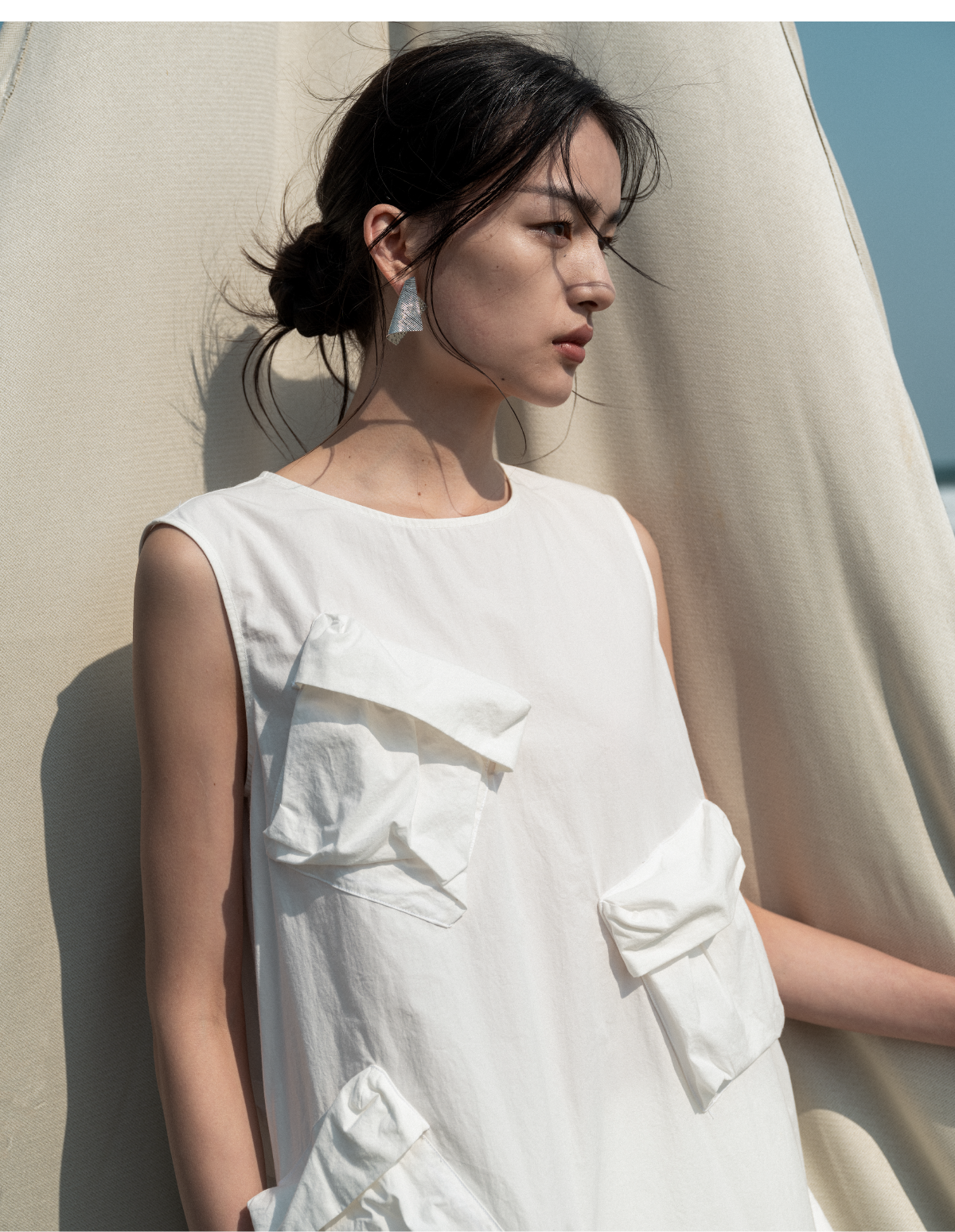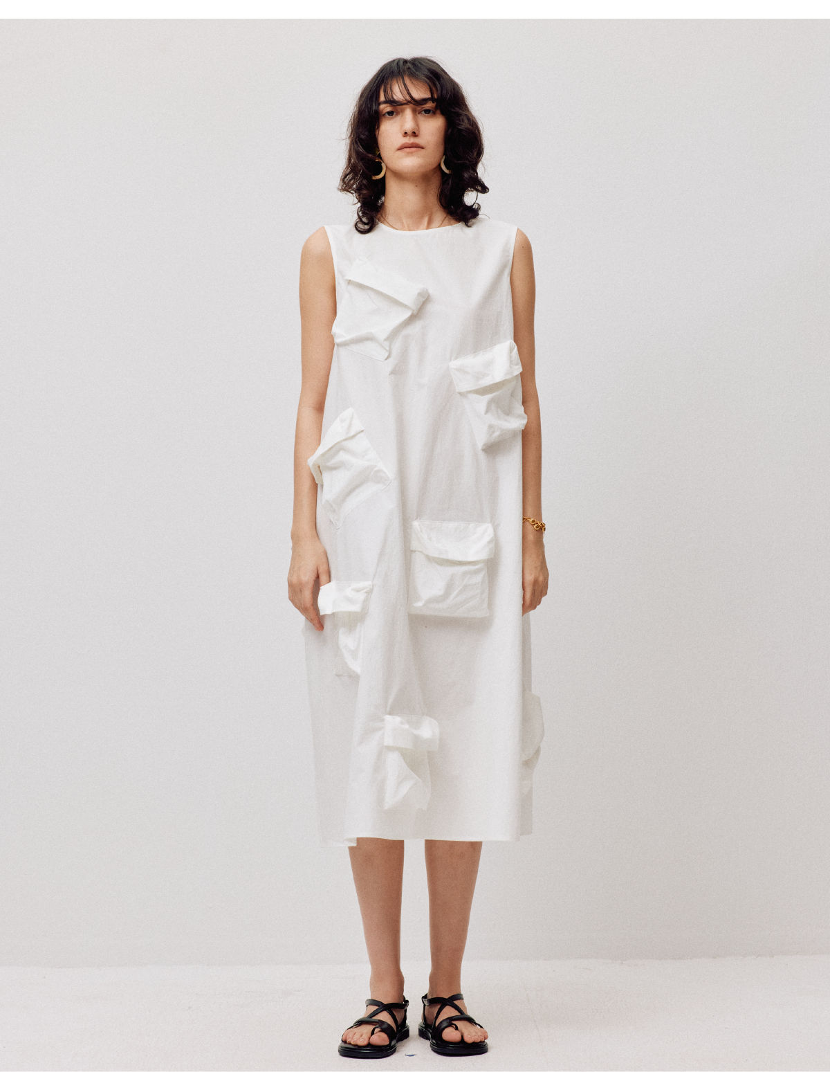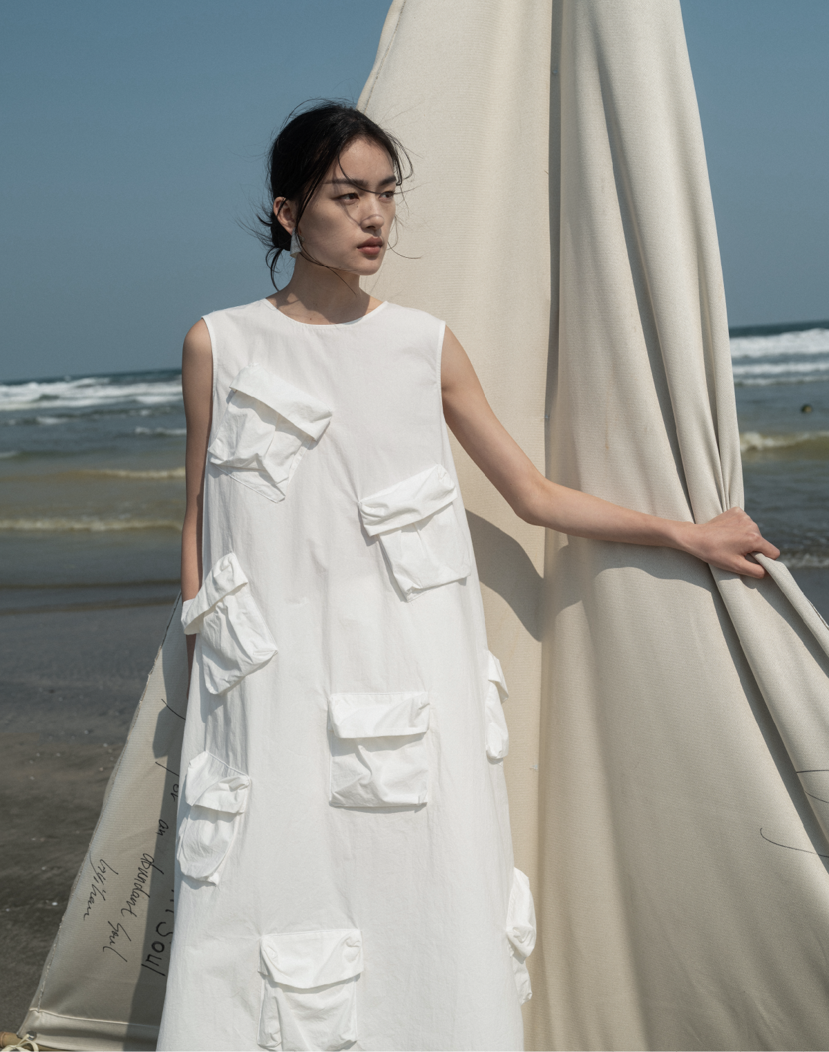 LIYIHAN清月鹊 高密长绒棉设计感多口袋廓形连衣裙立体层次感