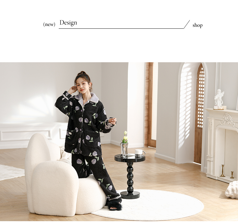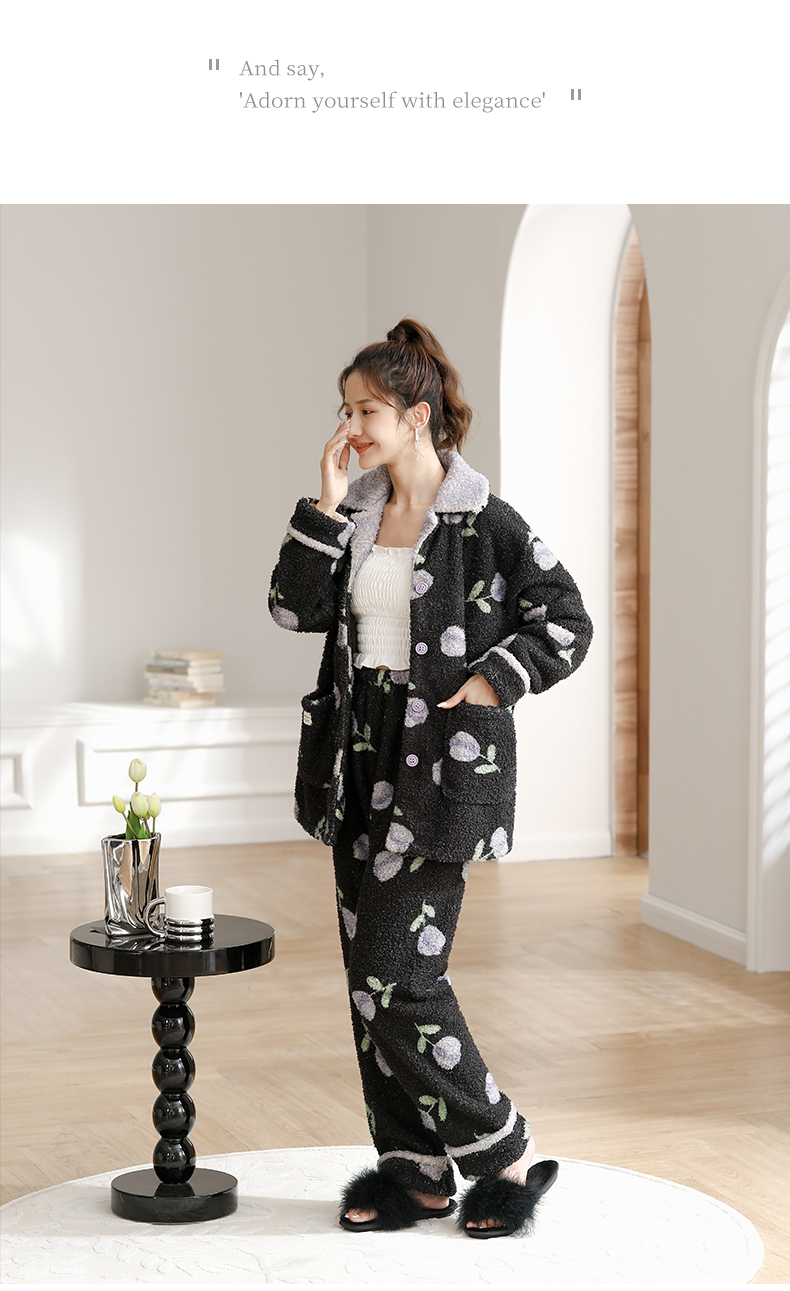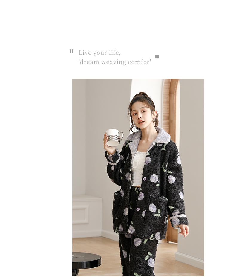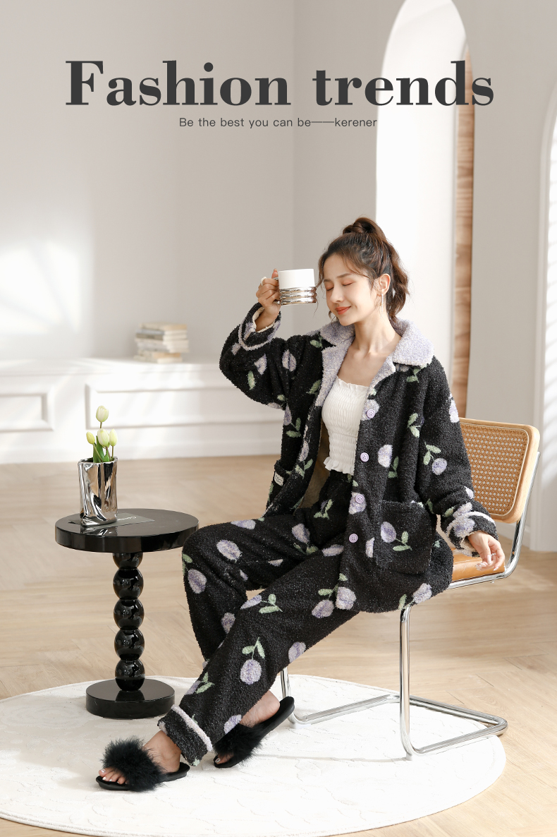 可人儿原创冬季舒棉绒女士睡衣韩系加厚保暖可外穿珊瑚绒家居服