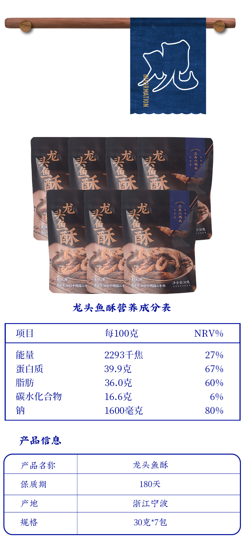 【三关六码头】香酥龙头鱼酥30g*7包 老宁波特产豆腐鱼干即食海味零食网红小吃 顺丰发货