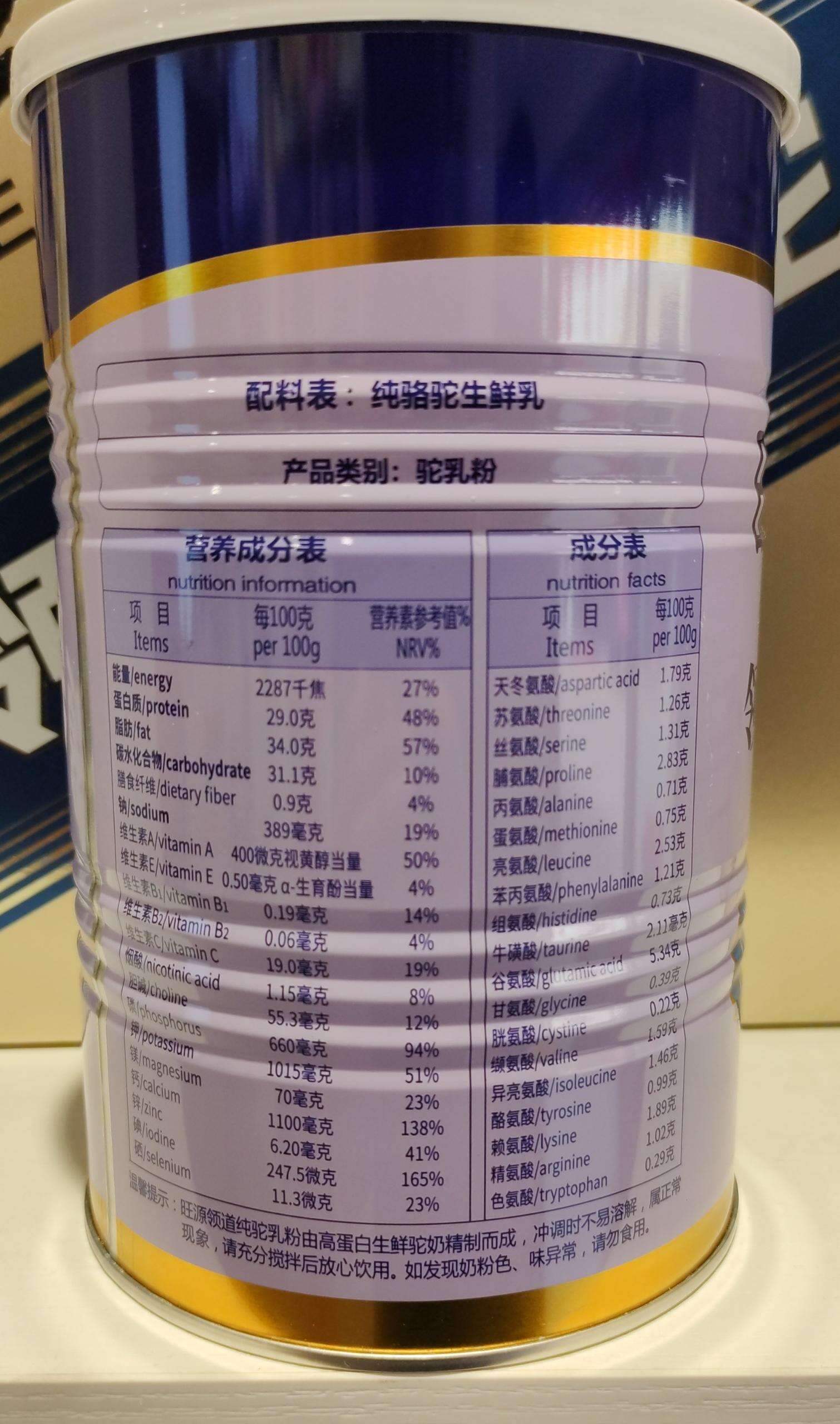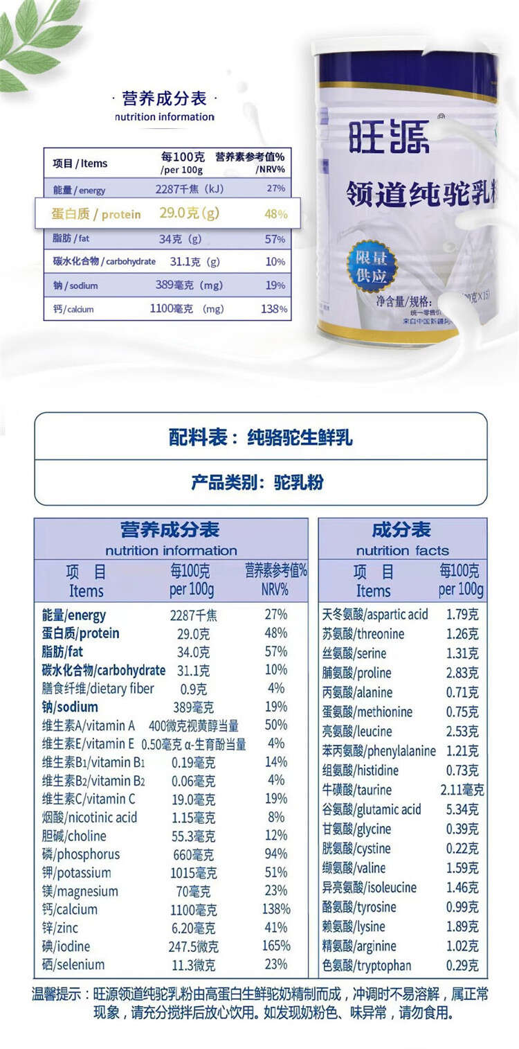 【产品名称】旺源领道纯驼乳粉