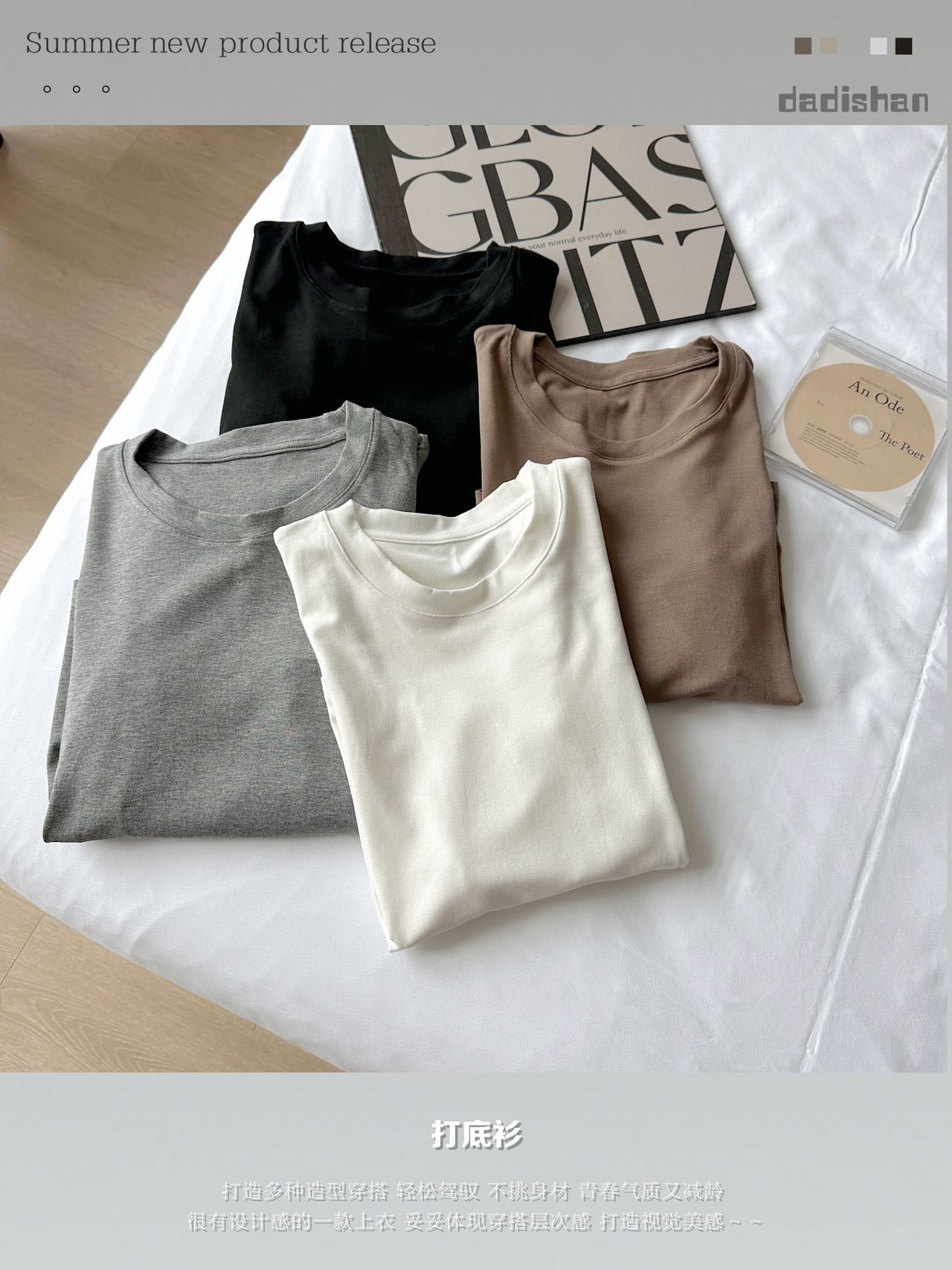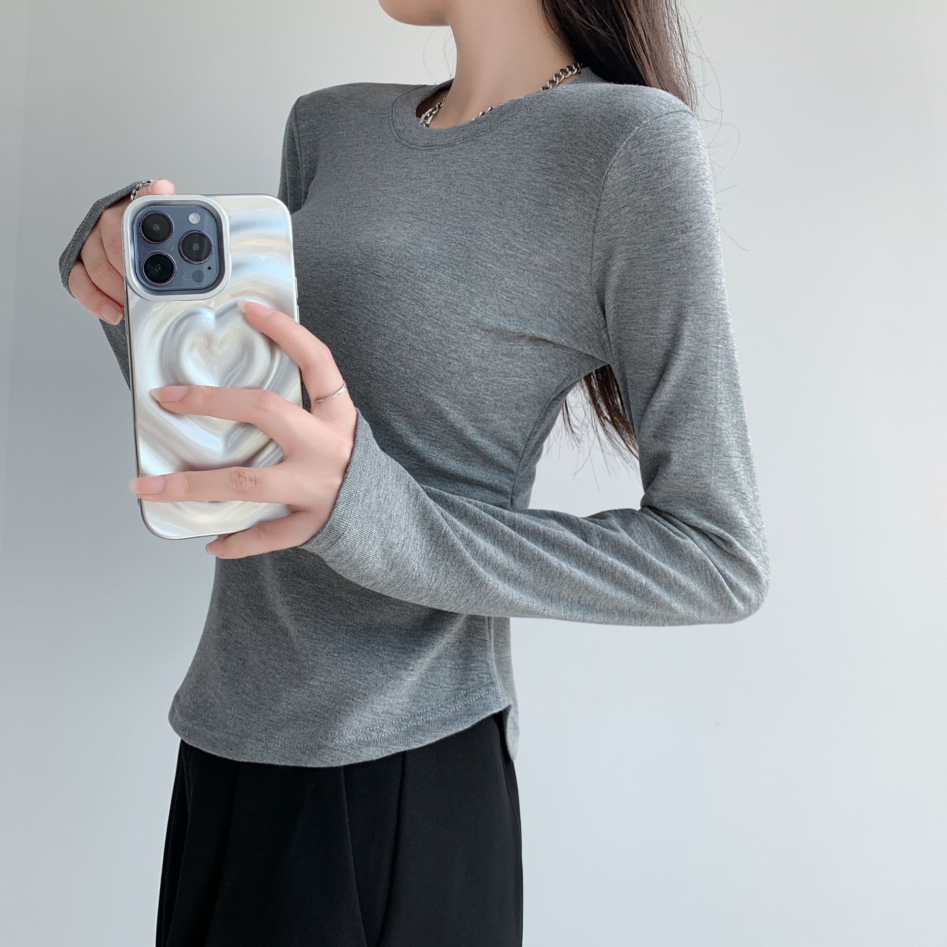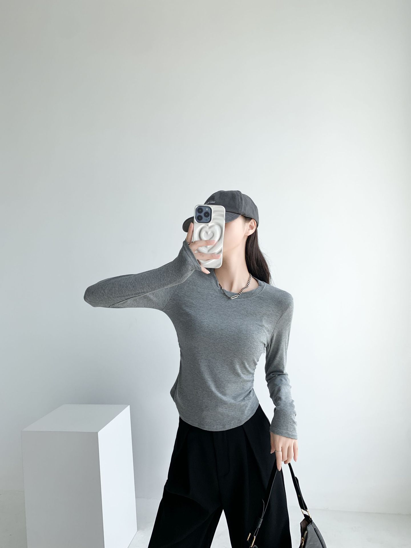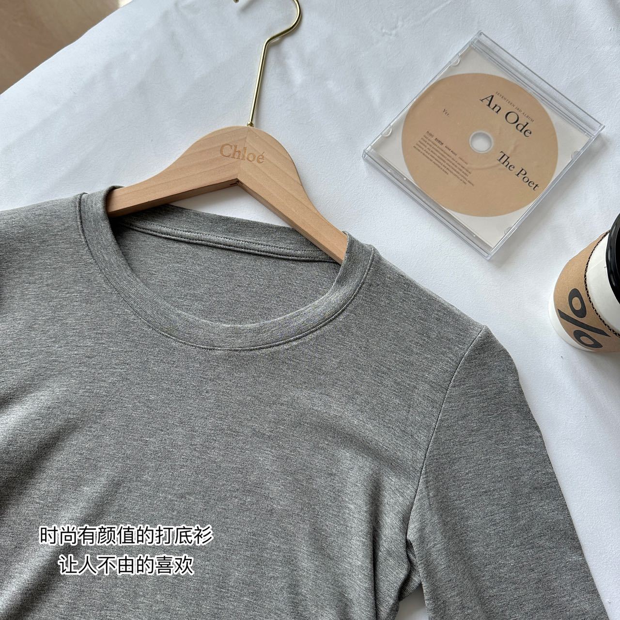 圆领纯欲风松紧收腰 纯色正肩T恤女 设计感辣妹t修身小蛮腰上衣打底衫