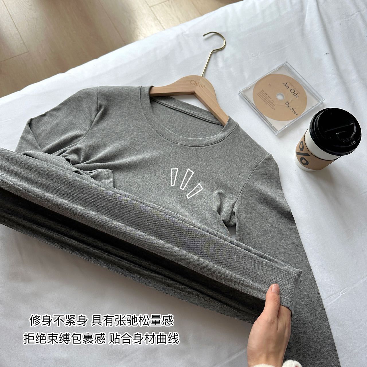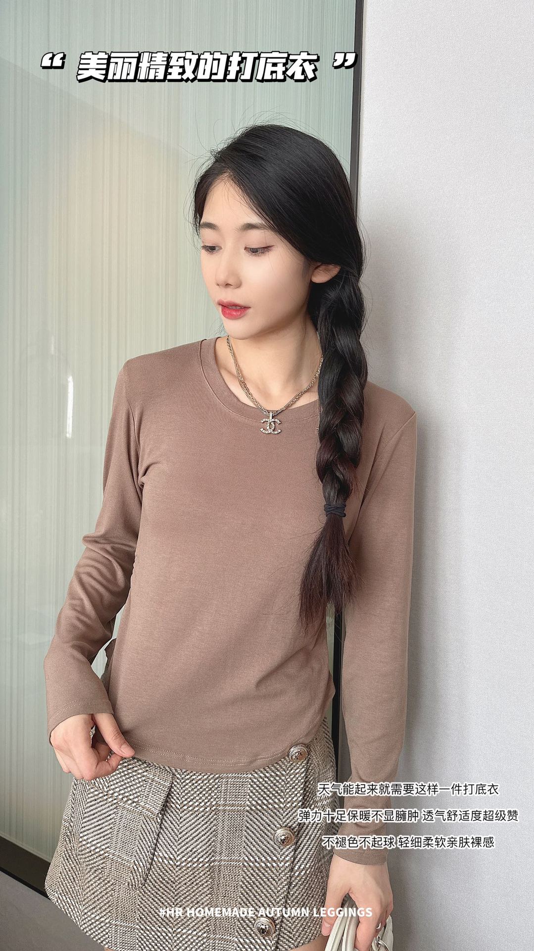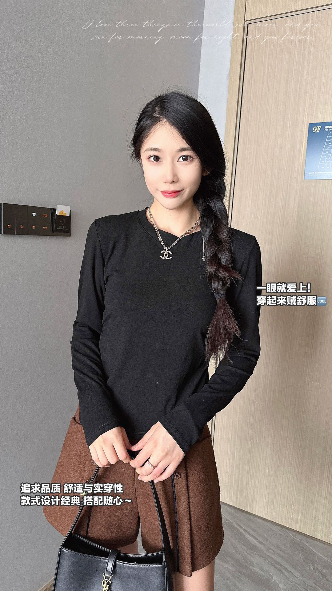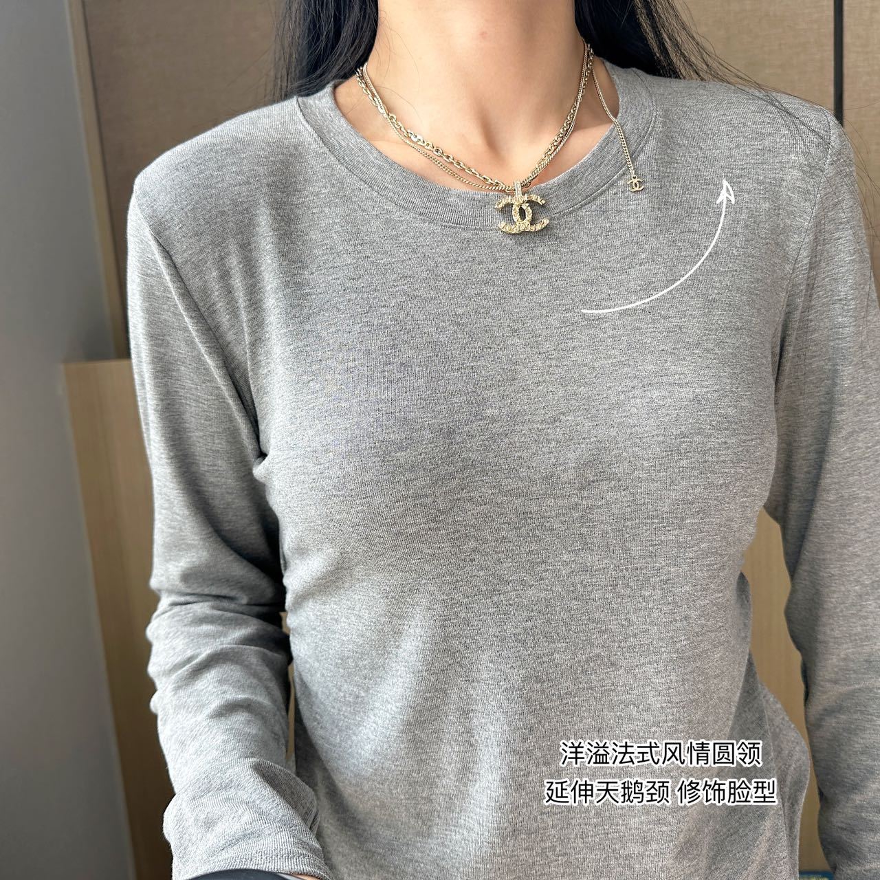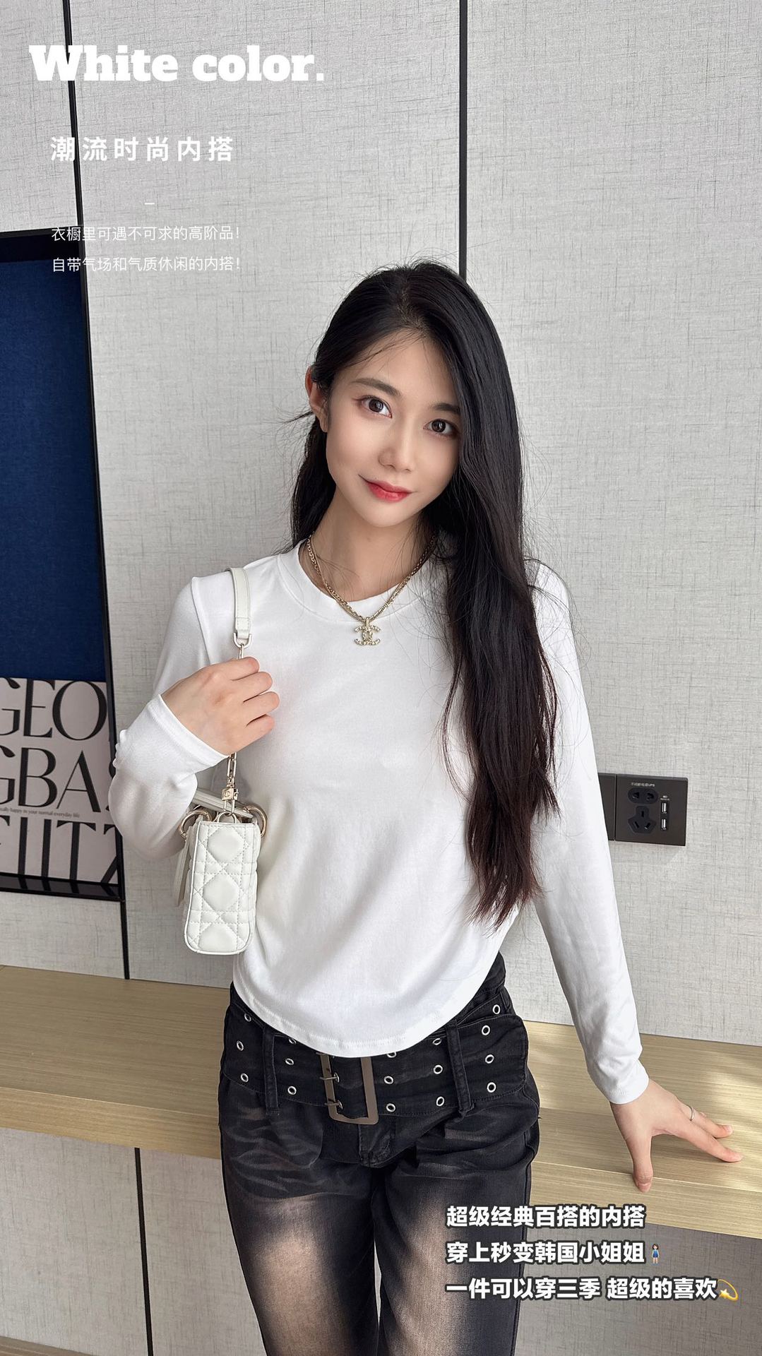 圆领纯欲风松紧收腰 纯色正肩T恤女 设计感辣妹t修身小蛮腰上衣打底衫