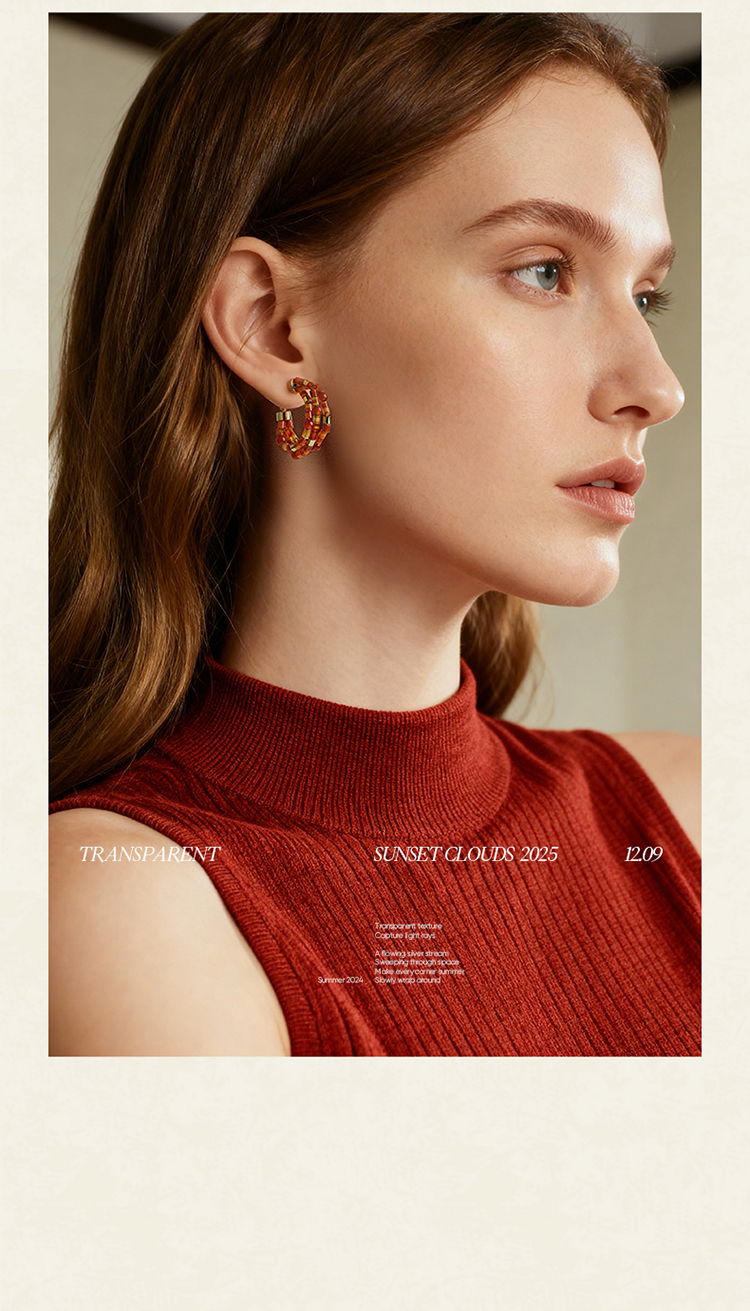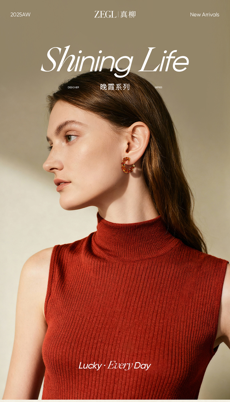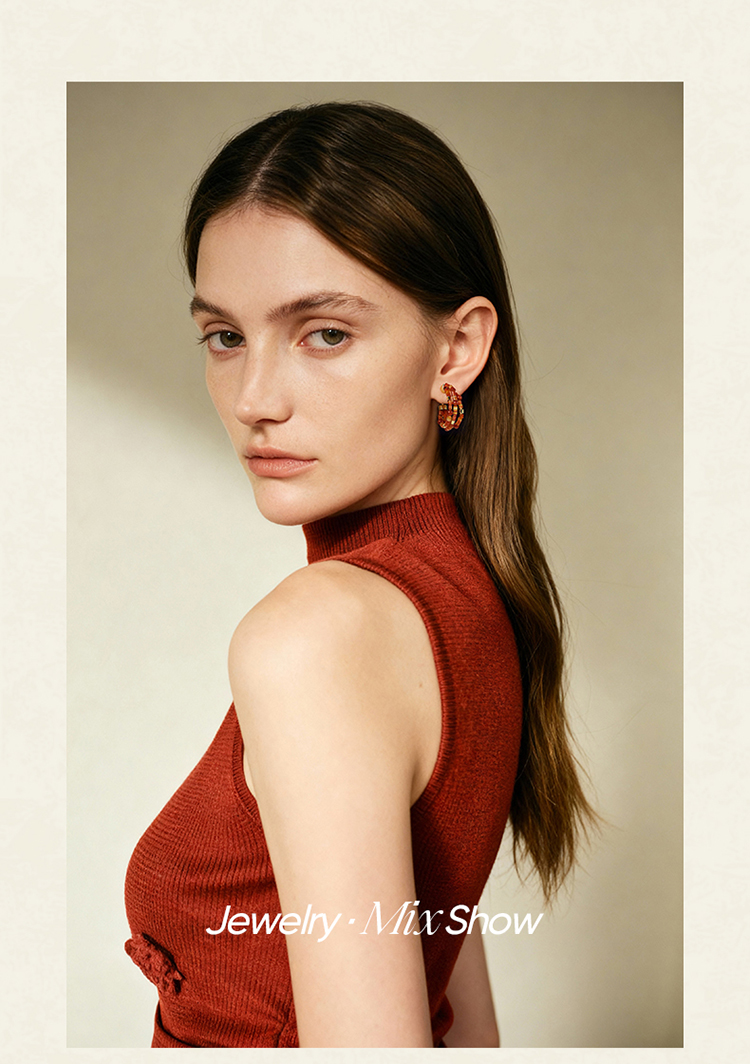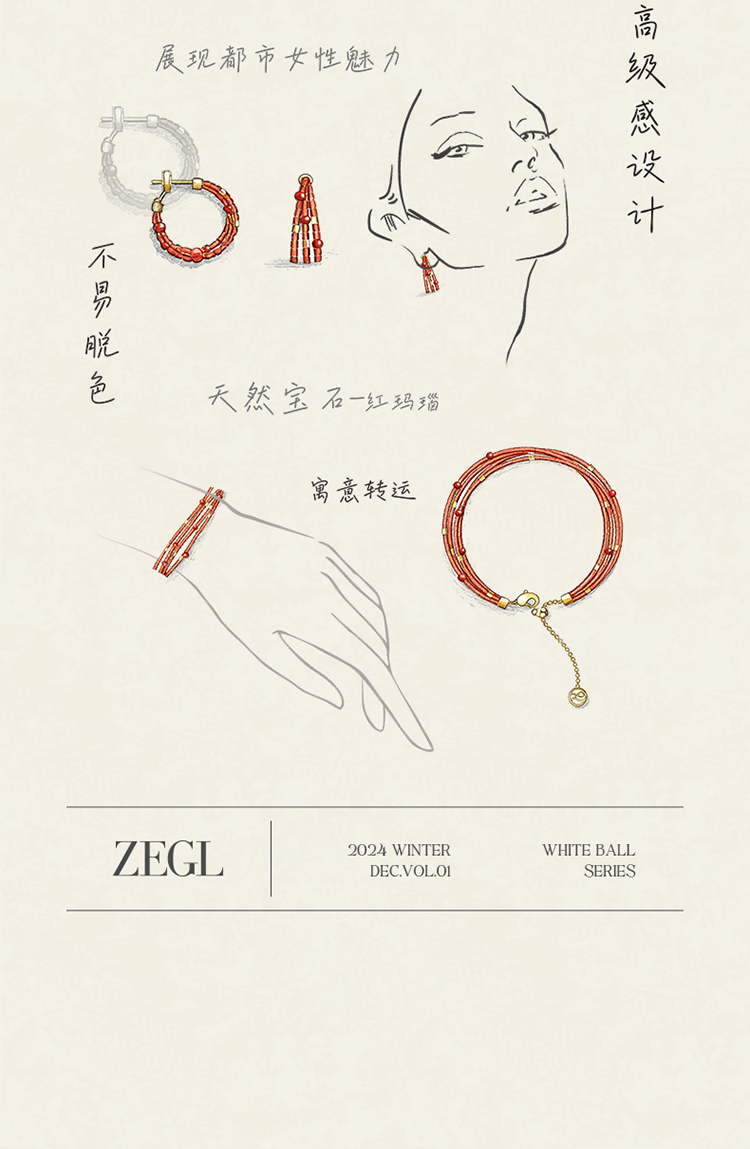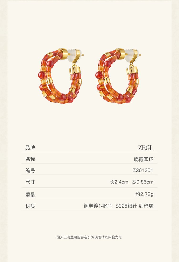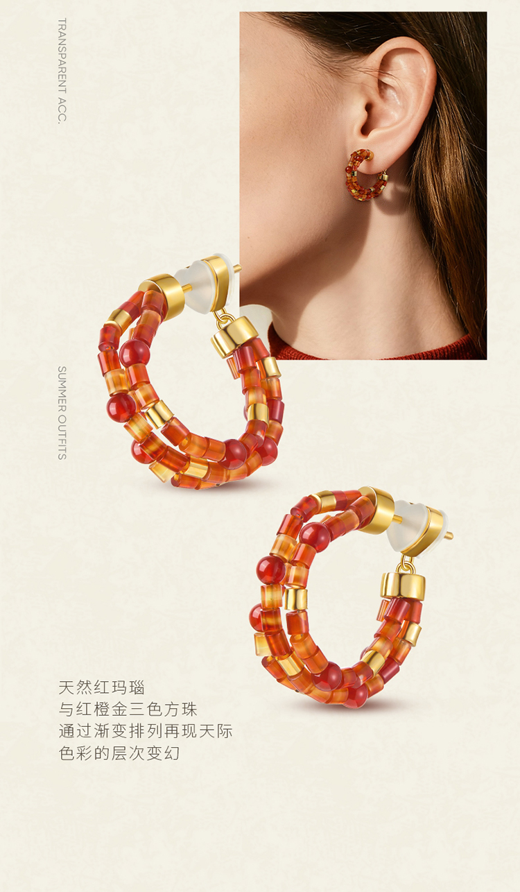 ZEGL设计师晚霞系列红玛瑙圈圈耳环新款女气质耳钉复古秋冬耳饰