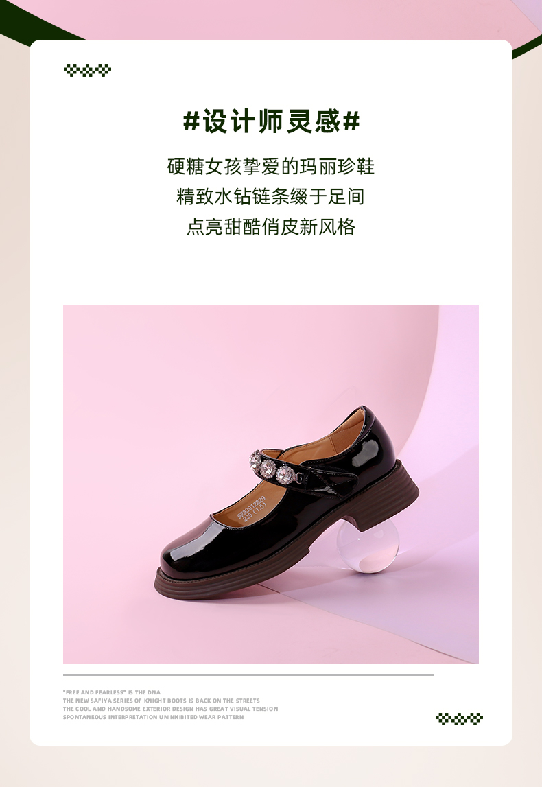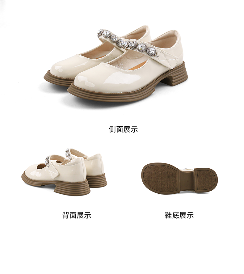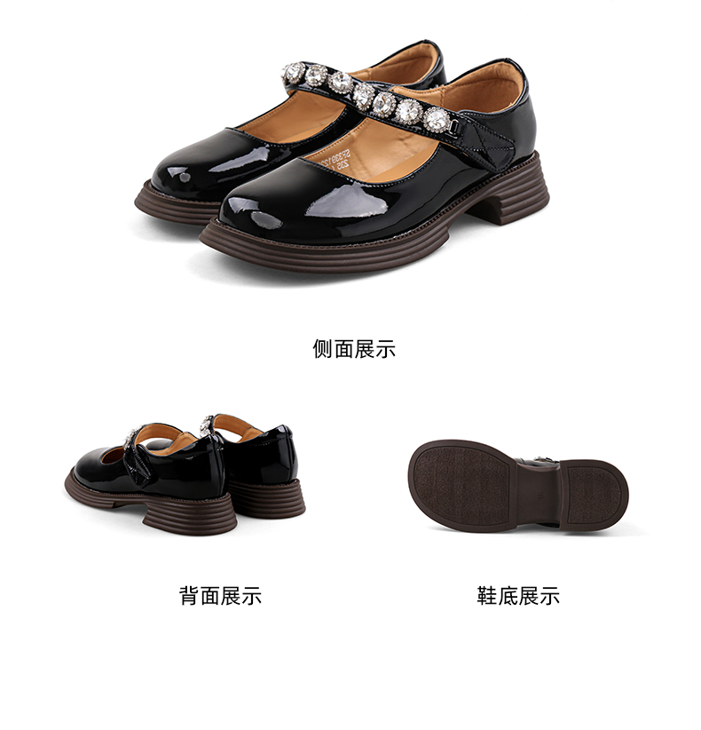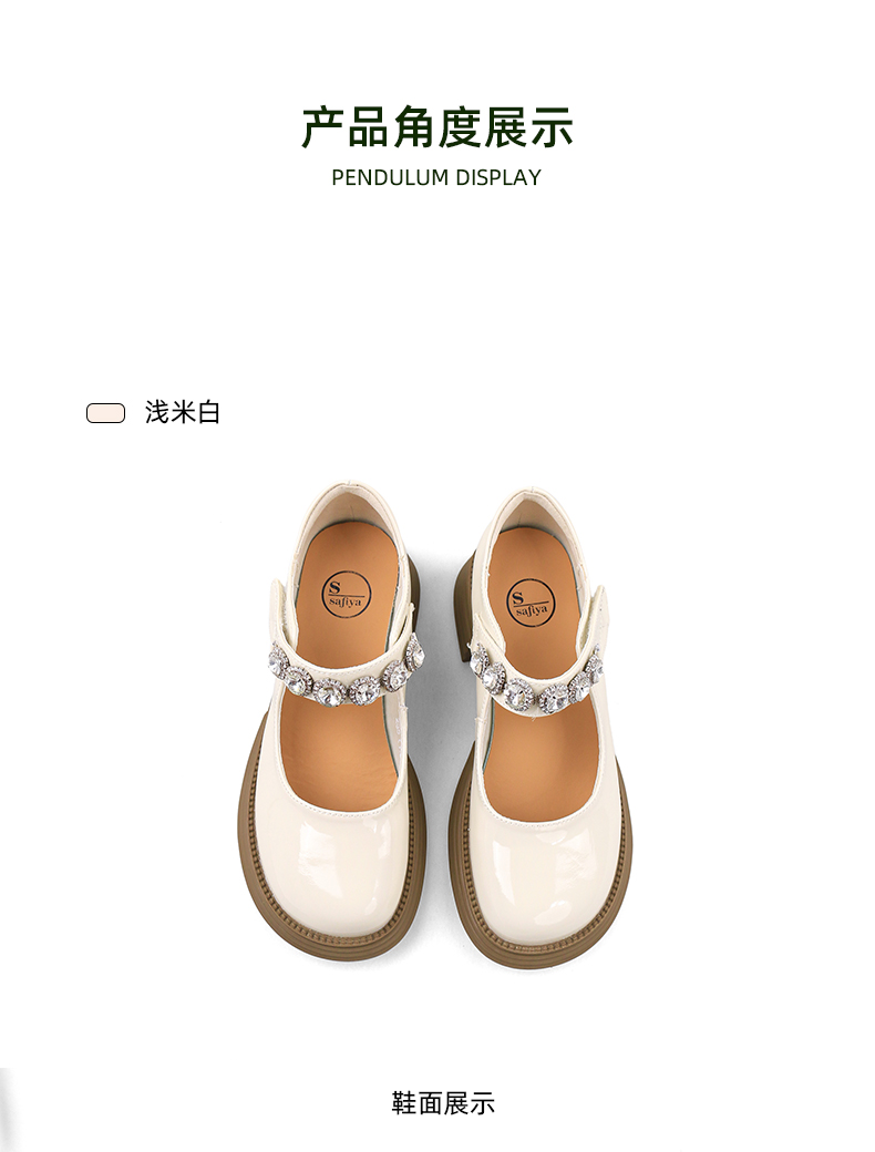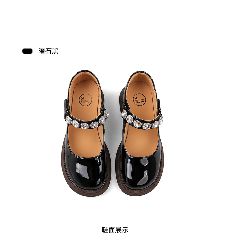 超值精选 | Safiya/索菲娅 2023秋季甜酷粗跟钻链亮面一字带玛丽珍小皮鞋 SF33912229