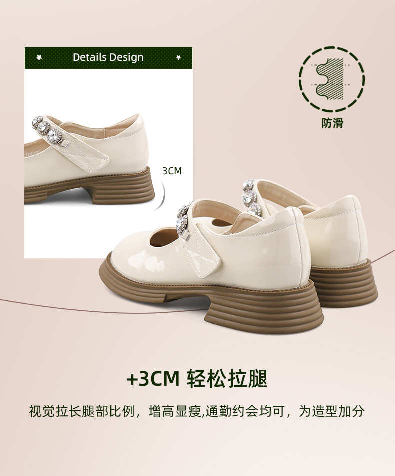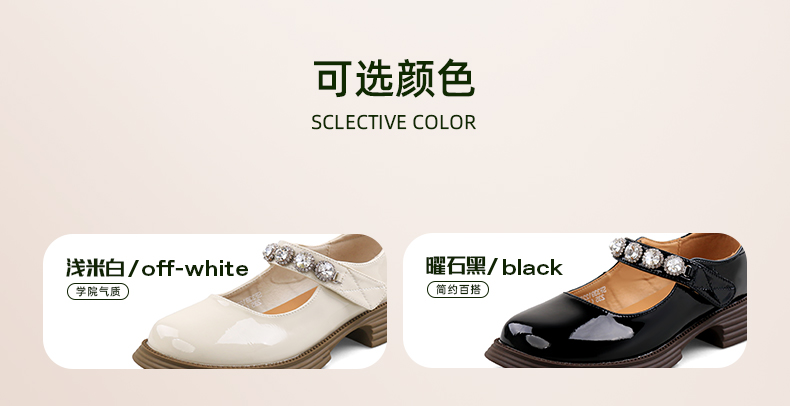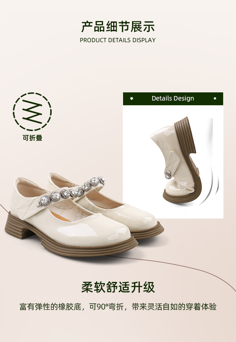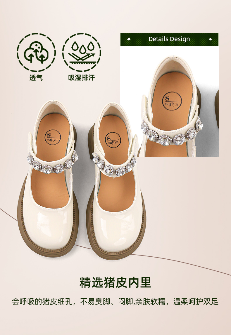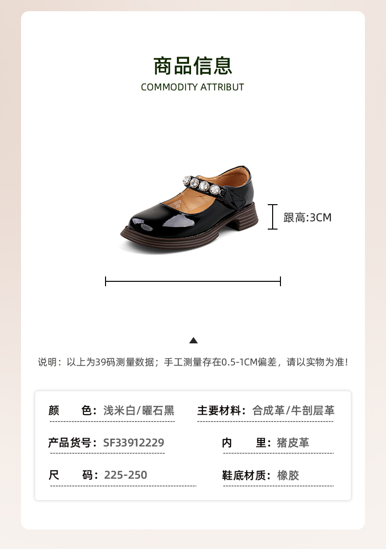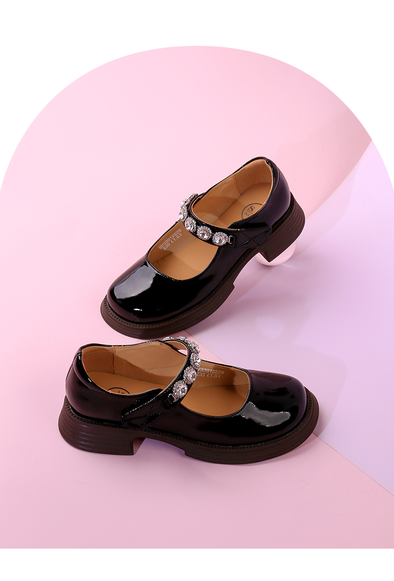超值精选 | Safiya/索菲娅 2023秋季甜酷粗跟钻链亮面一字带玛丽珍小皮鞋 SF33912229