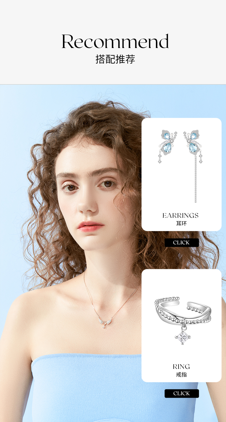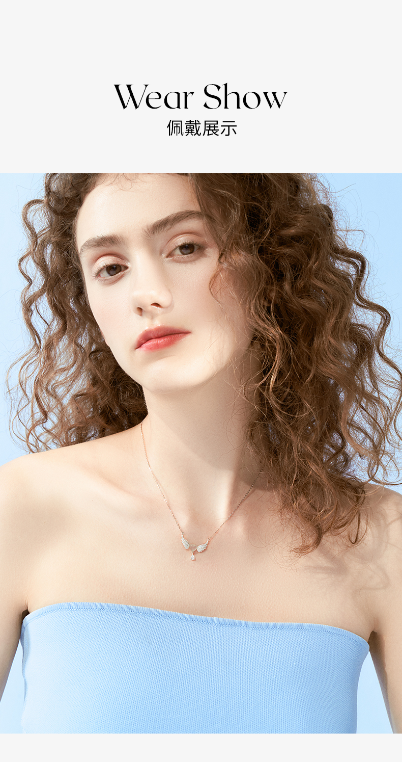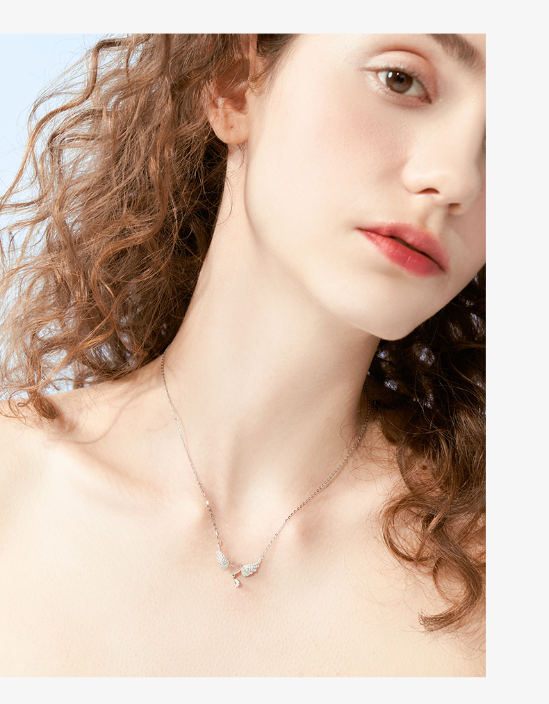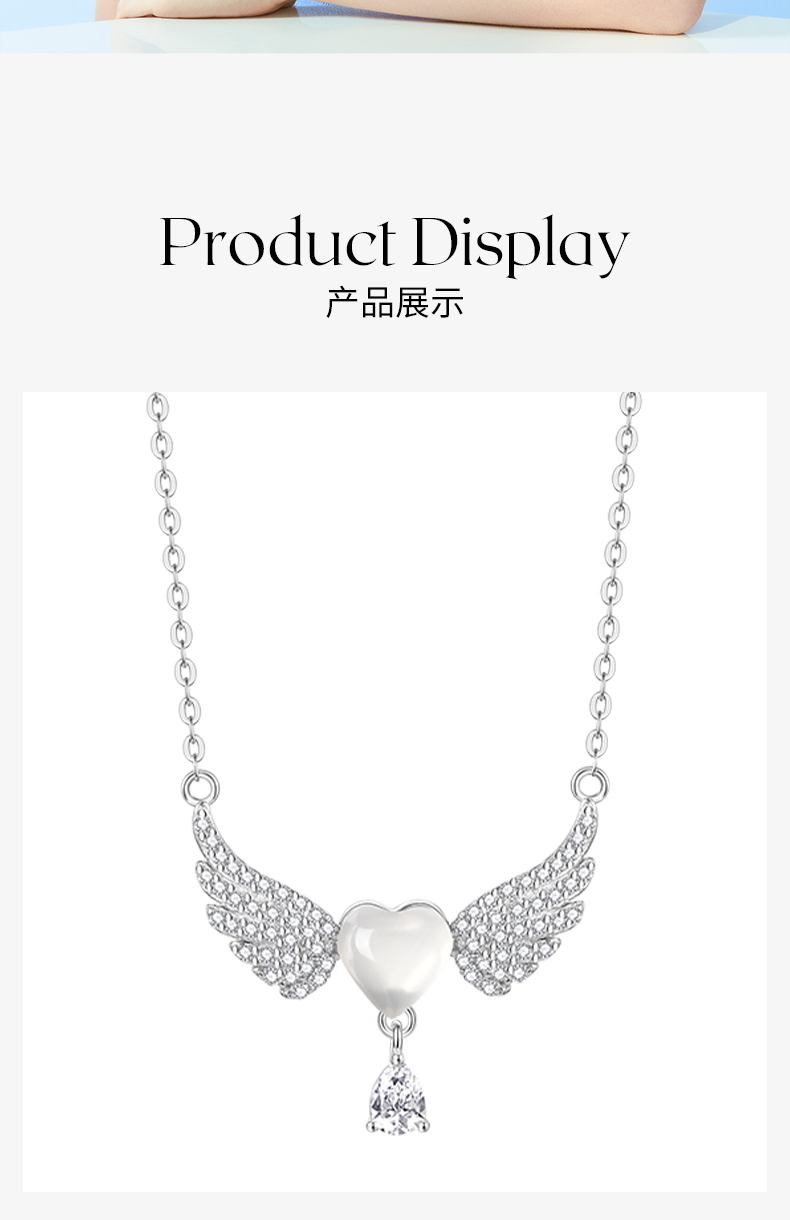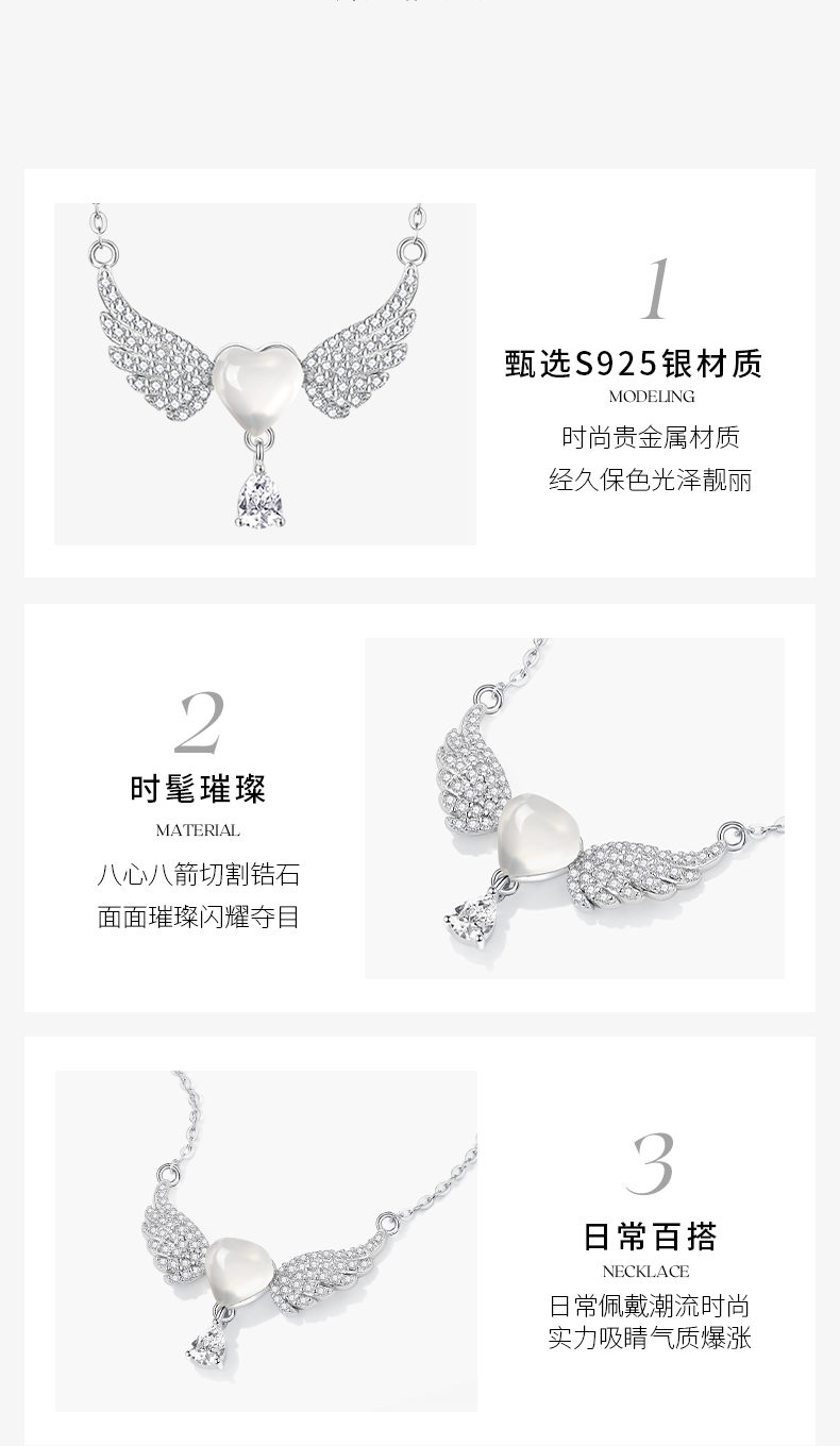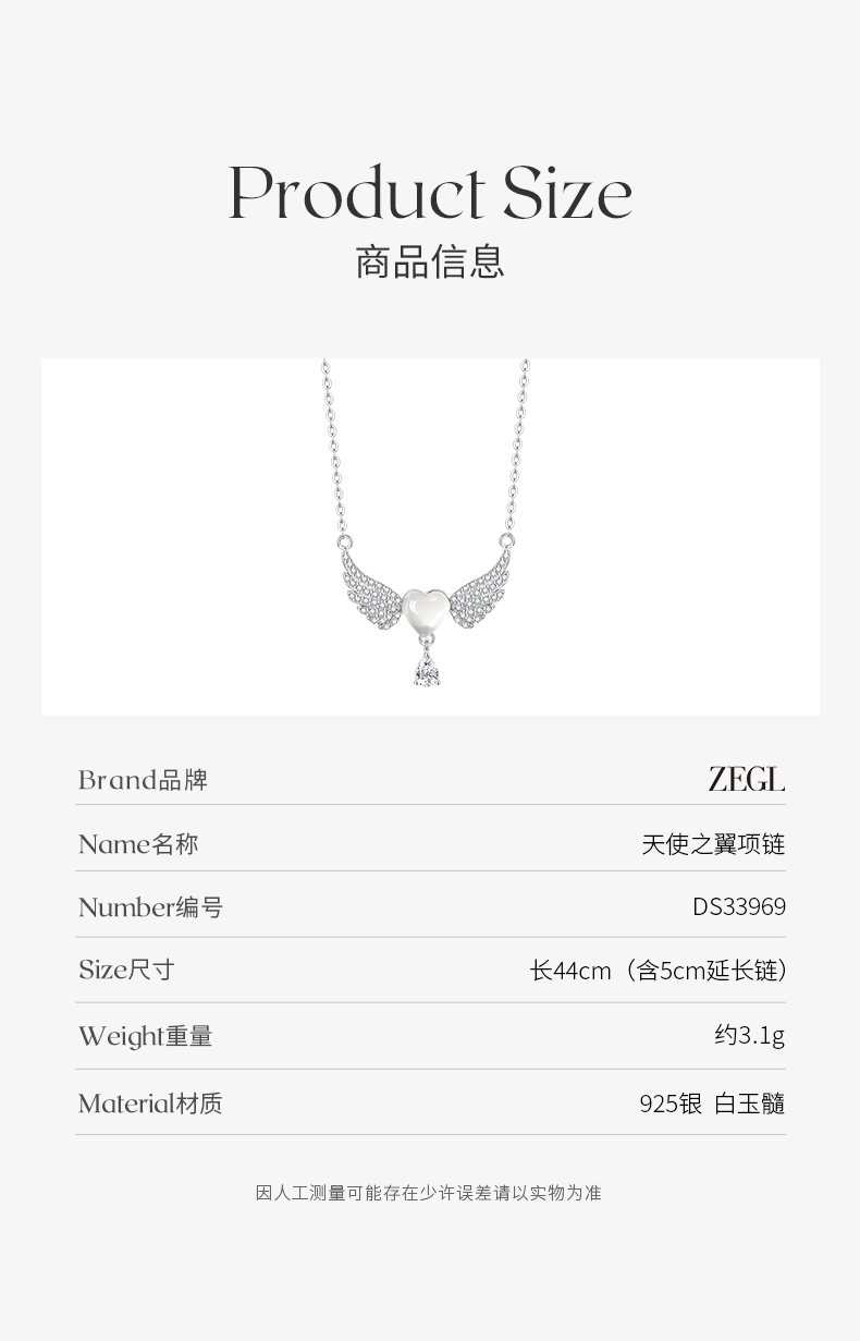 ZEGL天使之翼白玉项链女生925纯银轻奢小众锁骨链生日礼物送女友