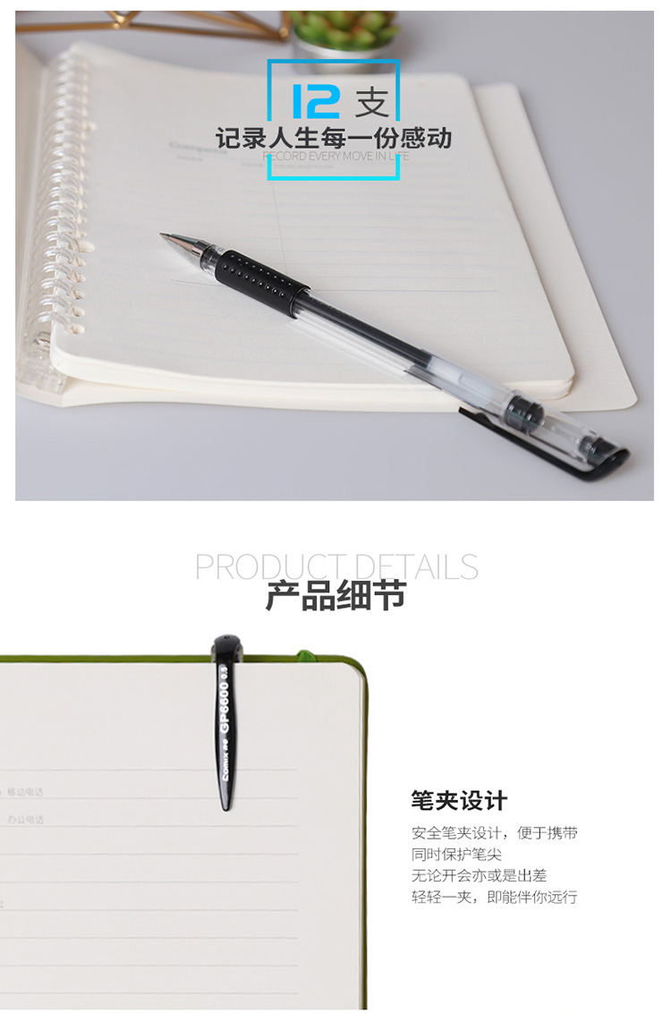 齐心(Comix) 黑色0.5mm经典办公中性笔 子弹头水笔/签字笔 办公文具12支/盒 GP6600