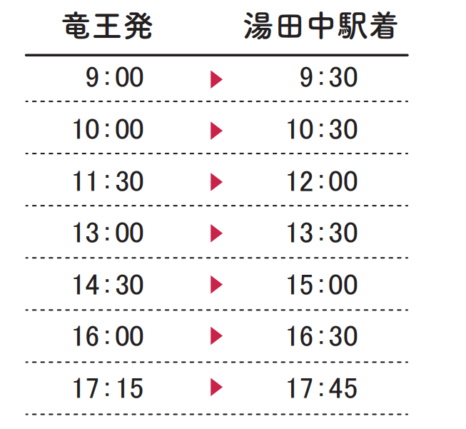 酒店设有班车前往汤田中站,在滑雪之余还能享受日本当地美食~,以下为班车参考时间