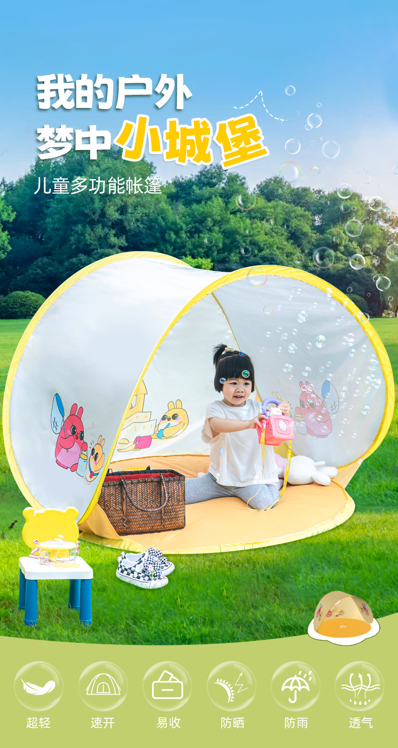 【一秒打开 防晒UPF50+】GWIZ顽学儿童夏日速开帐篷沙滩露营 户外便携式 折叠超轻防雨遮阳棚