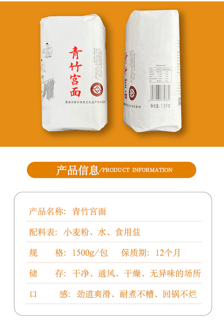 藁城宫面 青竹宫面3斤大圆封 非遗技艺 老字号 国家地理标志产品