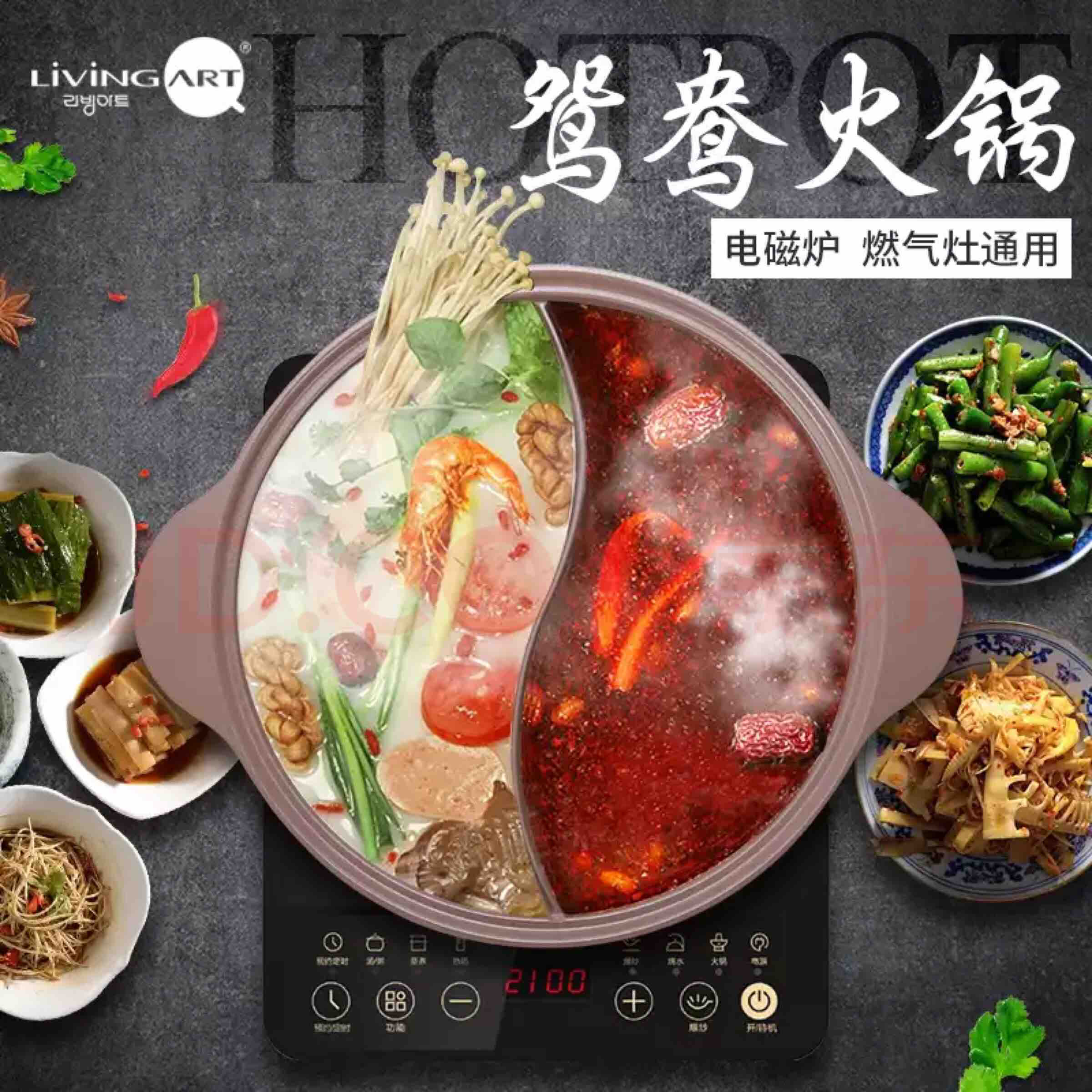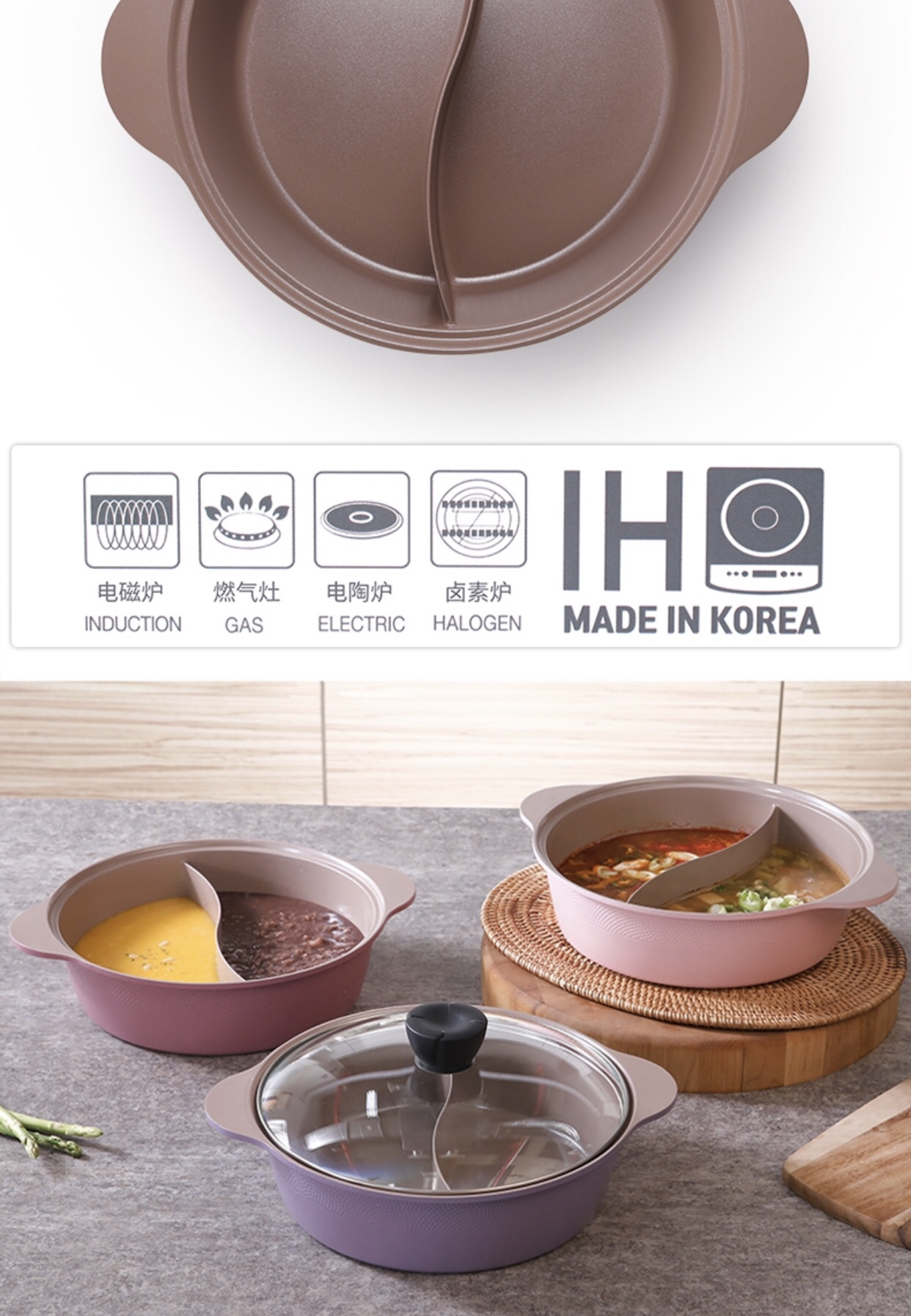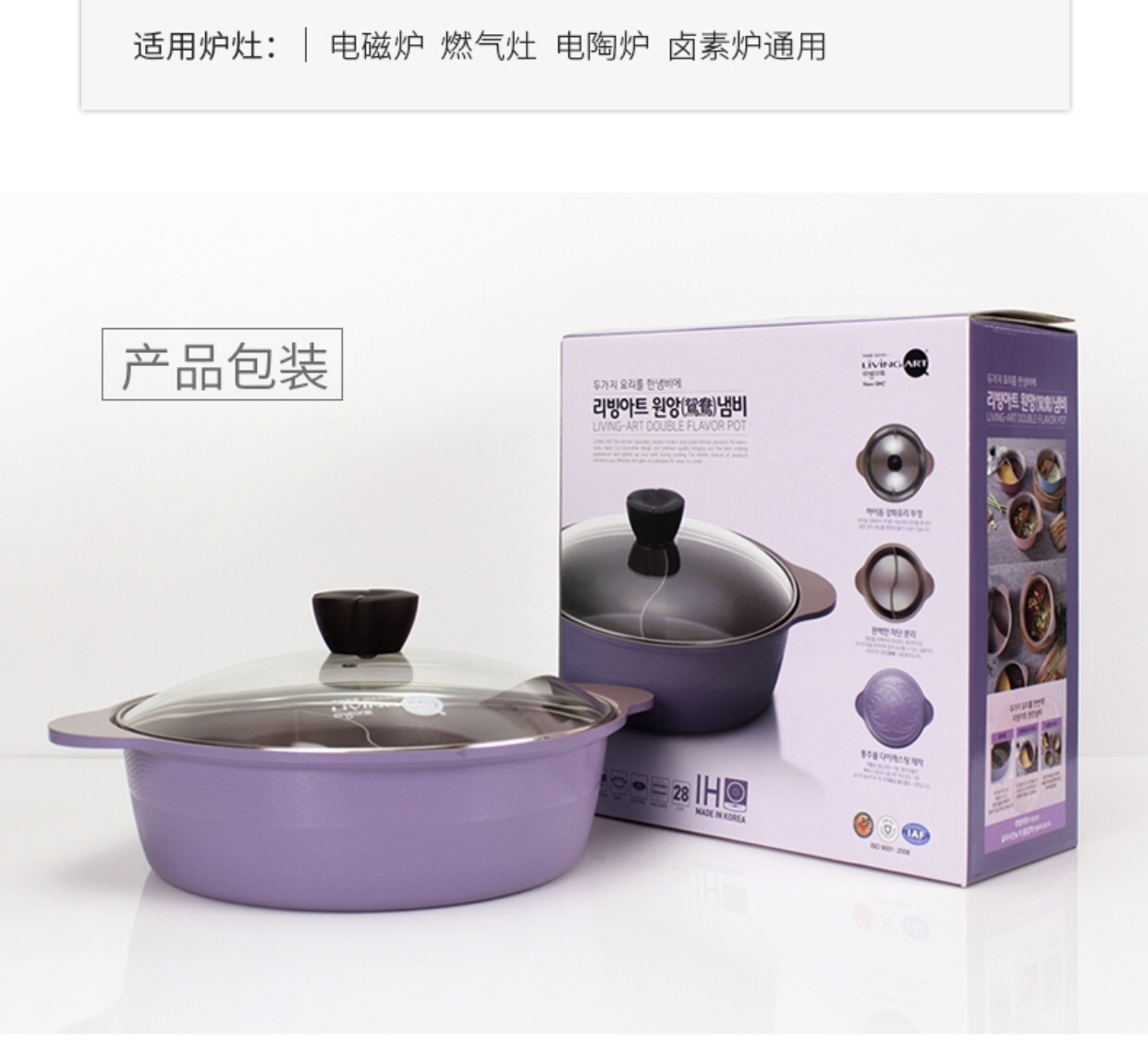livingart 【韩国进口】火锅加厚鸳鸯锅28cm电磁炉燃气灶专用-紫色鸳鸯火锅-会员8折