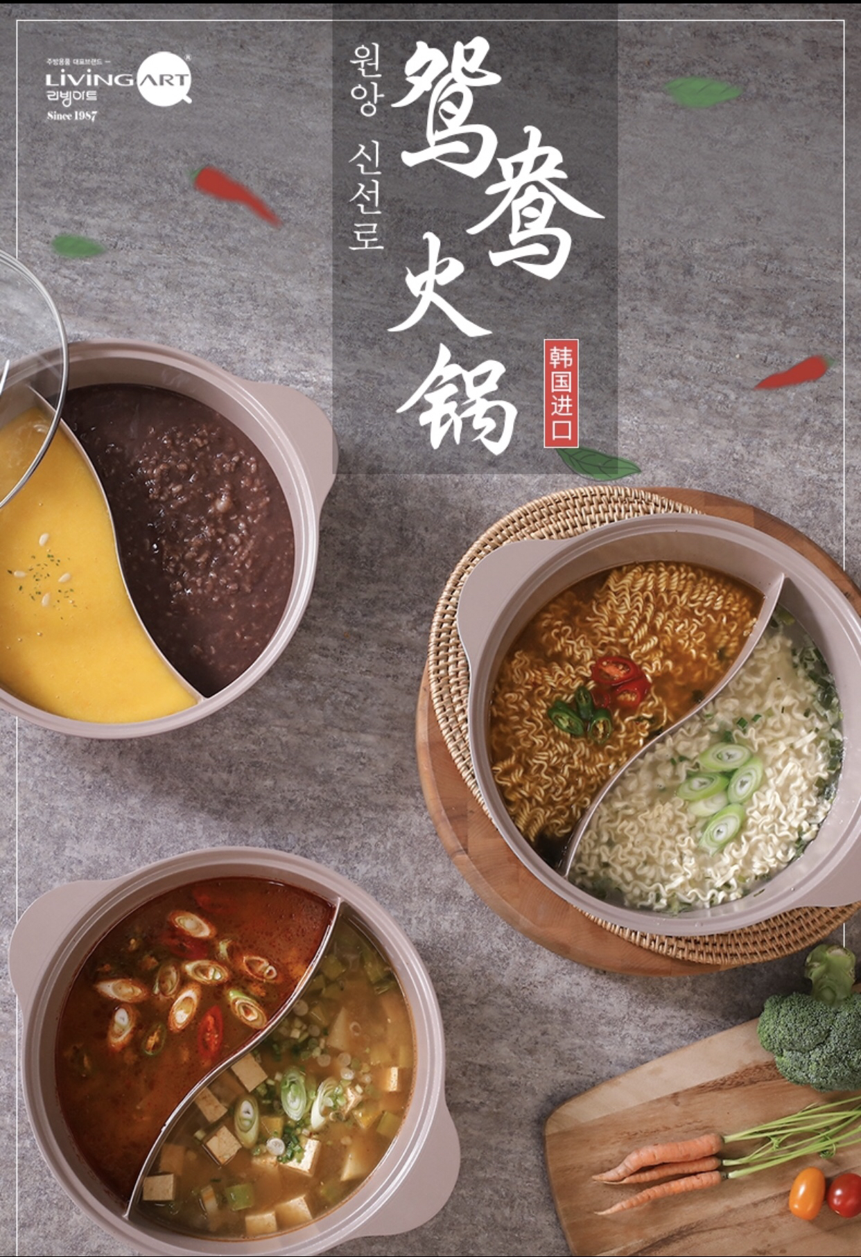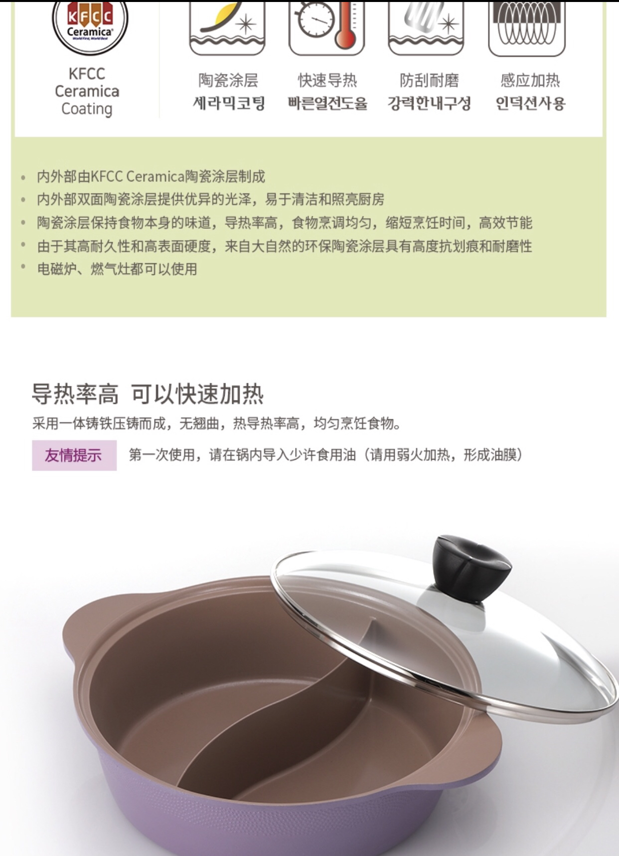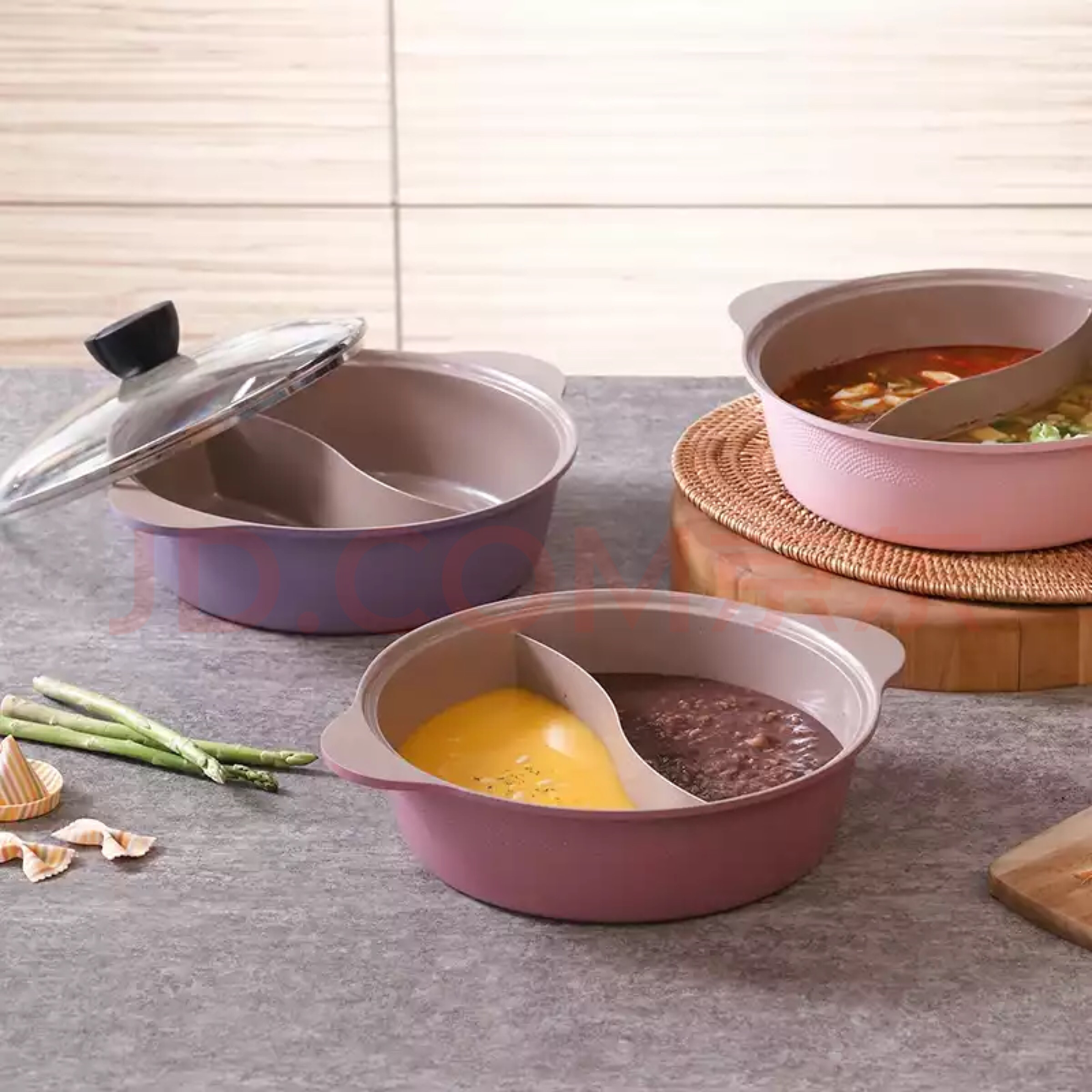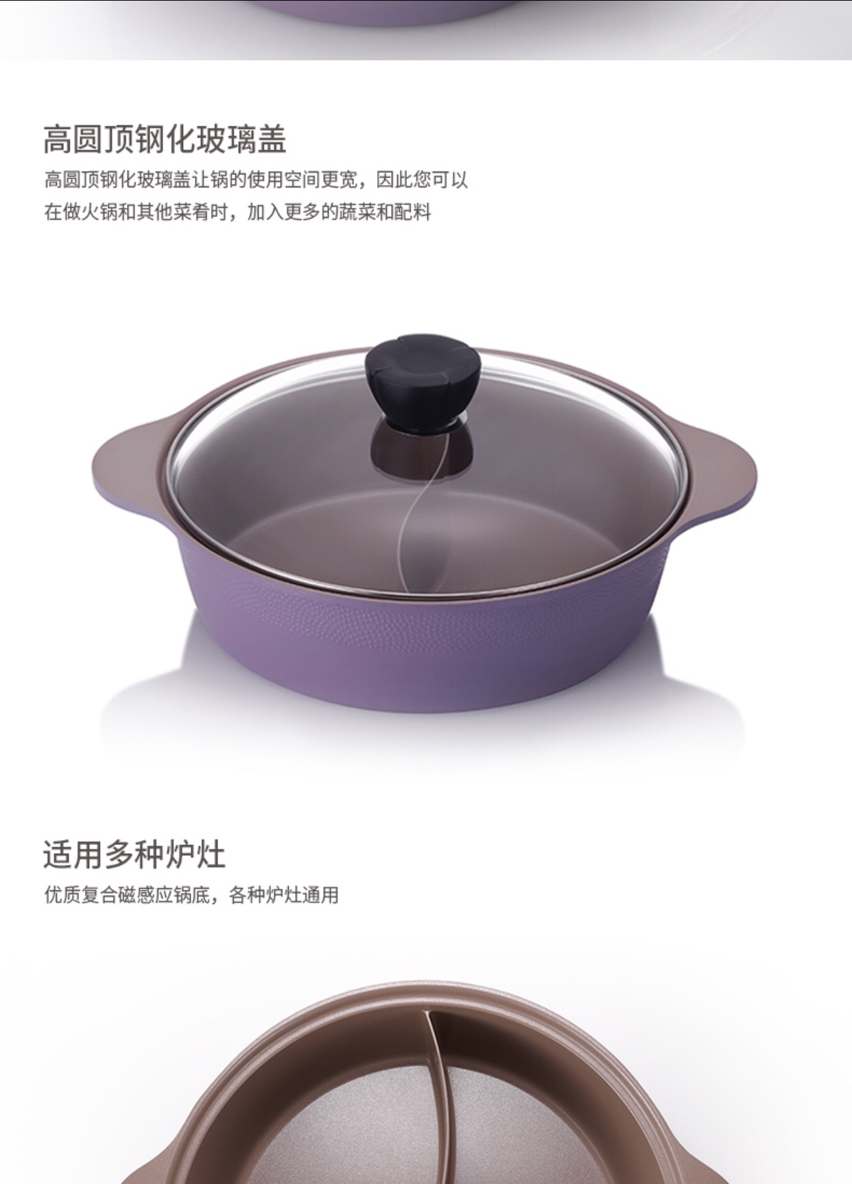 livingart 【韩国进口】火锅加厚鸳鸯锅28cm电磁炉燃气灶专用-紫色鸳鸯火锅-会员8折
