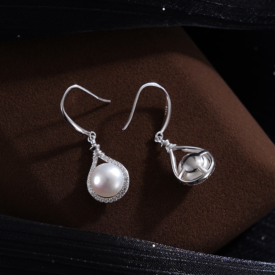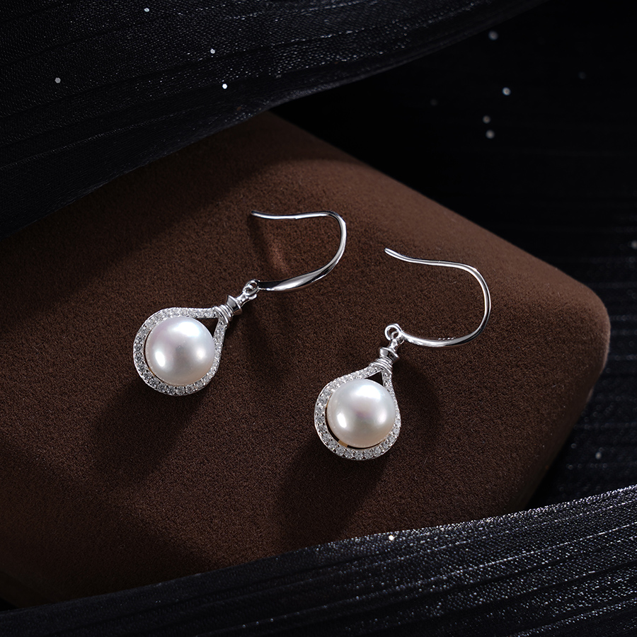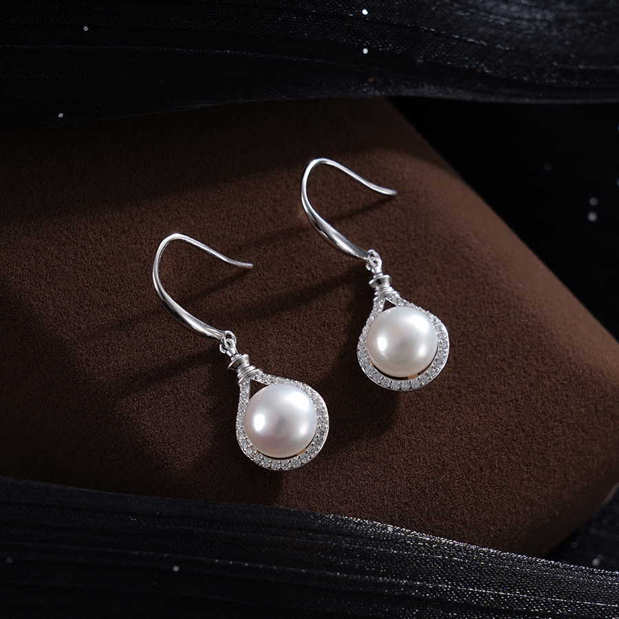 【寓意】:纯银勾勒极简轮廓,珍珠镶嵌点缀,锆石环绕密嵌,映衬耳畔璀璨光影,尽显优雅气质。