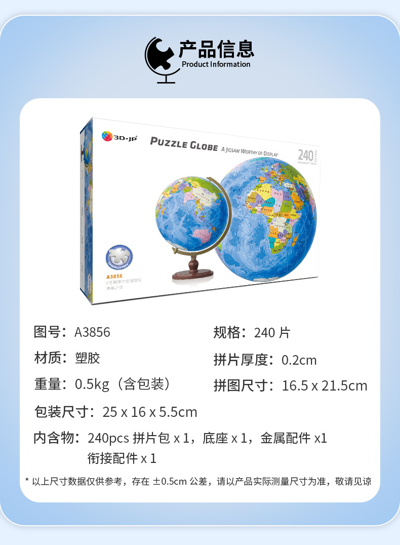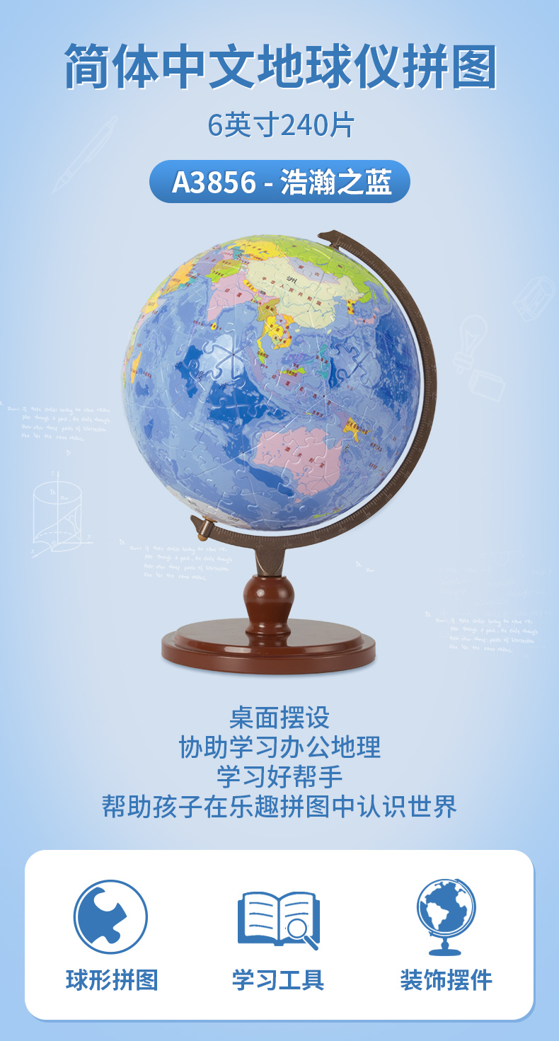 240片 A3856 蓝色简体中文地球仪-浩瀚之蓝