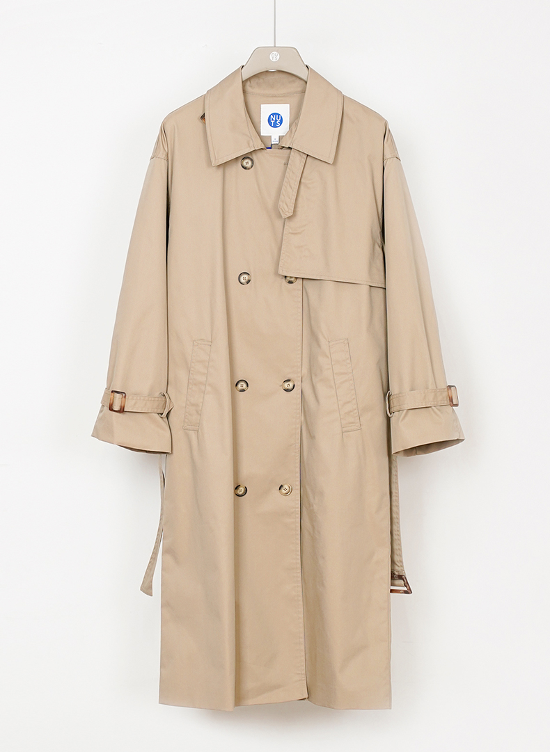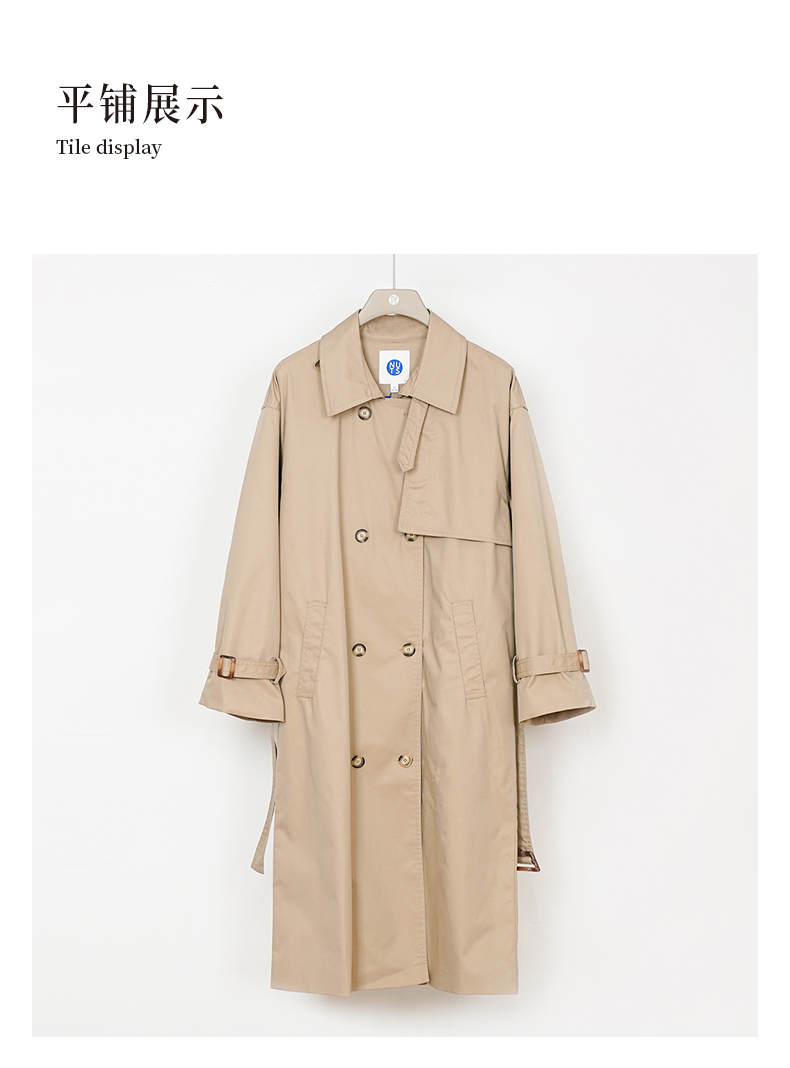 NUTS秋季新款英伦风双排扣简约休闲宽松长款风衣外套女334042333