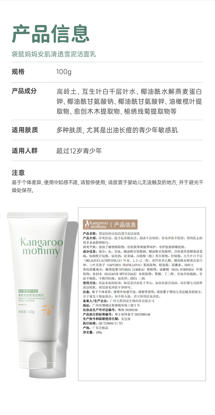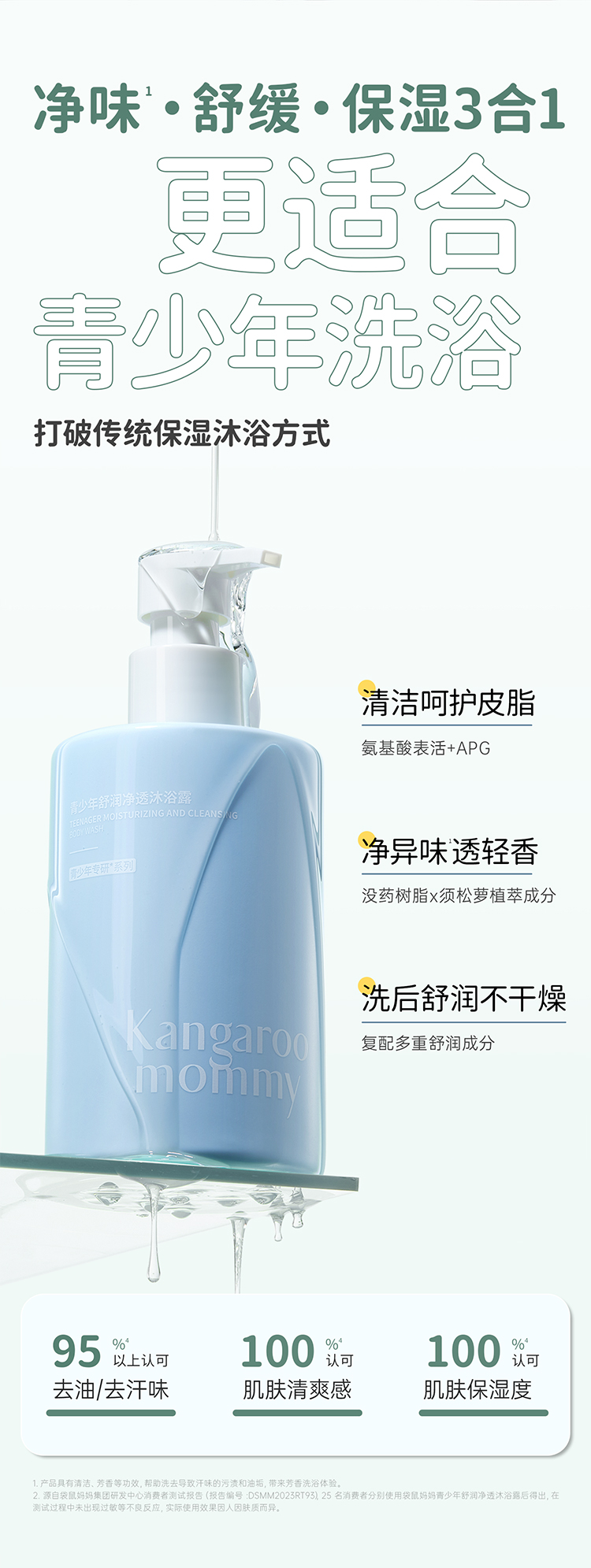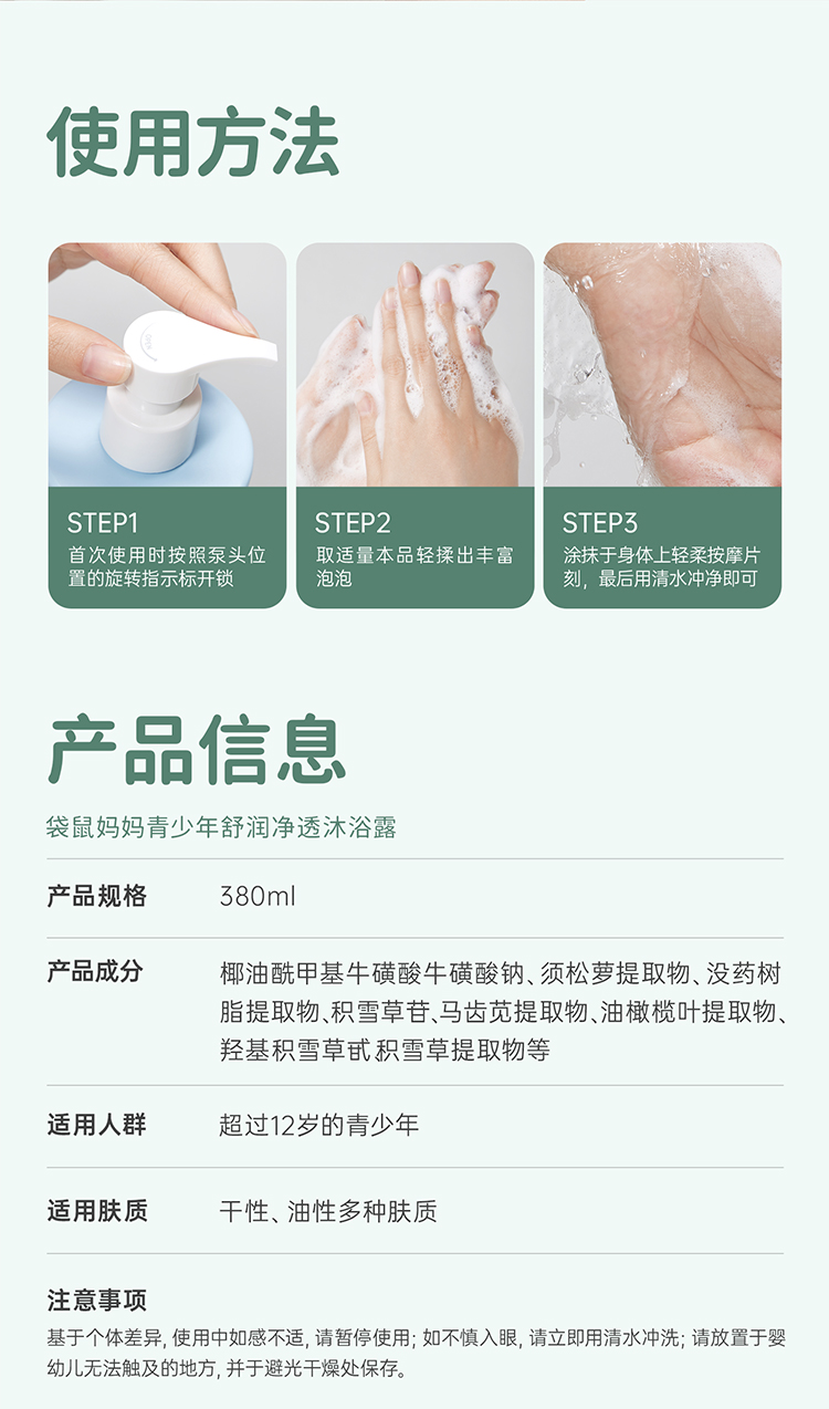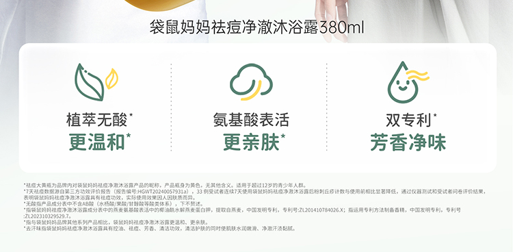 【青少年祛痘沐浴露】无酸祛痘 除螨控油 袋鼠妈妈祛痘净澈沐浴露450ml