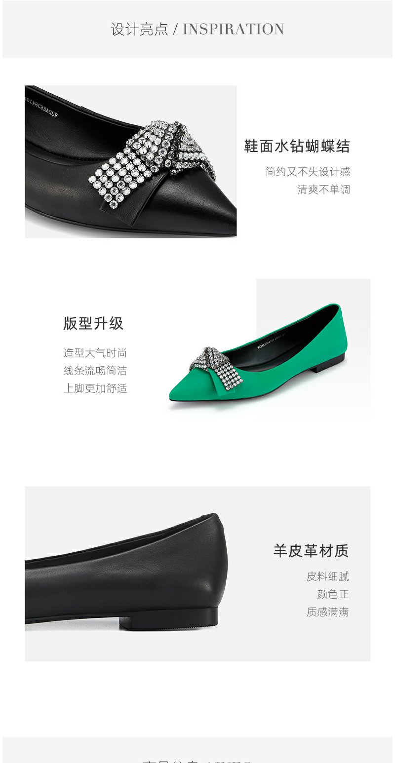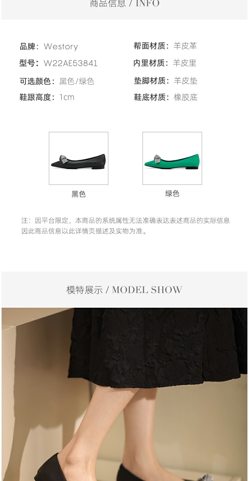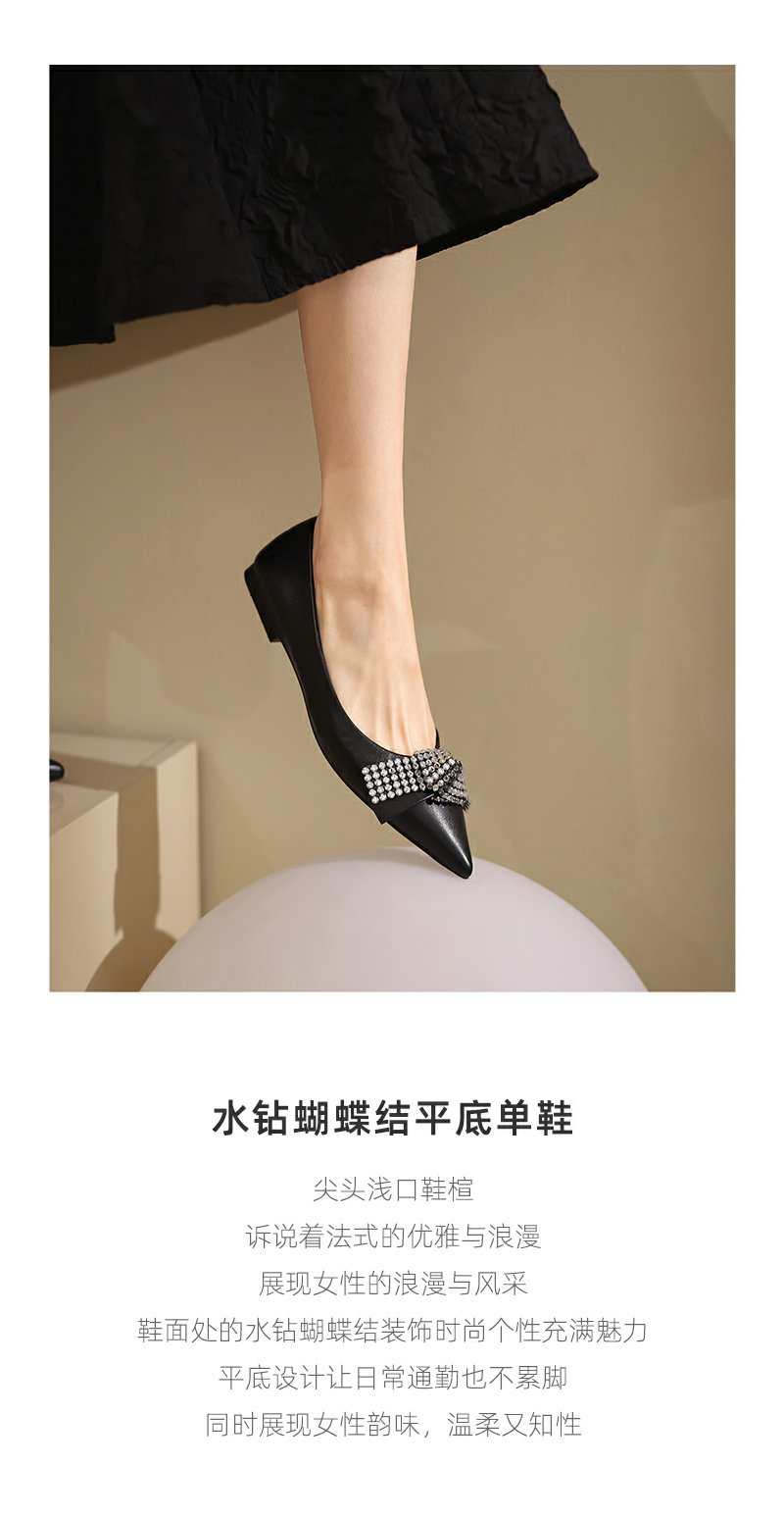 westory2022春季新款亮钻蝴蝶结平底鞋仙女甜美通勤单鞋真皮W22AE53841