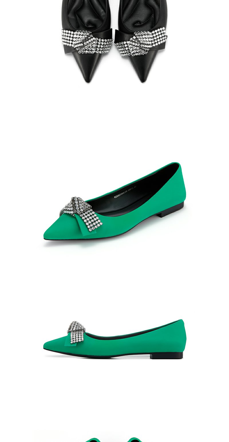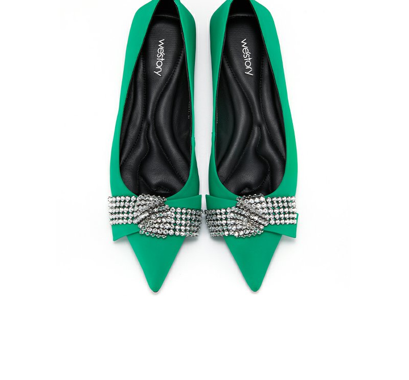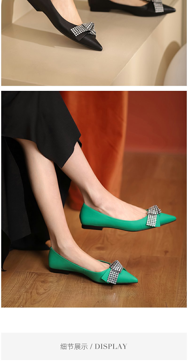 westory2022春季新款亮钻蝴蝶结平底鞋仙女甜美通勤单鞋真皮W22AE53841
