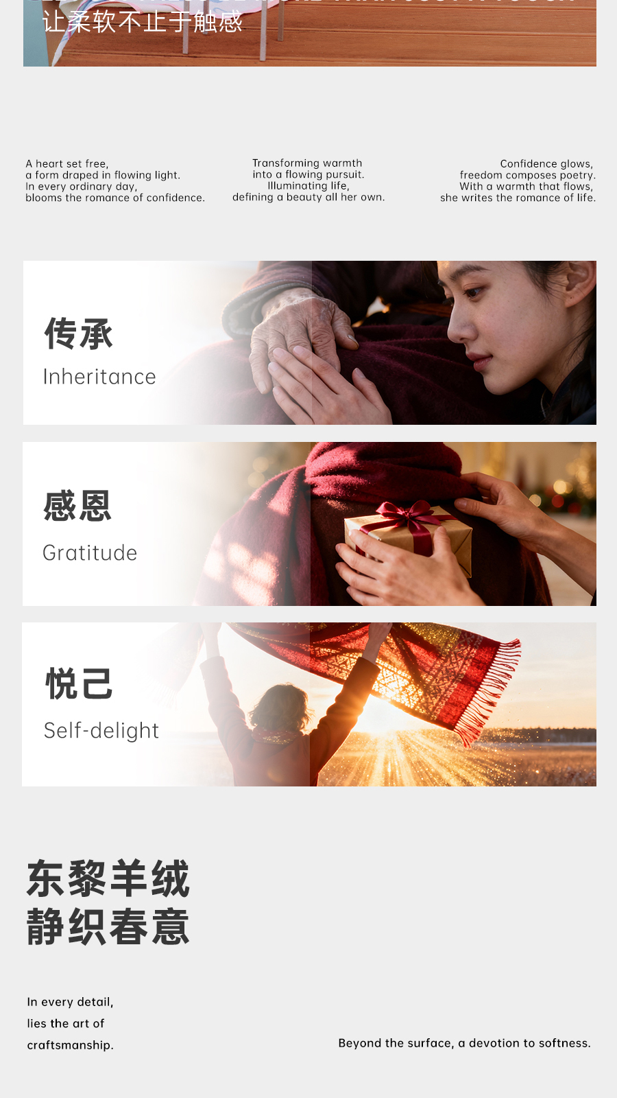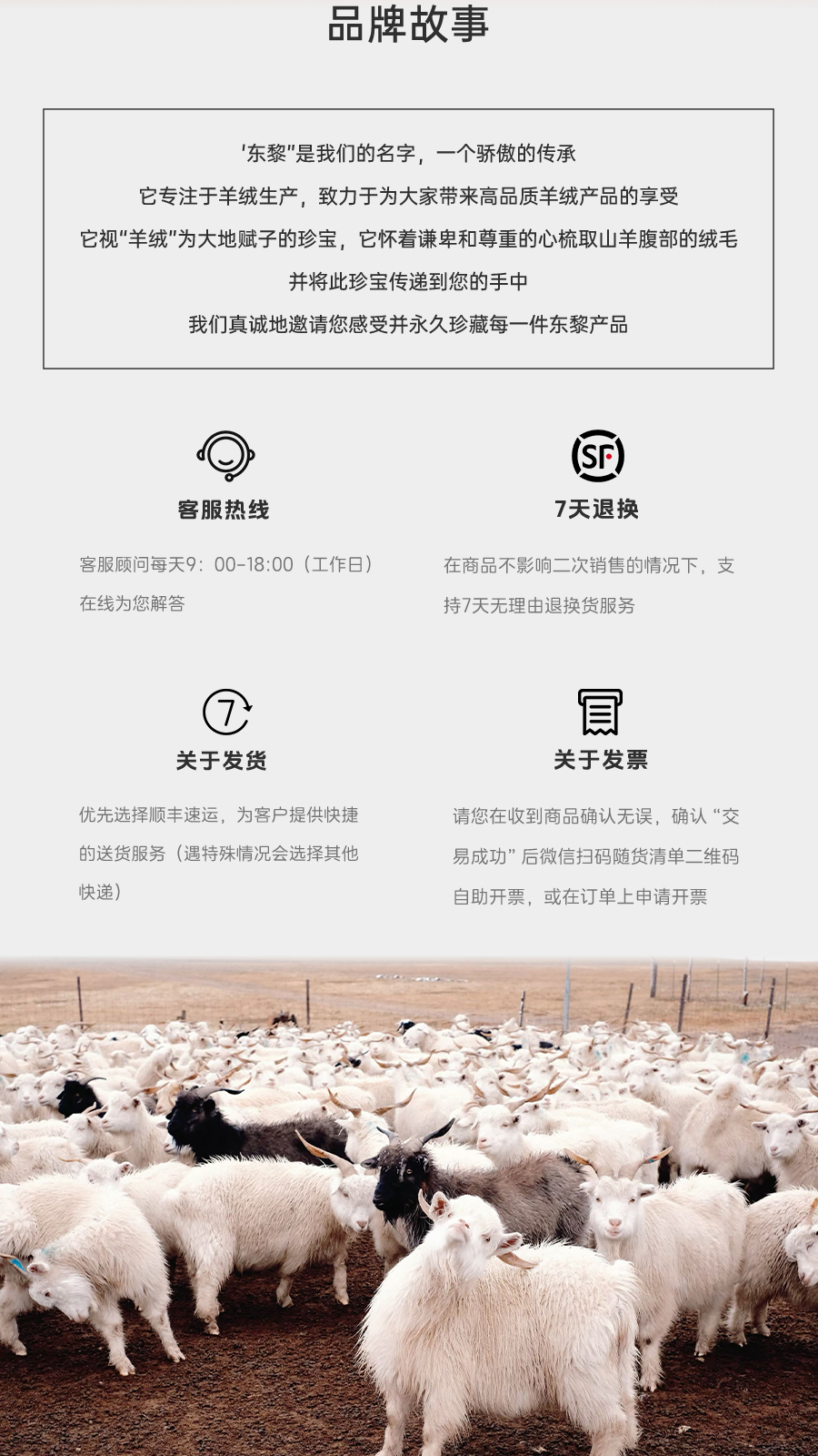 东黎羊绒是赤峰东荣集团自主品牌,自有牧场/羊绒制品全产业链优势,实现了羊绒从“牧场”到“商场”的华丽转变。