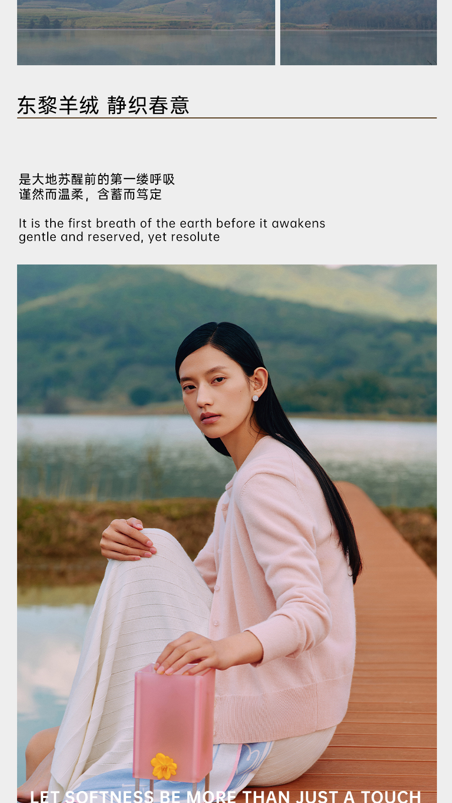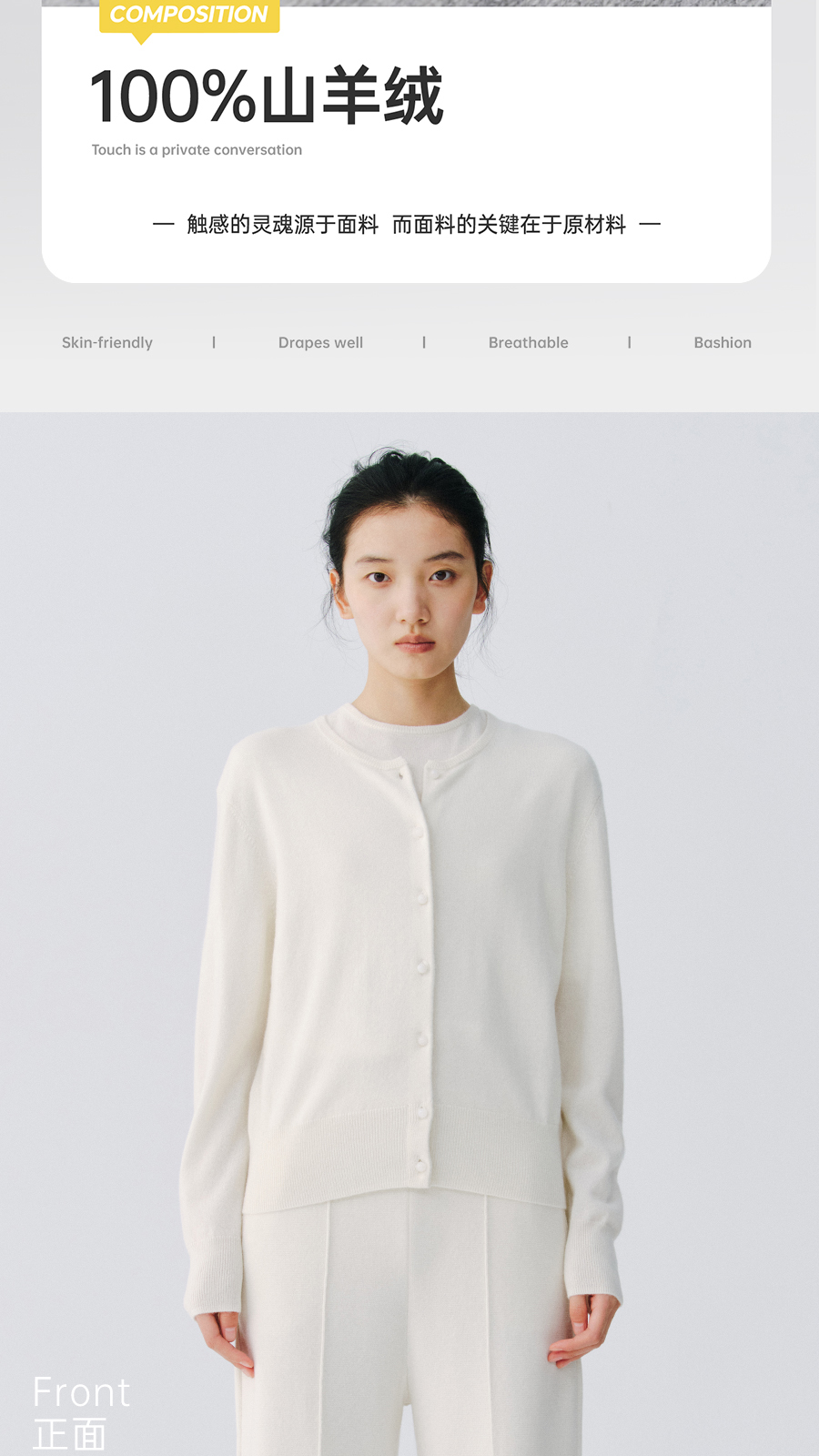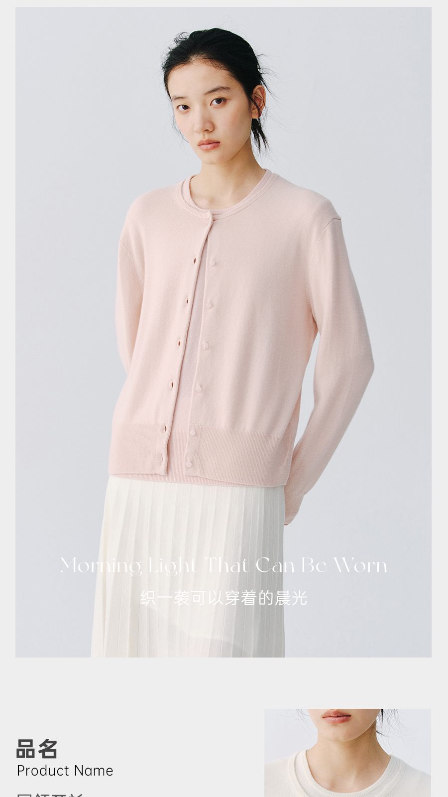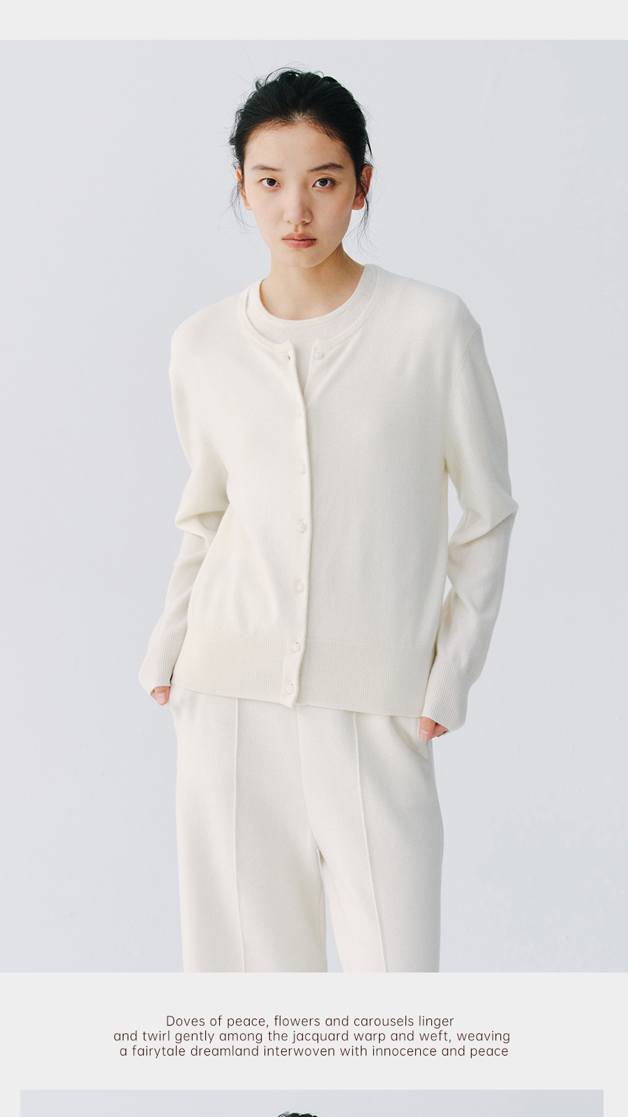 东黎 • 复苏的呼吸 玉露逢春 山羊绒女士柔软亲肤百搭必备圆领开衫 6023