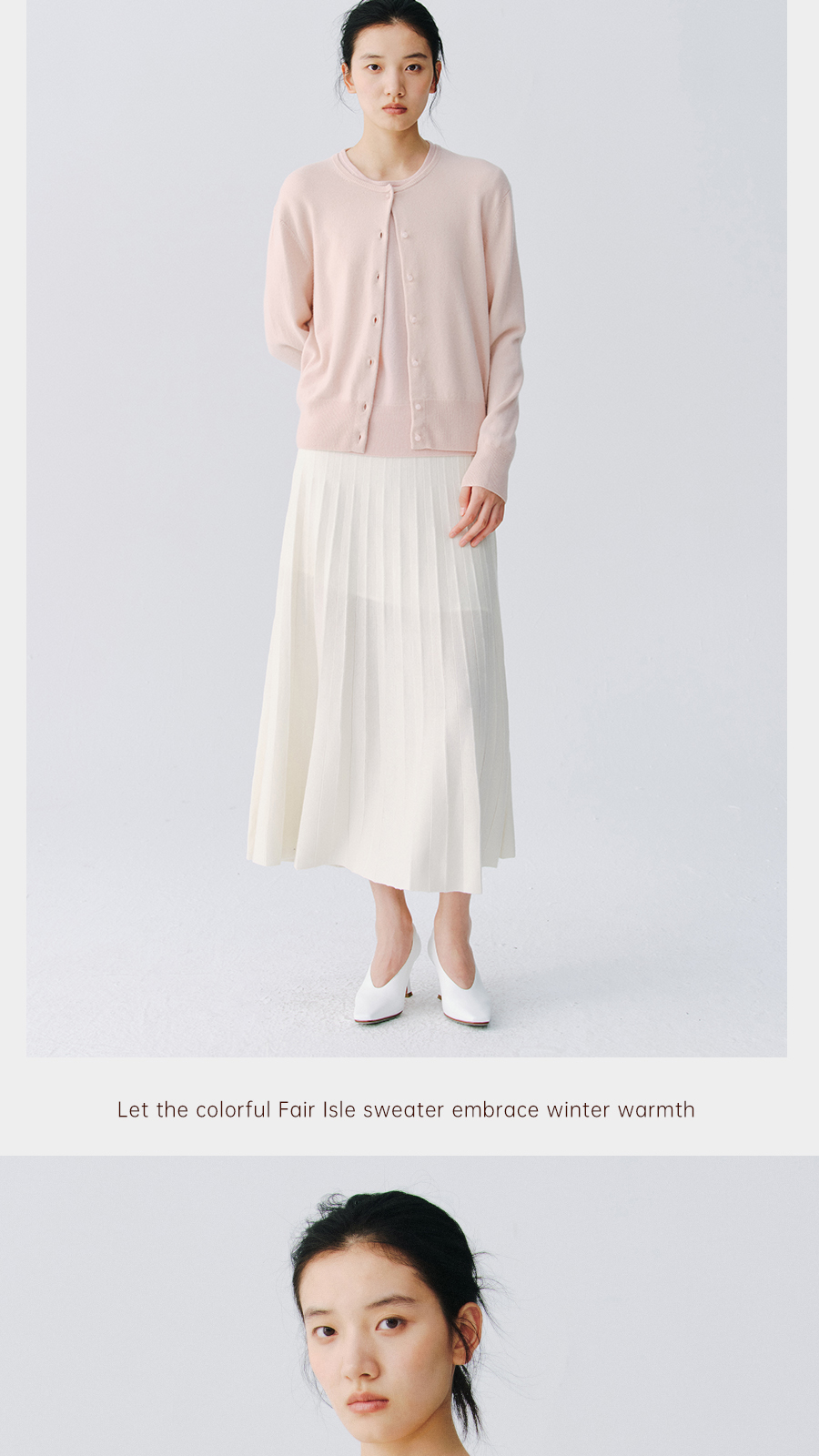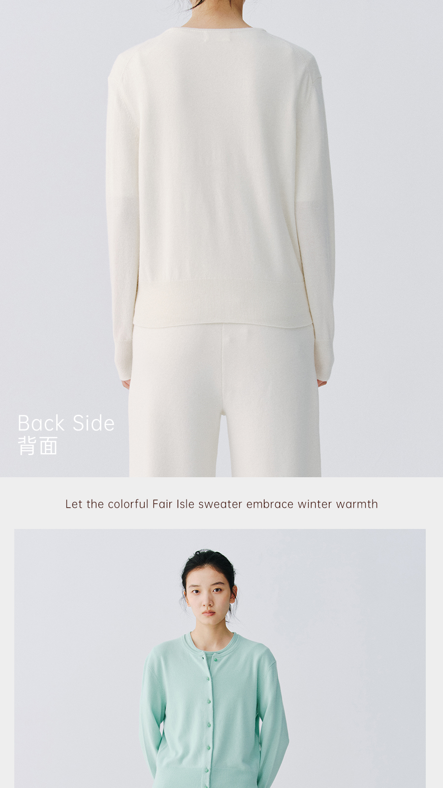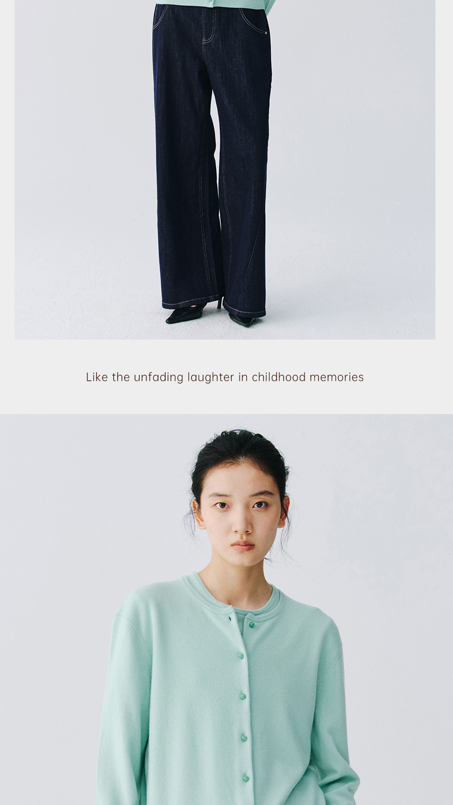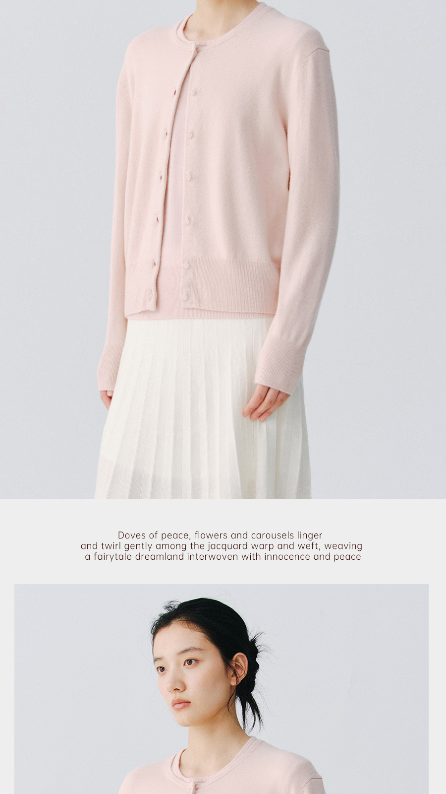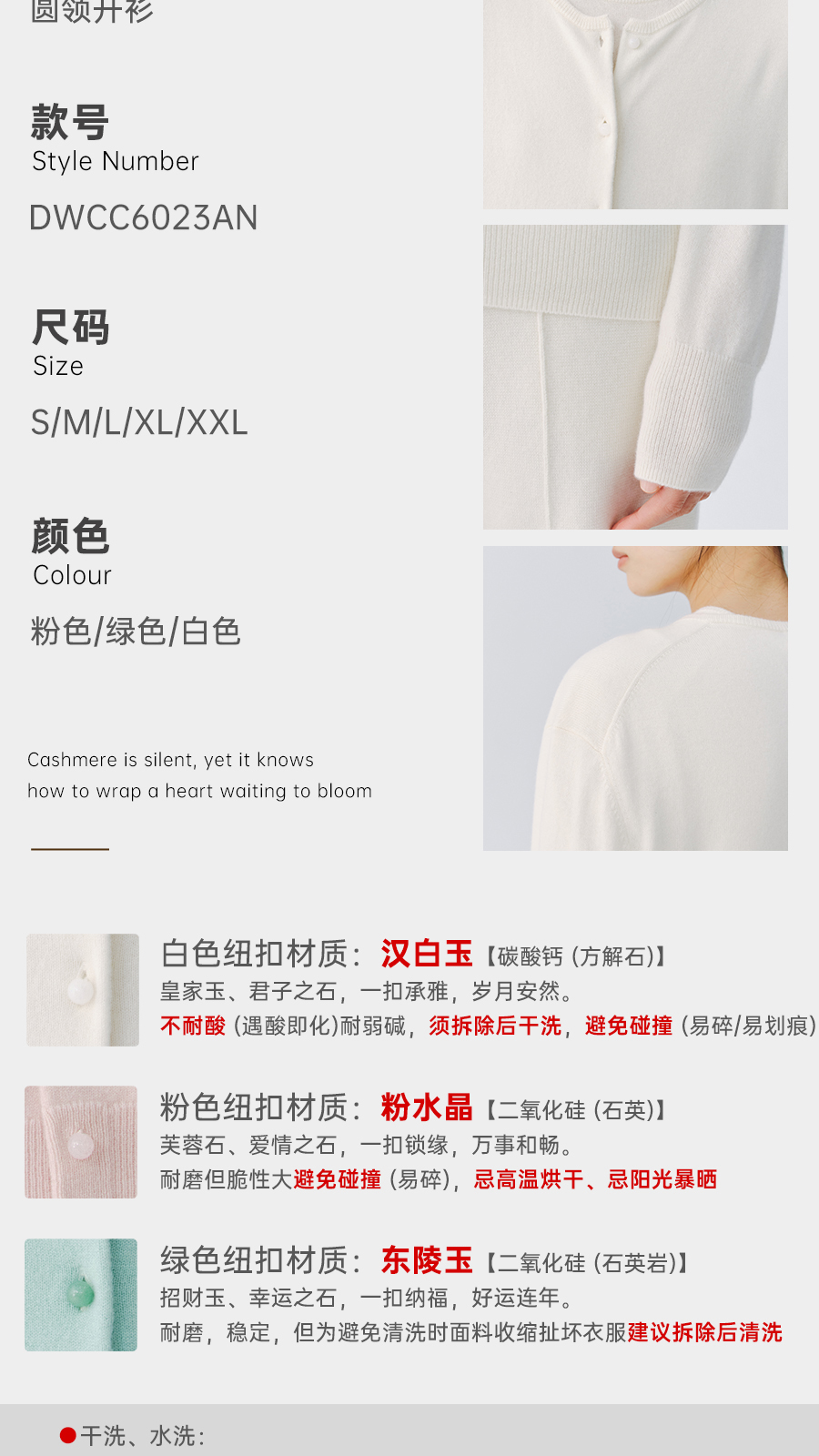 东黎 • 复苏的呼吸 玉露逢春 山羊绒女士柔软亲肤百搭必备圆领开衫 6023