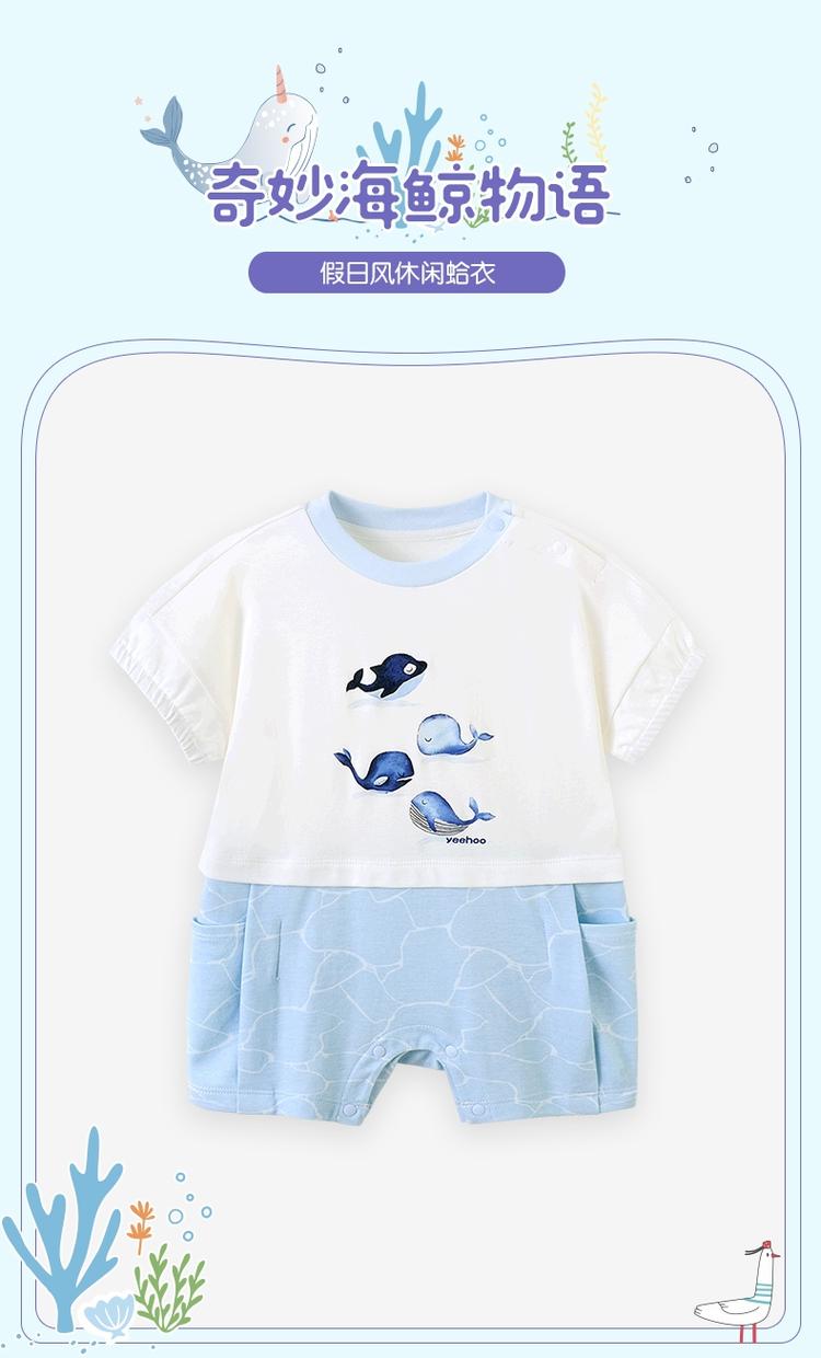 英氏婴儿连体衣男宝宝夏季印花短袖休闲哈衣爬服YRHBJ21141A01