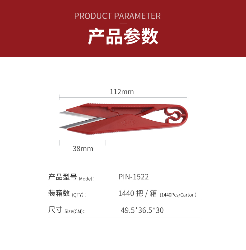 1523PIN塑料柄剪纱剪绣花裁缝剪小号家用缝纫剪线头U型小剪刀剪线头 S