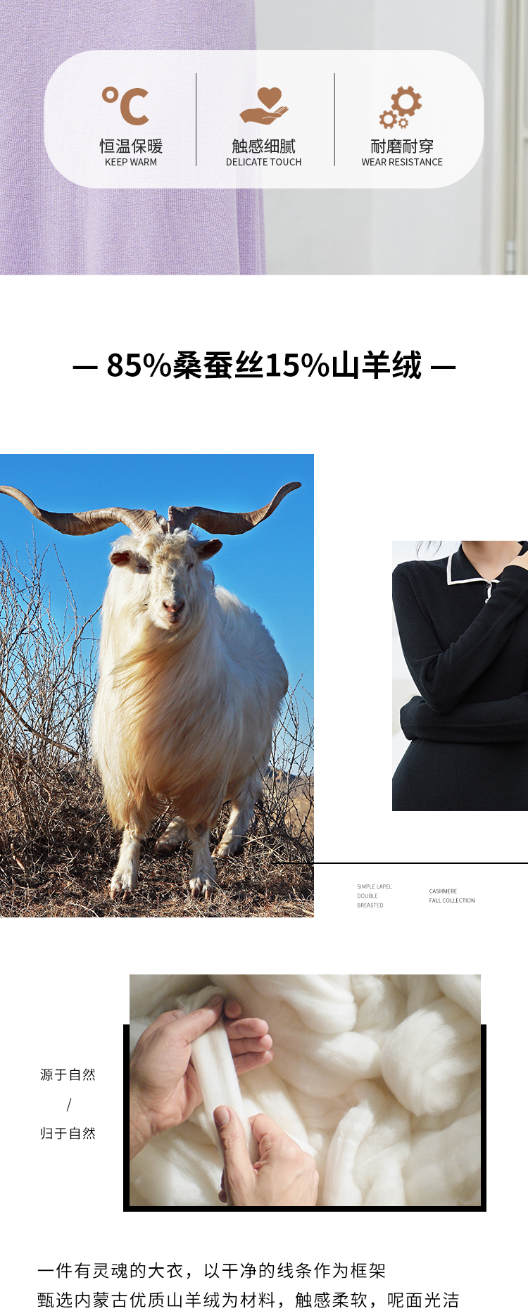 东黎羊绒是赤峰东荣集团自主品牌,自有牧场/羊绒制品全产业链优势,实现了羊绒从“牧场”到“商场”的华丽转变。