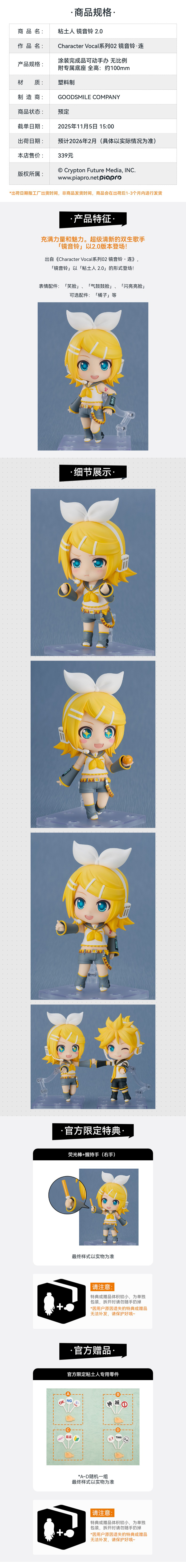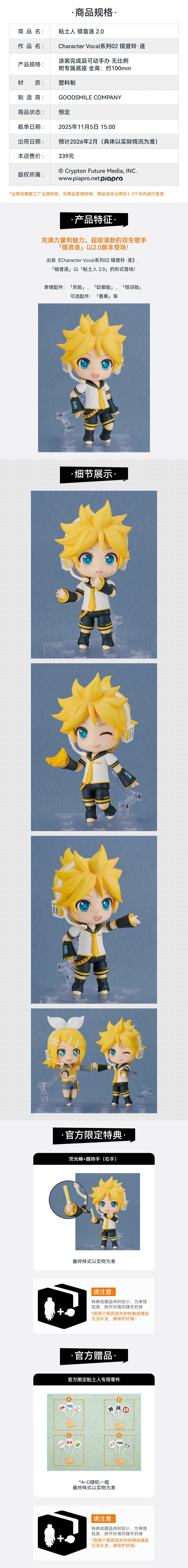 【GSC预售定金】粘土人 镜音铃 2.0/镜音连 2.0 附官方限定特典 Character Vocal系列02 镜音铃·连