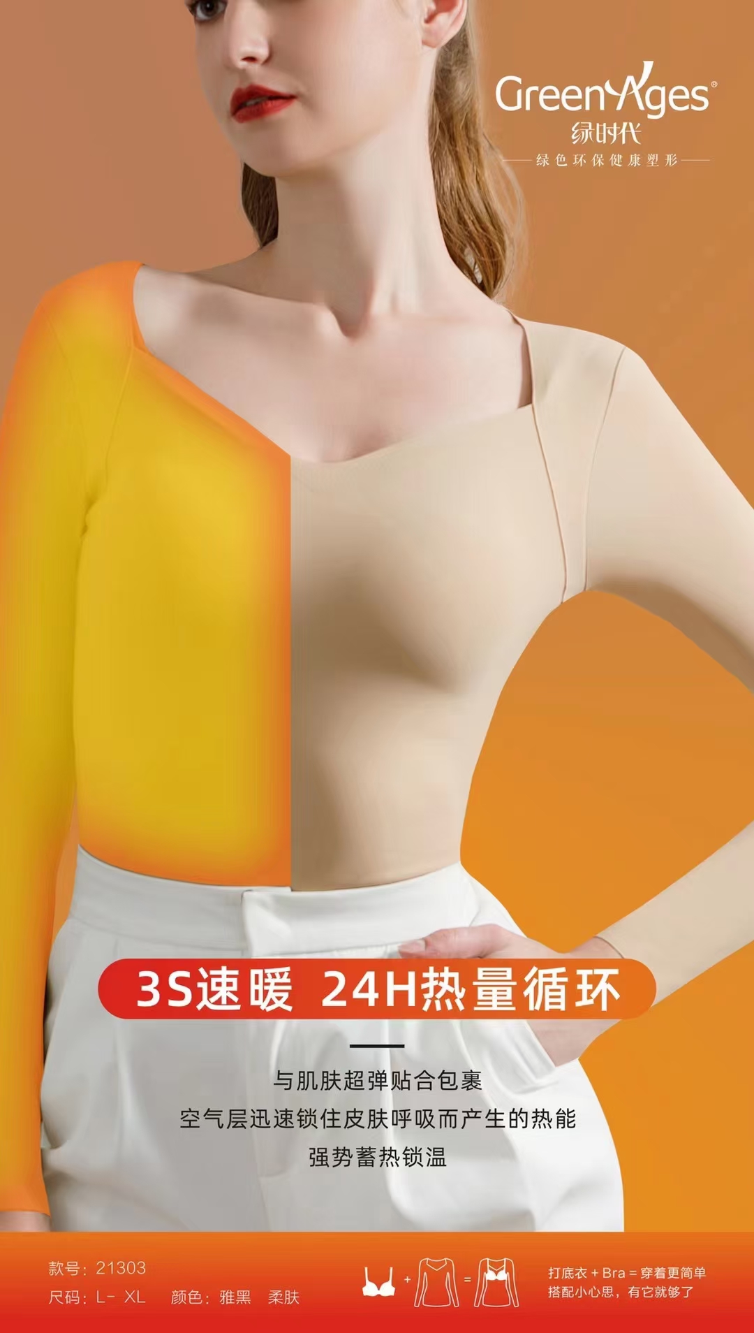 超薄黑科技无尺码隐形热能衣打底衫 氧肤衣皮肤衣