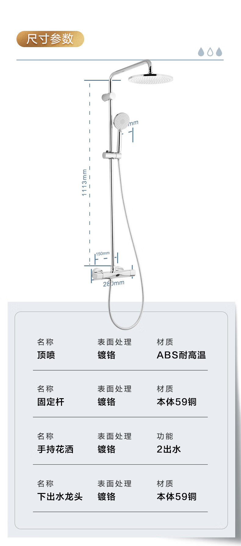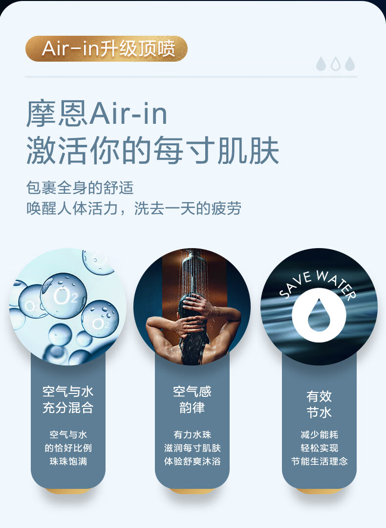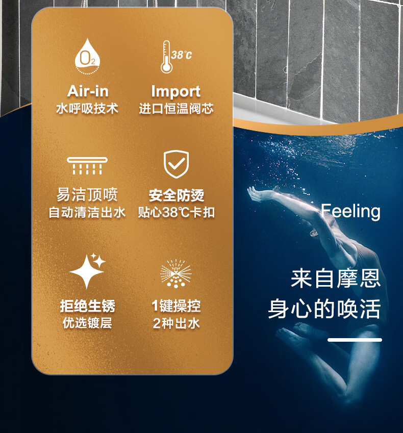 MOEN摩恩诺亚岩板置物平台淋浴花洒冷热洗澡卫浴卫生间花洒58400+2380A+M22081