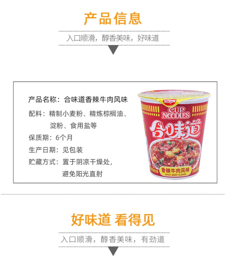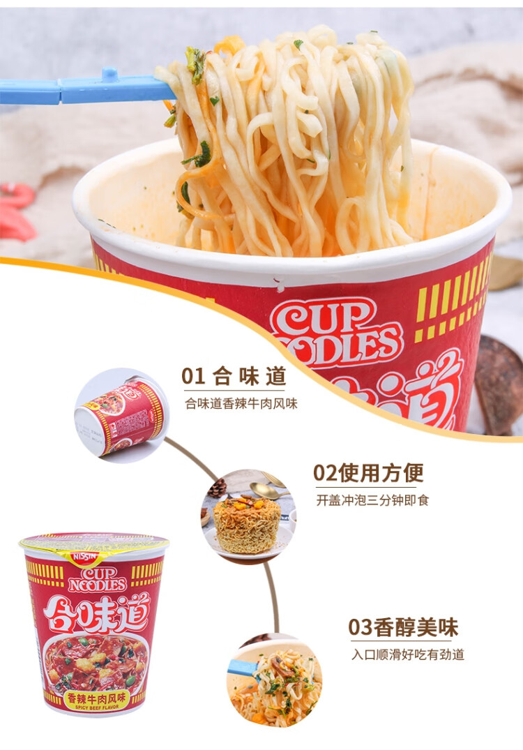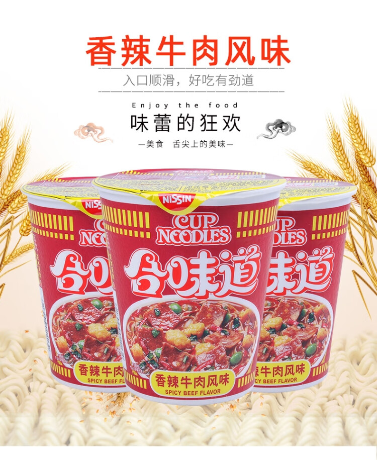 日清 方便面合味道香辣牛肉风味 76g*12杯整箱装 桶装速食泡面