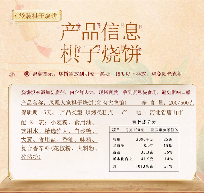 严选 | 凤凰人家现烤鲜肉棋子烧饼500g/袋(15天短保)