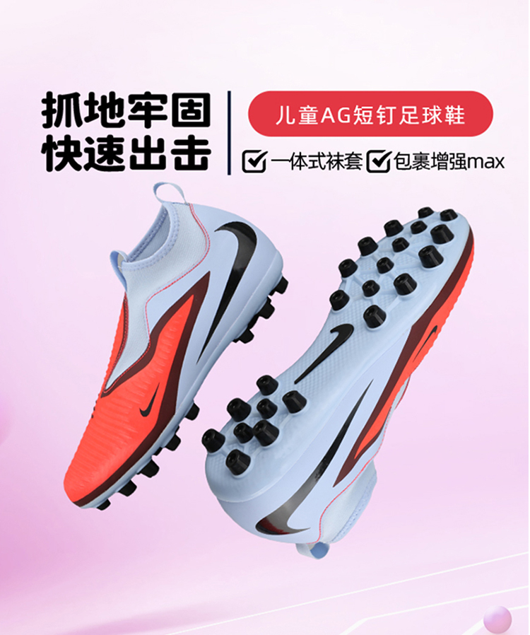 小李子耐克儿童足球鞋PHANTOM高帮AG短钉足球鞋男女孩HQ2034-400