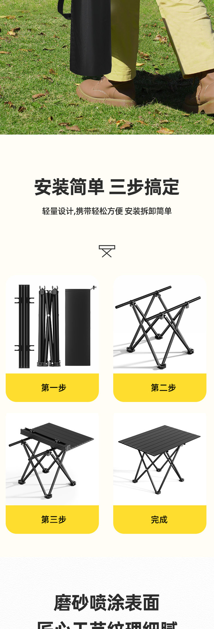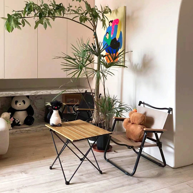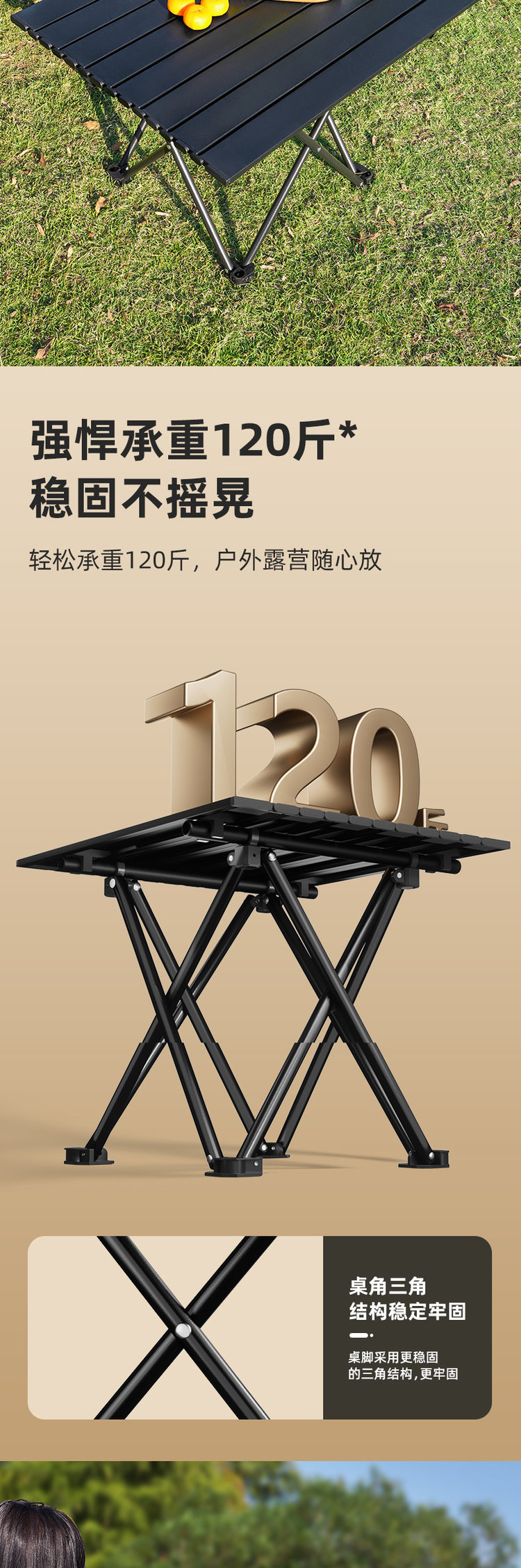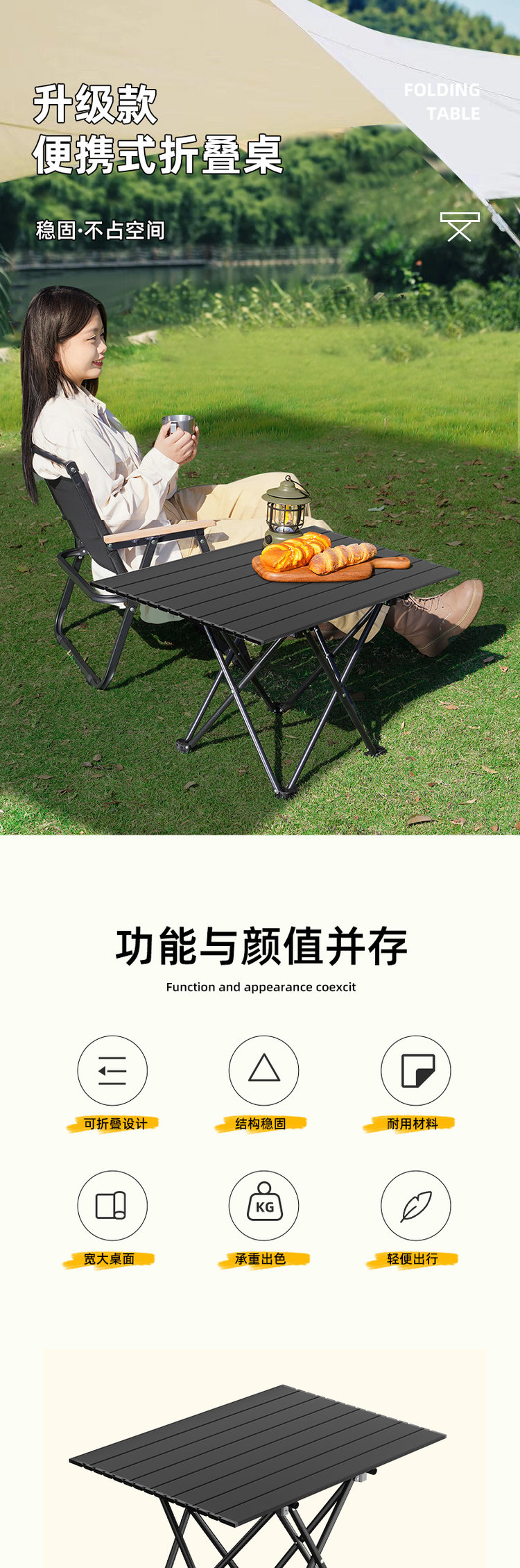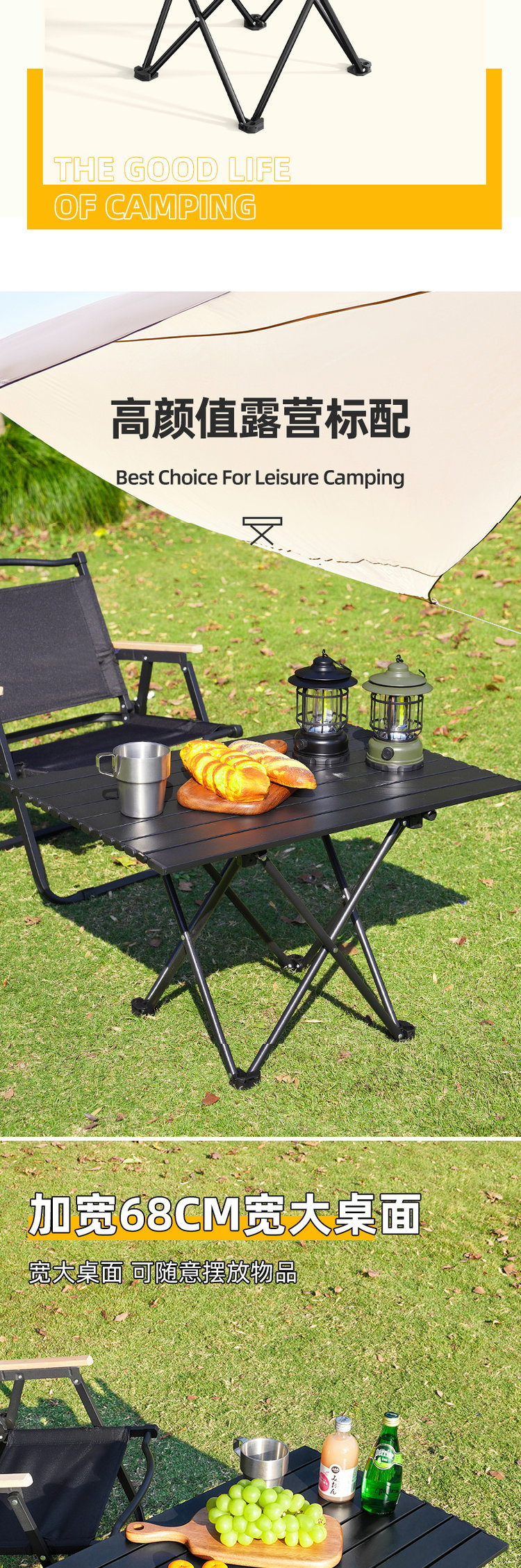 严选 | 老巴丁户外折叠蛋卷桌 黑色/原木色 可选大小