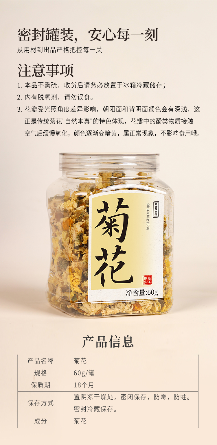 正安原材· 浙江桐乡菊花 只取头茬花朵大香甜润爽 轻松拿下火气 优质原材 菊花 60g/罐【冷藏保存】