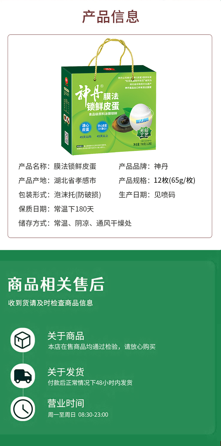 【孝感】神丹新一代锁鲜鸭皮蛋12枚装