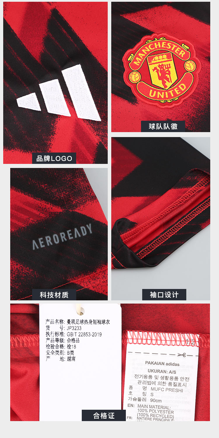 小李子ADIDAS阿迪达斯曼联足球运动热身短袖训练服成人男JP3233