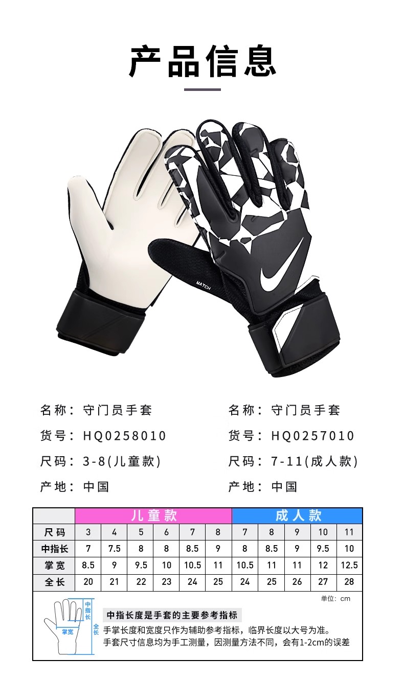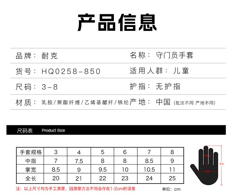 小李子NIKE耐克足球守门员手套青少年儿童防滑训练手套HQ0258-010