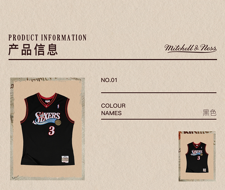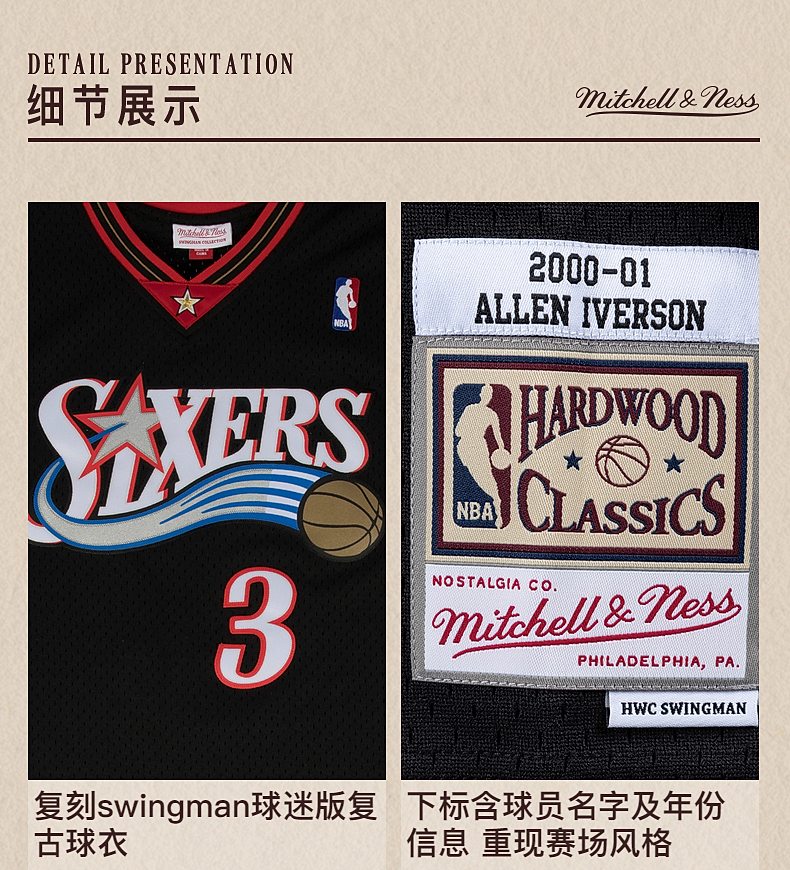 Mitchell&Ness 76人艾佛森 00-01赛季球衣 黑色