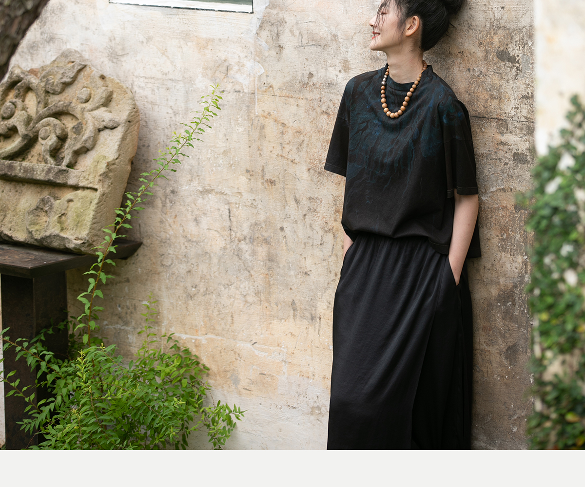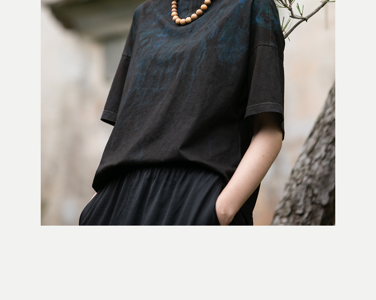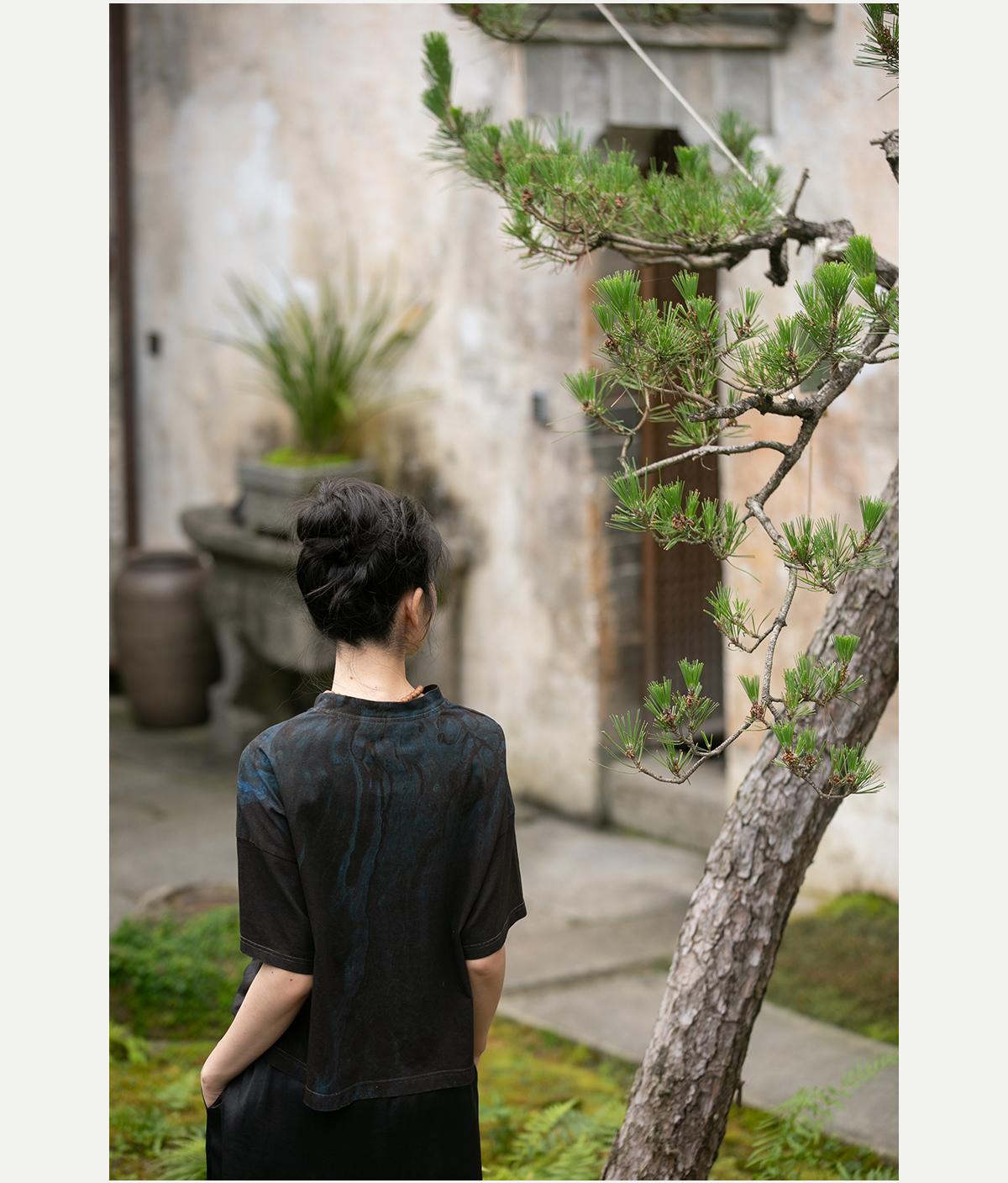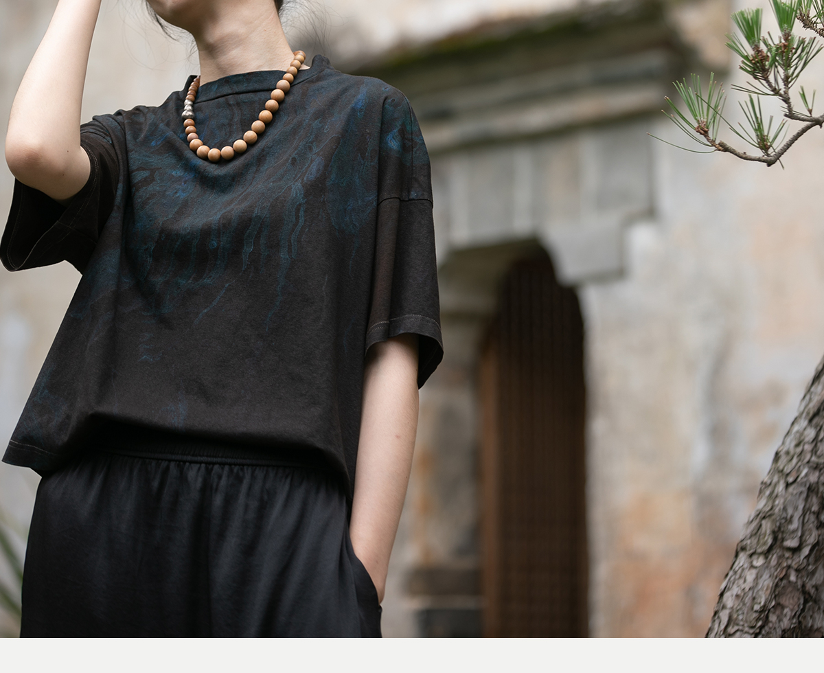 牧衣游原创 涌云工艺香云纱T恤新款黑色简约百搭短袖上衣 云澜
